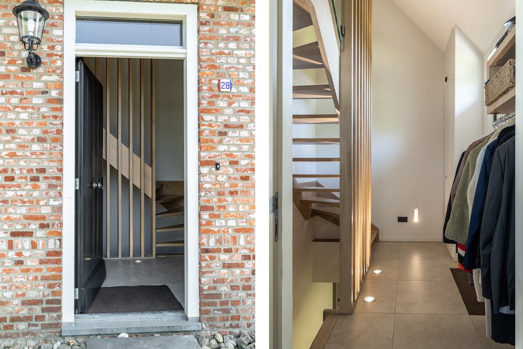 Vanuit de keuken heeft u toegang tot een achterportaal met garderobe en toiletruimte. Via het achterportaal heeft u via een glazen doorgang toegang tot de ruime garage. U hoeft dus nooit door de wind of de regen naar uw auto te lopen.