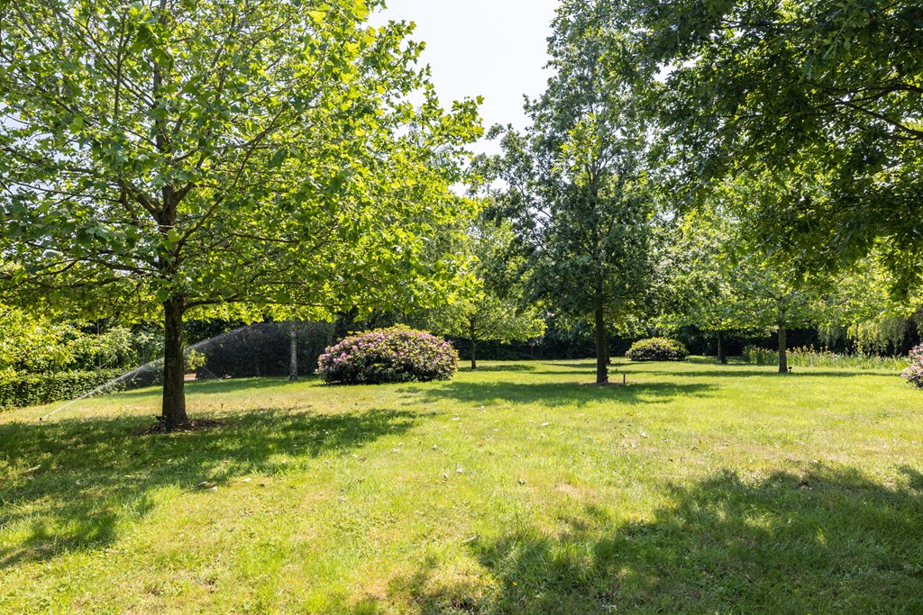 De onder architectuur aangelegde en geheel omsloten parkachtige tuin heeft ontzettend veel fijne plekjes waar u heerlijk van het buitenleven kunt genieten. Vanaf het grote terras met overkapping heeft u een mooi uitzicht over de grote vijver met fontein en loopbrug.