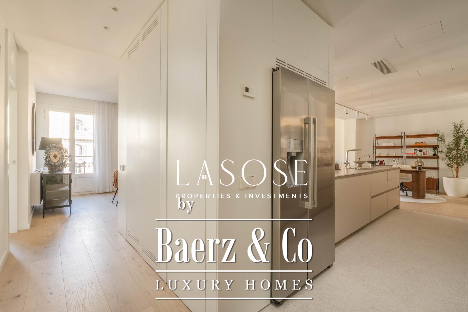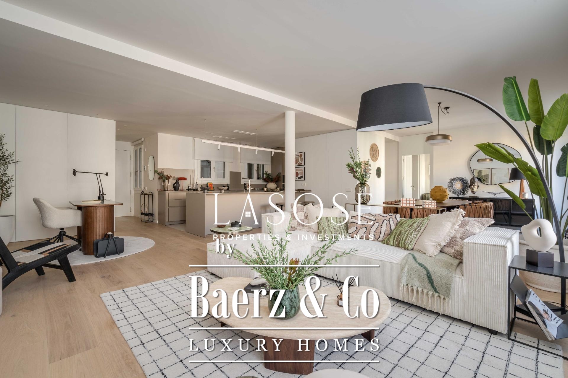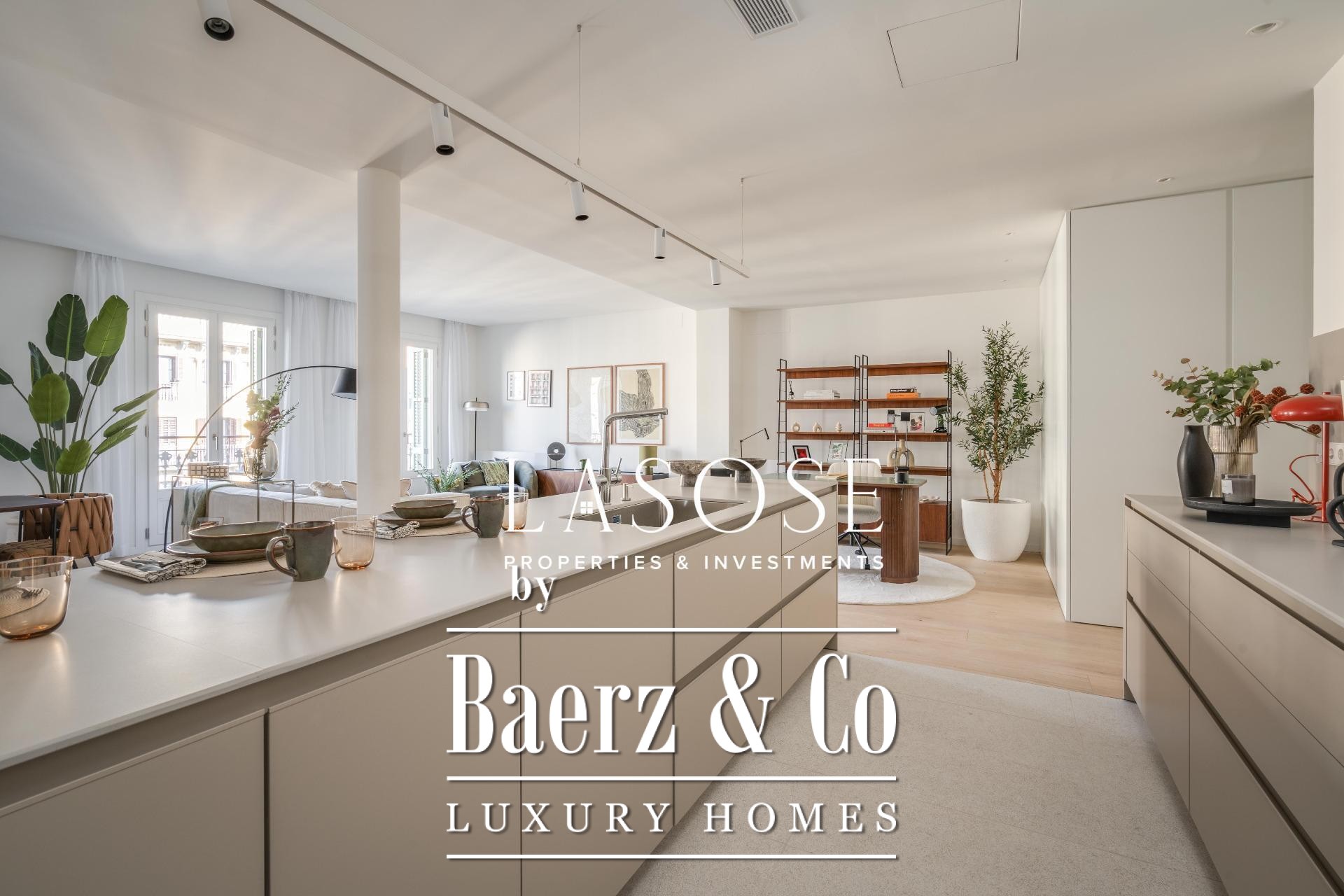 شقة برشلونة إيكسامبل تقدم فرصة سكنية متميزة في قلب حي إيكسامبل الشهير بالمدينة. تبلغ مساحة هذه الشقة 96 م² وتضم غرفتي نوم وحماماً واحداً، وهي جزء من مجموعة حصرية تضم 19 منزلاً تمزج بين التراث العريق والحياة المعاصرة. تضفي الشرفات الكلاسيكية وتراس البنتهاوس الواسع إحساساً متناغماً بالضوء وإيقاع المدينة والخصوصية.