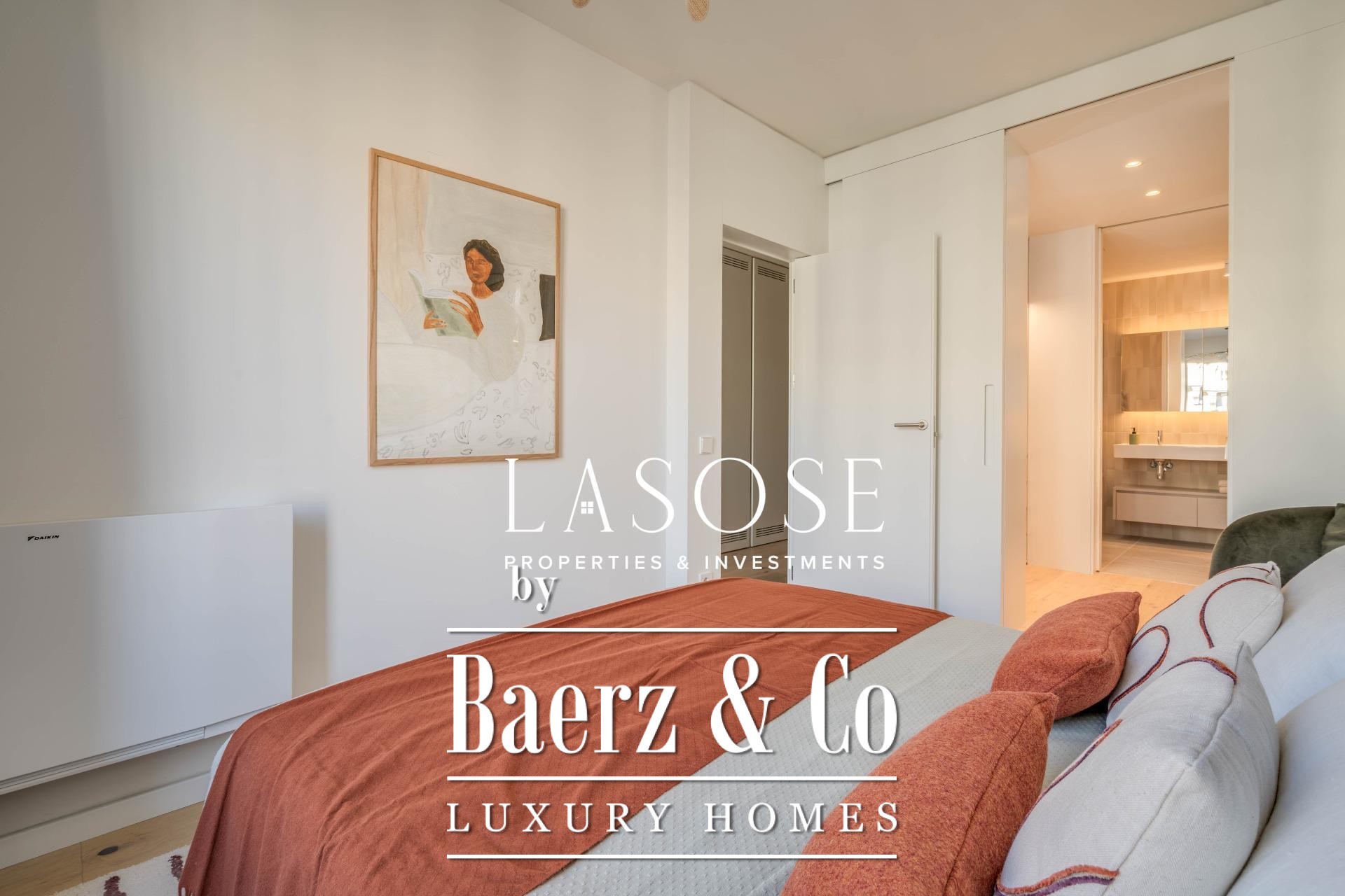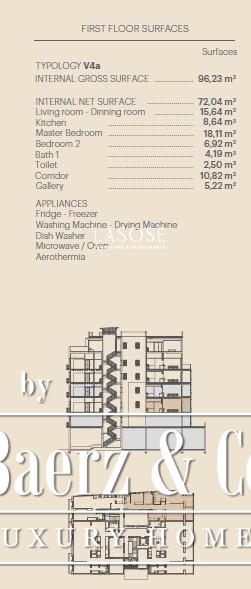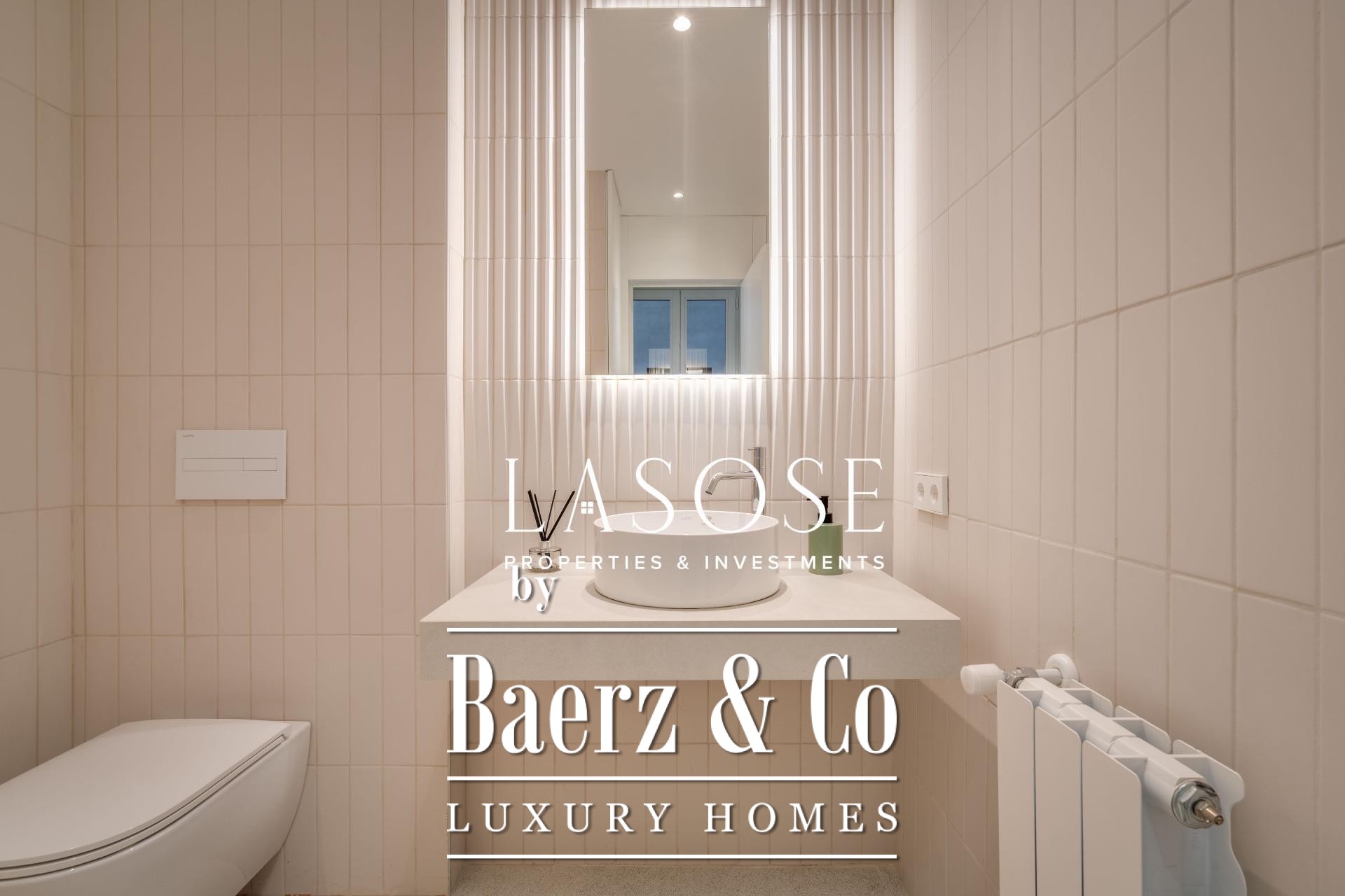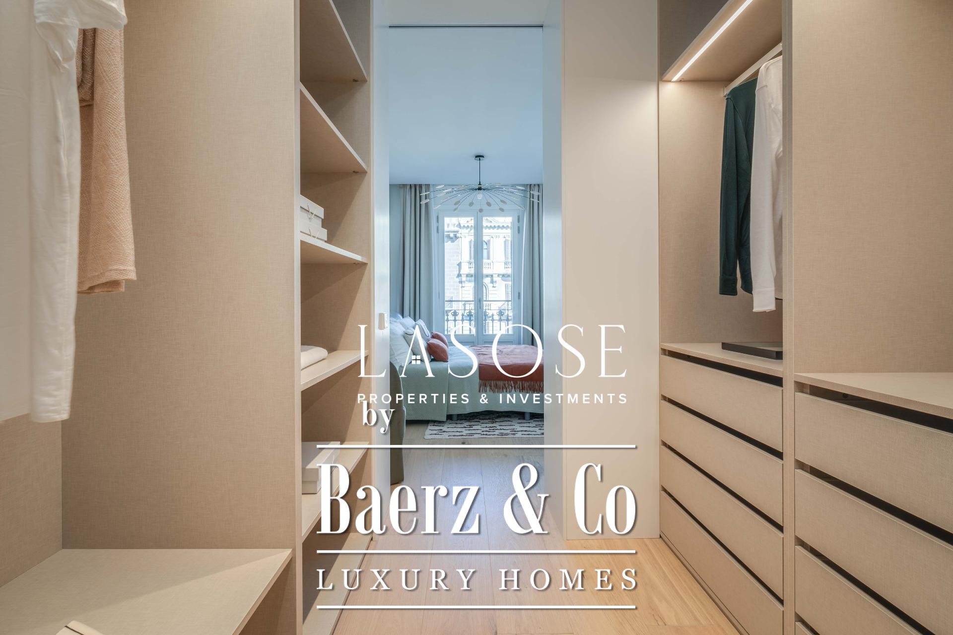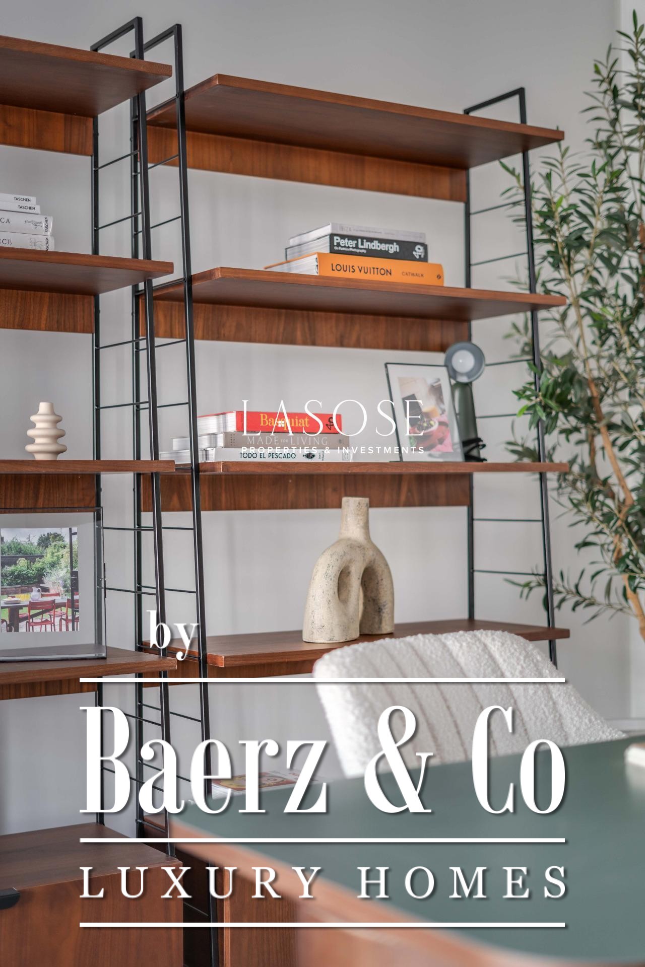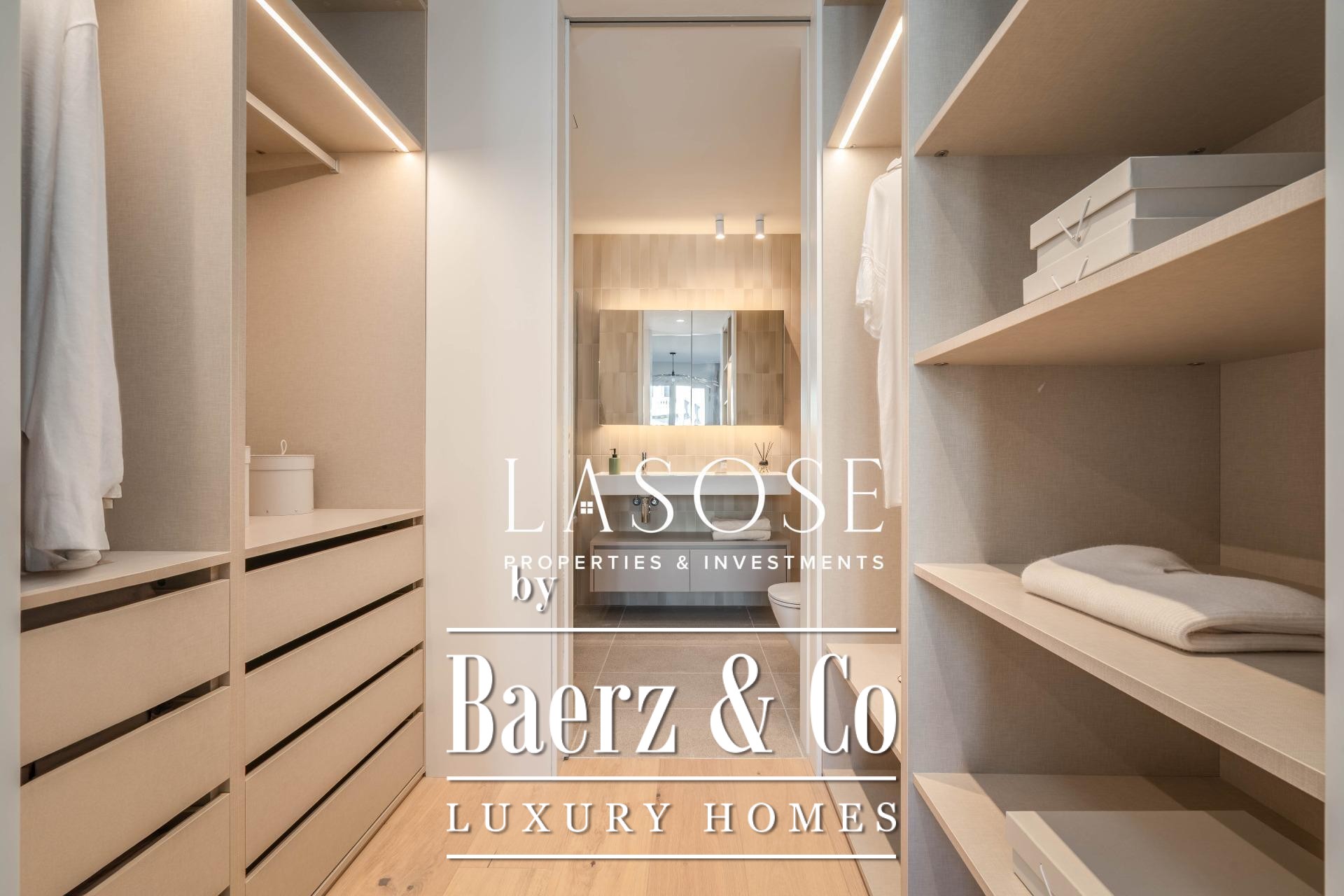 تشطيبات من تصميم Estudio Vilablanch تمنح المكان طابعاً أنيقاً مفعماً بالرقي، حيث تندمج الأجهزة الحديثة والتقنيات المتطورة مع التفاصيل التصميمية الفريدة. تتسم المساحات الداخلية بتوزيع عملي ومدروس، وتشمل خزائن مدمجة وأجهزة كهربائية وغرفة غسيل خاصة، بالإضافة إلى ميزات مثل التدفئة، ونظام الاتصال بالفيديو، ومصعد للوصول السهل.