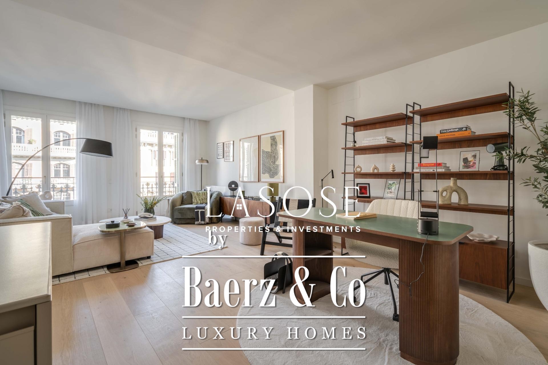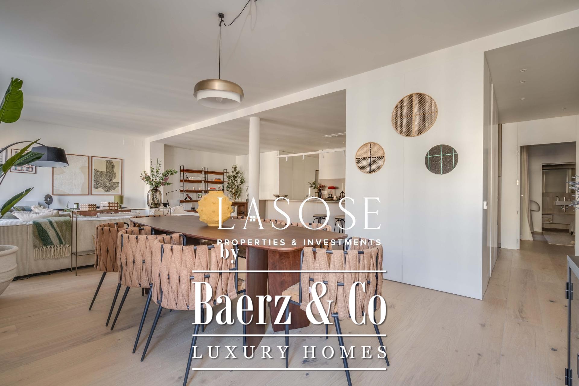 تمنحك هذه الوحدة السكنية مساحة معيشة تبلغ ١٣٧ متر مربع، تم توزيعها بعناية على غرفتي نوم وثلاثة حمامات. تسهم الشرفات والتراس الفسيح في ربط المساحات الداخلية بنبض المدينة، بينما تعكس واجهة المبنى والمساحات المشتركة أناقة برشلونة الكلاسيكية. توازن التشطيبات الداخلية التي تولاها Estudio Vilablanch بين الحداثة والأسلوب الدائم، وتشمل أجهزة منزلية عالية الجودة، وخزائن واسعة، وتدفئة، وأجواء مشرقة راقية.
