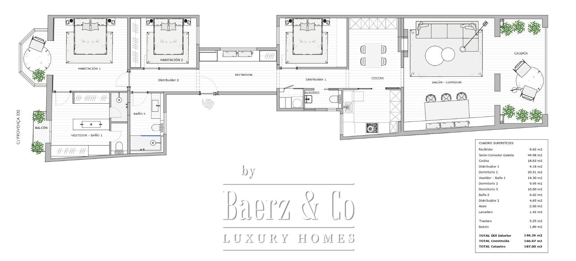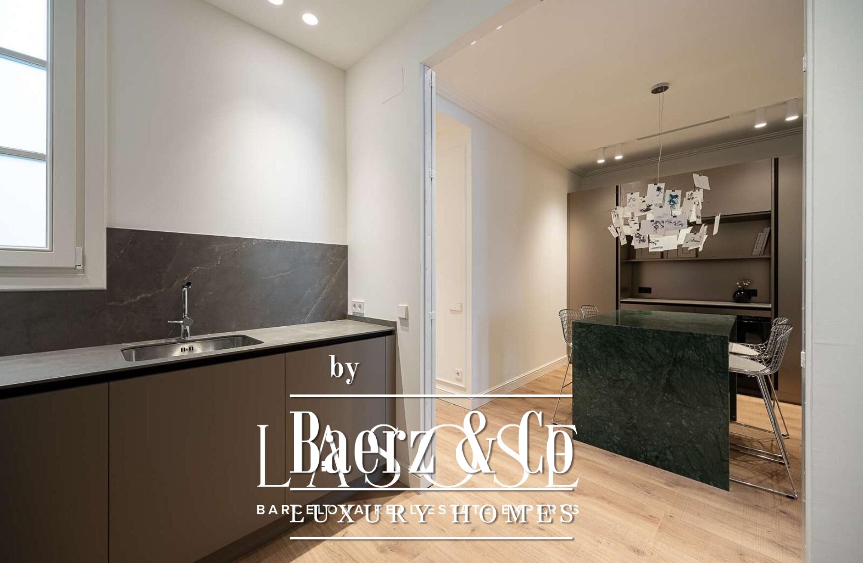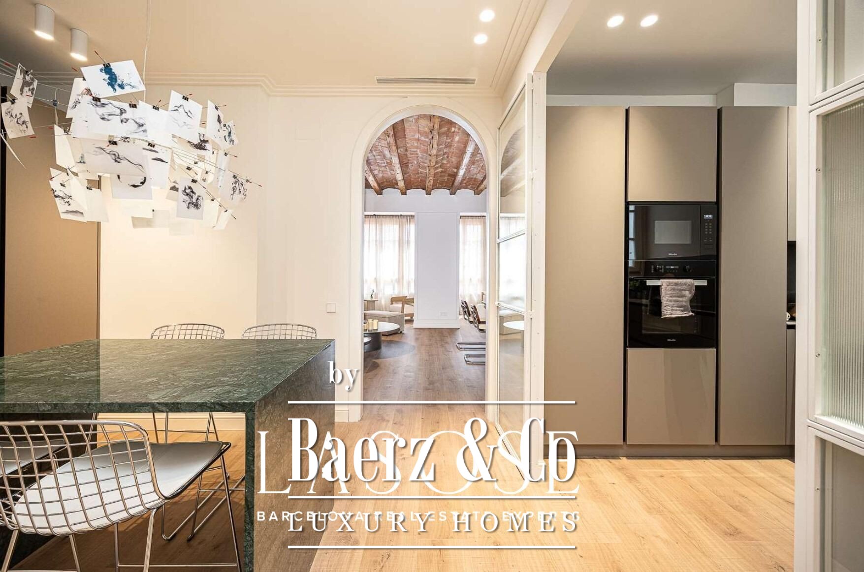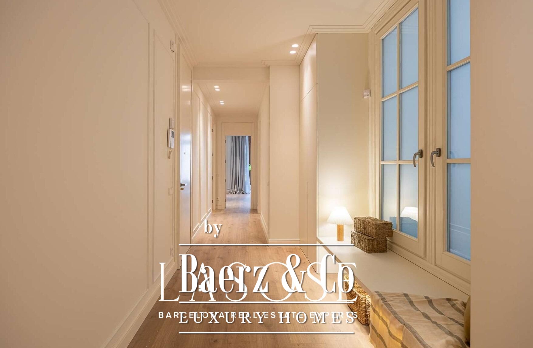 تقع الشقة في الطابق الثالث ويمكن الوصول إليها بالمصعد؛ تضيء مساحاتها الرحبة بانسياب الضوء الطبيعي. تضفي الغاليري المواجهة للجنوب الغربي والأسقف الكتالونية الأصلية المقببة أجواءً من الخصوصية والرقي. يراعي كل عنصر في التجديد الفاخر الحديث الهندسة الأصلية بينما يتم دمج أحدث وسائل الراحة. أرضيات باركيه من خشب البلوط بدرجة Parador AC 5، خزائن مخصصة من ARMONY، أجهزة MIELE، نظام ذكي للتحكم في المناخ، وجناح رئيسي مع غرفة ملابس منفصلة ترفع من مستوى العيش اليومي.