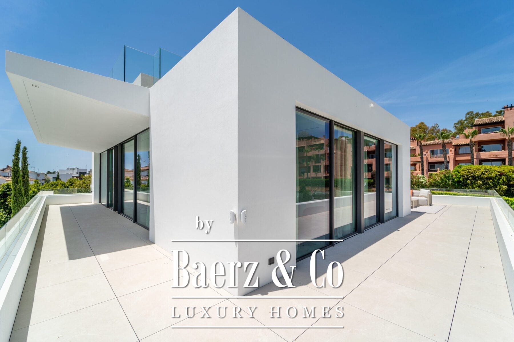 يحتوي السطح الشمسي الممتد على مساحة 100 م² على منطقة مخصصة لتناول الطعام في الهواء الطلق، مسبح، ومنطقة استرخاء هادئة، حيث تُصمم هذه المساحة للاستمتاع بأجواء غروب ماربيلا الأسطوري. الترفيه سهل مع غرفة سينما، صالة رياضية ومساحة ترفيهية متعددة الاستخدامات في القبو، بالإضافة إلى بار، منطقة استقبال، غرفة غسيل ومرآب يتسع لثماني سيارات. يضمن الأمن والراحة عبر ميزات مثل نظام إنذار، مصعد، تكييف هواء، تدفئة تحت الأرضية، ومدفأة.