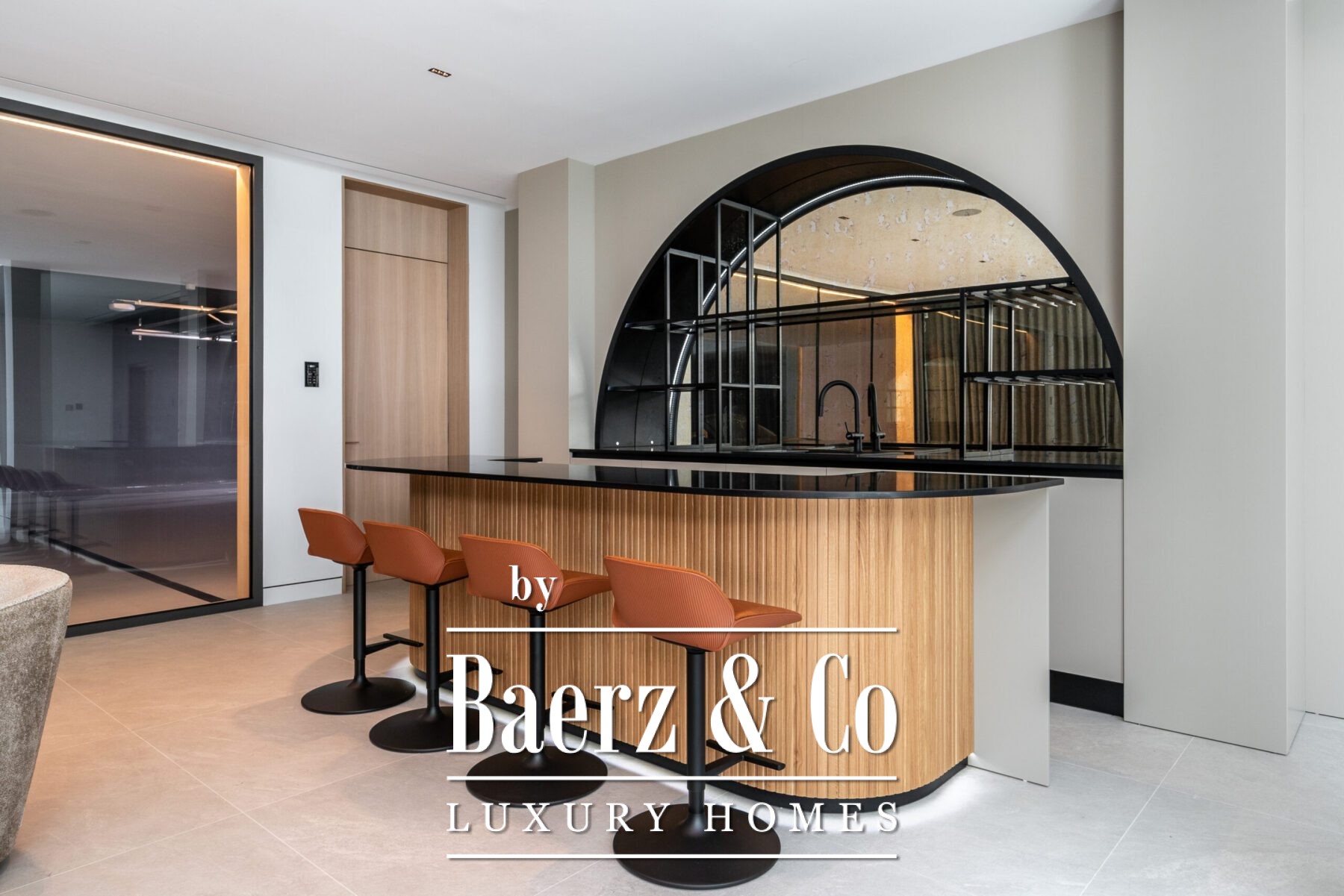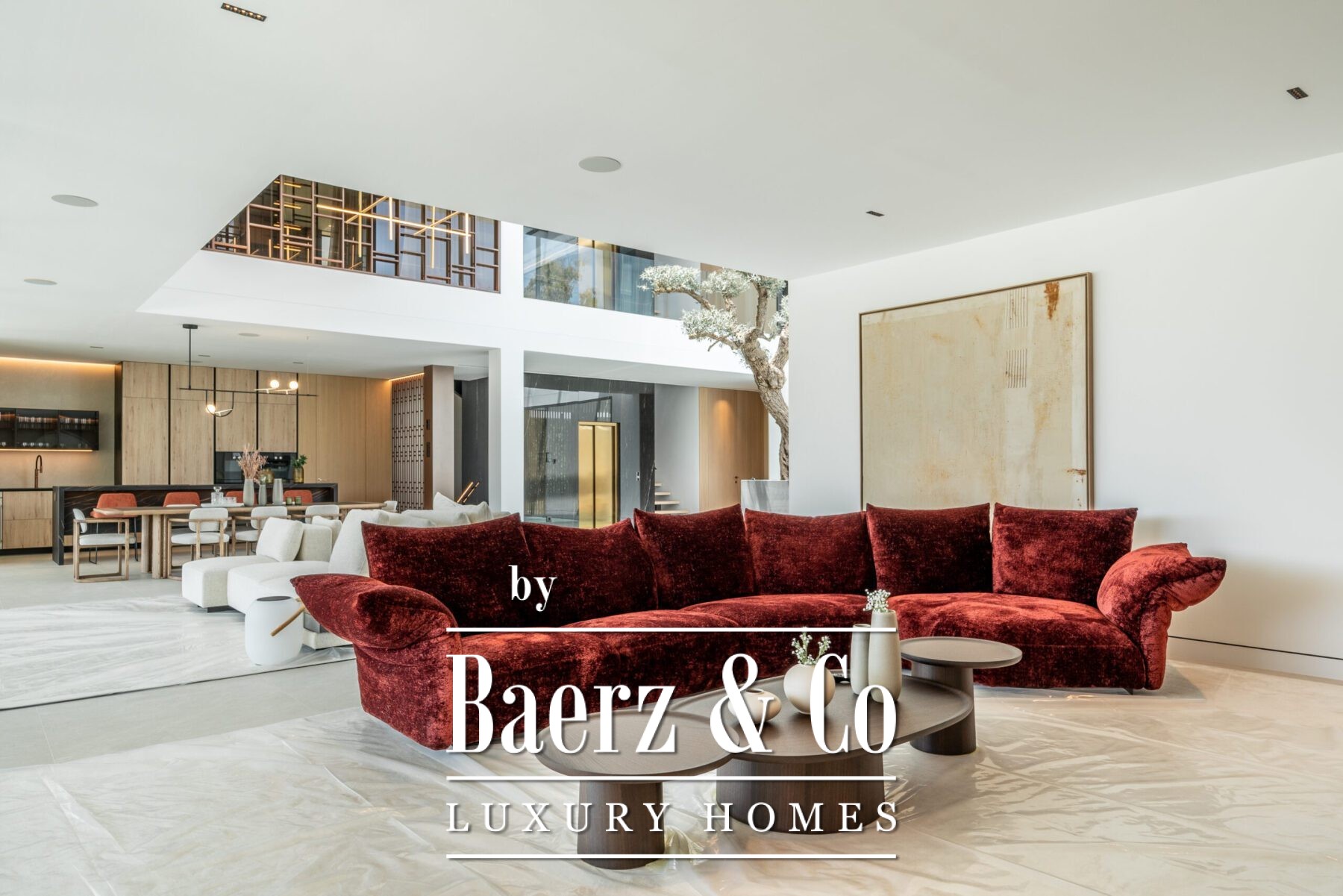 تقف فيلا ماربيلا جولدن مايل كنظرة معاصرة للحياة المتوسطية العصرية، مقدمة توازناً مدروساً بين الخصوصية، الراحة، ووضوح الهندسة المعمارية. تمثل هذه الفيلا الجديدة منطقة معيشة بمساحة 1,318 م² مصحوبة بتراسات واسعة تبلغ مساحتها الإجمالية 387.3 م²، ما يتيح انتقالاً سلساً بين المساحات الداخلية والحدائق الهادئة ذات التنسيق الطبيعي المستقرة على أرض تبلغ مساحتها 1,602 م².