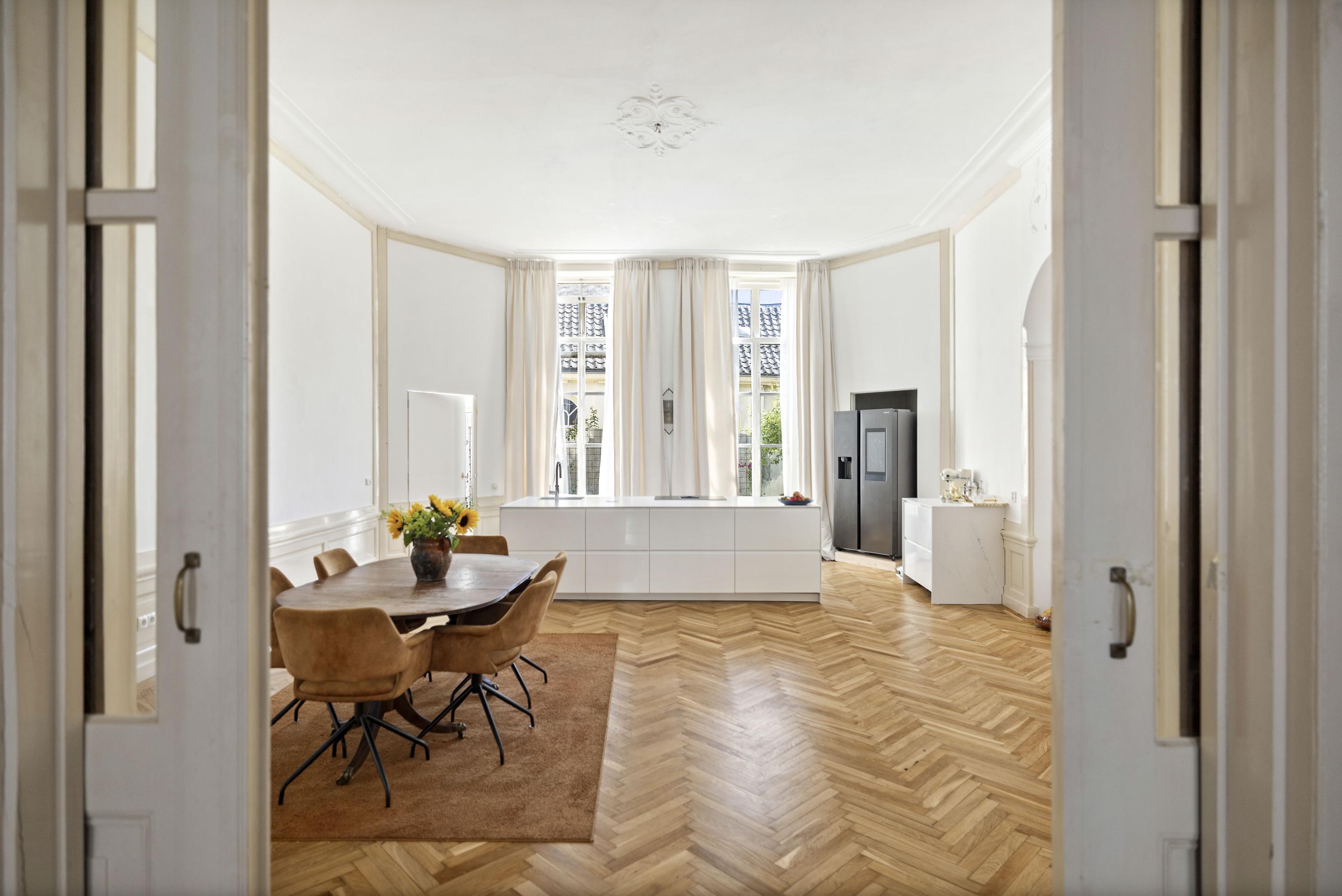 يقدم هذا المنزل المتلاصق في زوتفن توازناً رائعاً بين العراقة التاريخية والرقي المعاصر في قلب إحدى أقدم المدن الهانزية في هولندا. يقع العقار في ساحة زادماركت الشهيرة، وسط حيوية الأسواق المحلية وتعرجات شوارع المدينة. خلف الواجهة النيوكلاسيكية المطلية باللون الأبيض ذات الأعمدة المزخرفة والمصاريع الأصلية المرممة، تمتد مساحة تزيد عن 245 م² إلى مناطق معيشة تغمرها الشمس، وسقوف عالية، وتوزيع داخلي رحب.