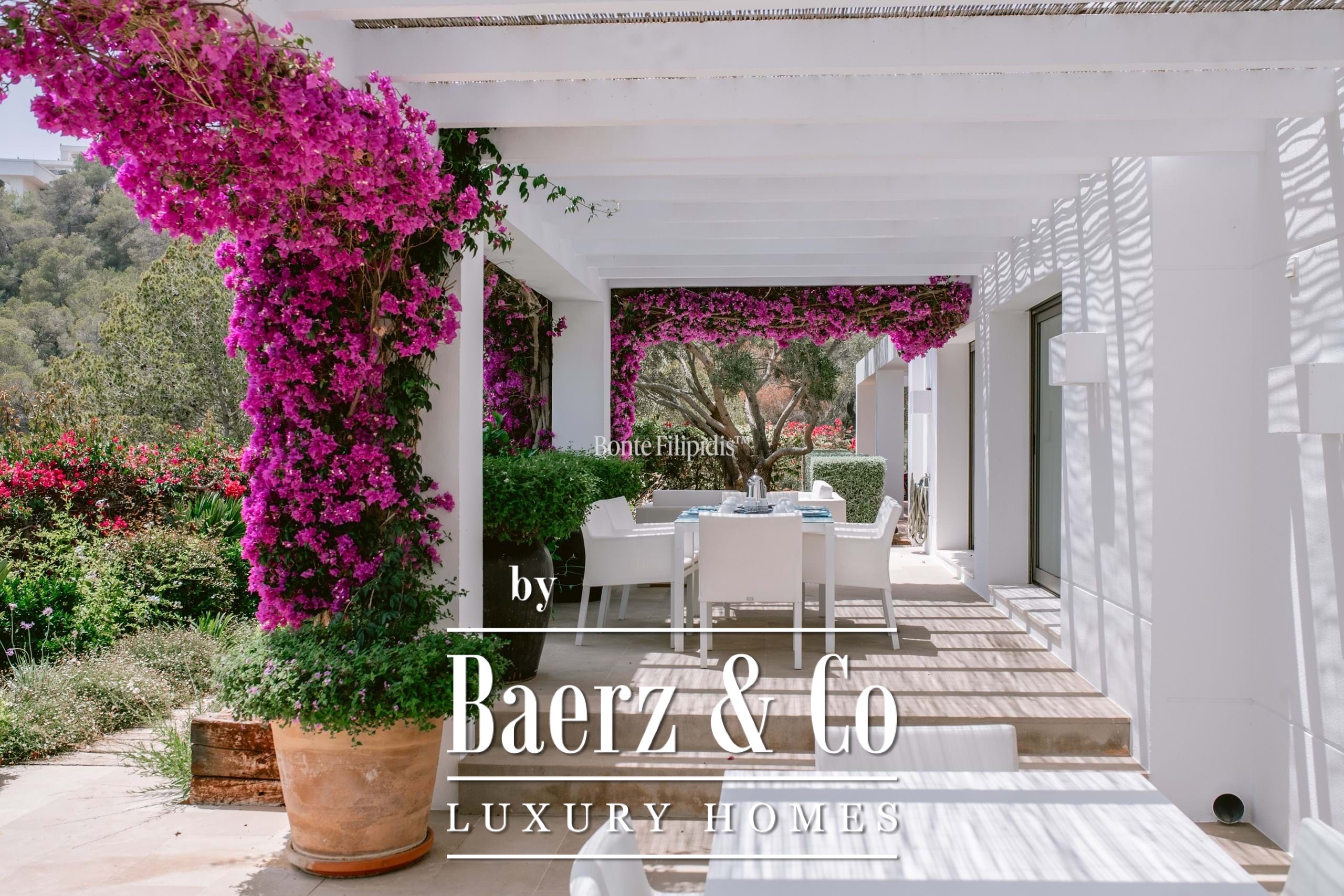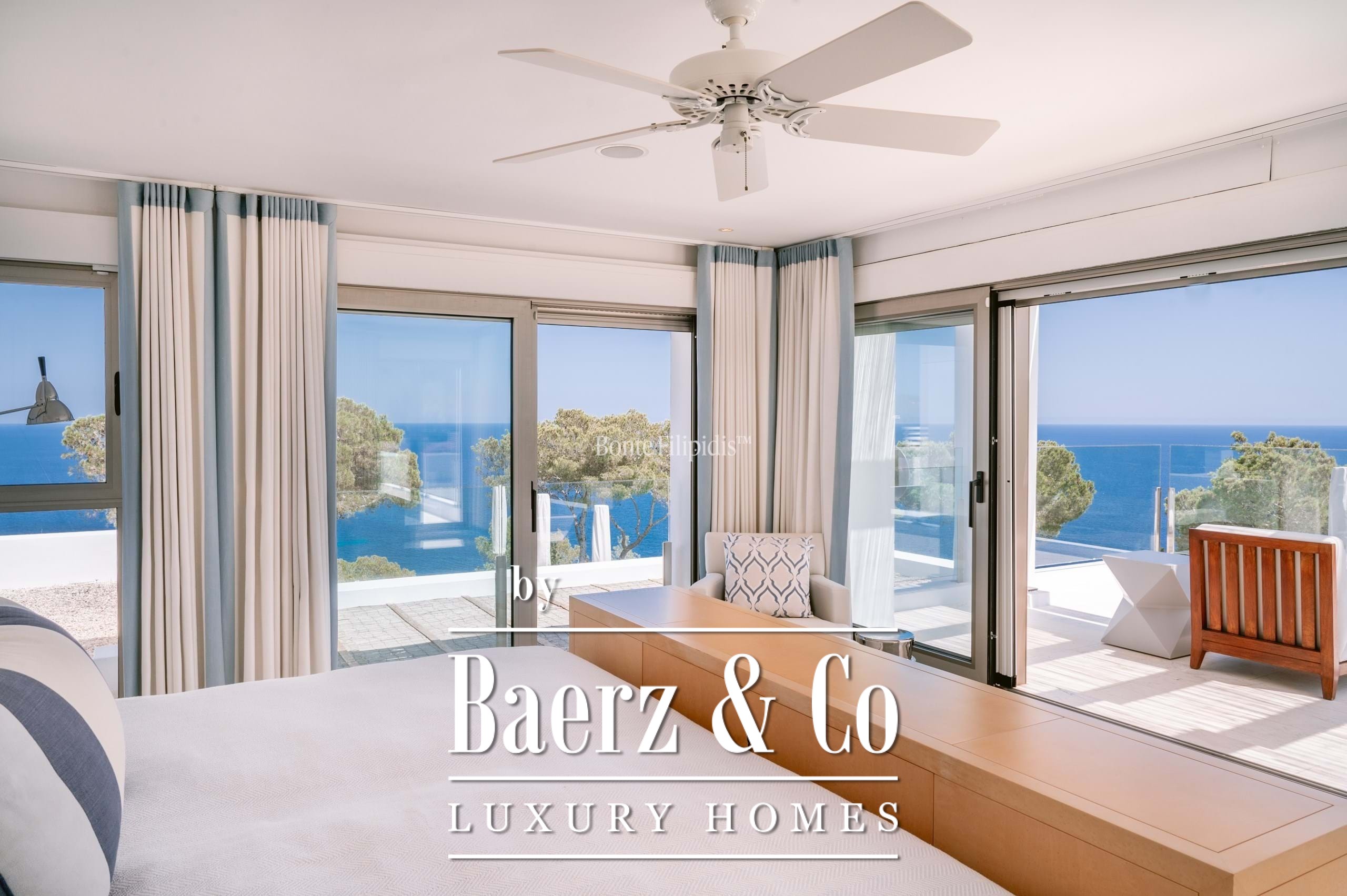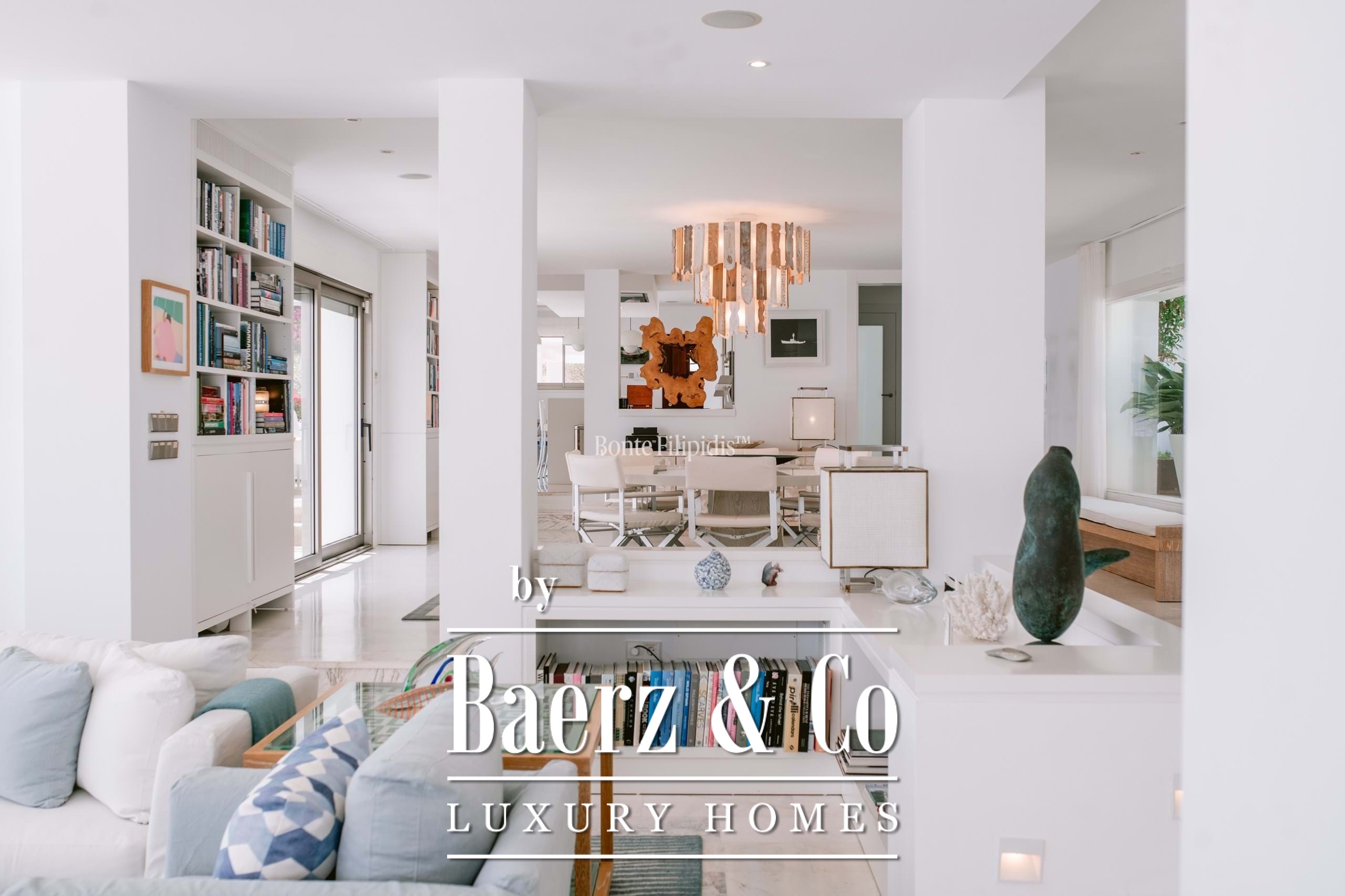 Zu den weiteren Annehmlichkeiten zählen Heimkino, Fitnessraum, Fußbodenheizung und ein umfassendes Sicherheitssystem. Mit schneller Anbindung an Ibiza-Stadt und den Yachthafen bietet diese mediterrane Villa in Área de Eivissa einen ruhigen Rückzugsort mit zeitloser Architektur, modernem Komfort und ikonischen Ausblicken auf die Insel – perfekt verbunden und doch abgeschieden.