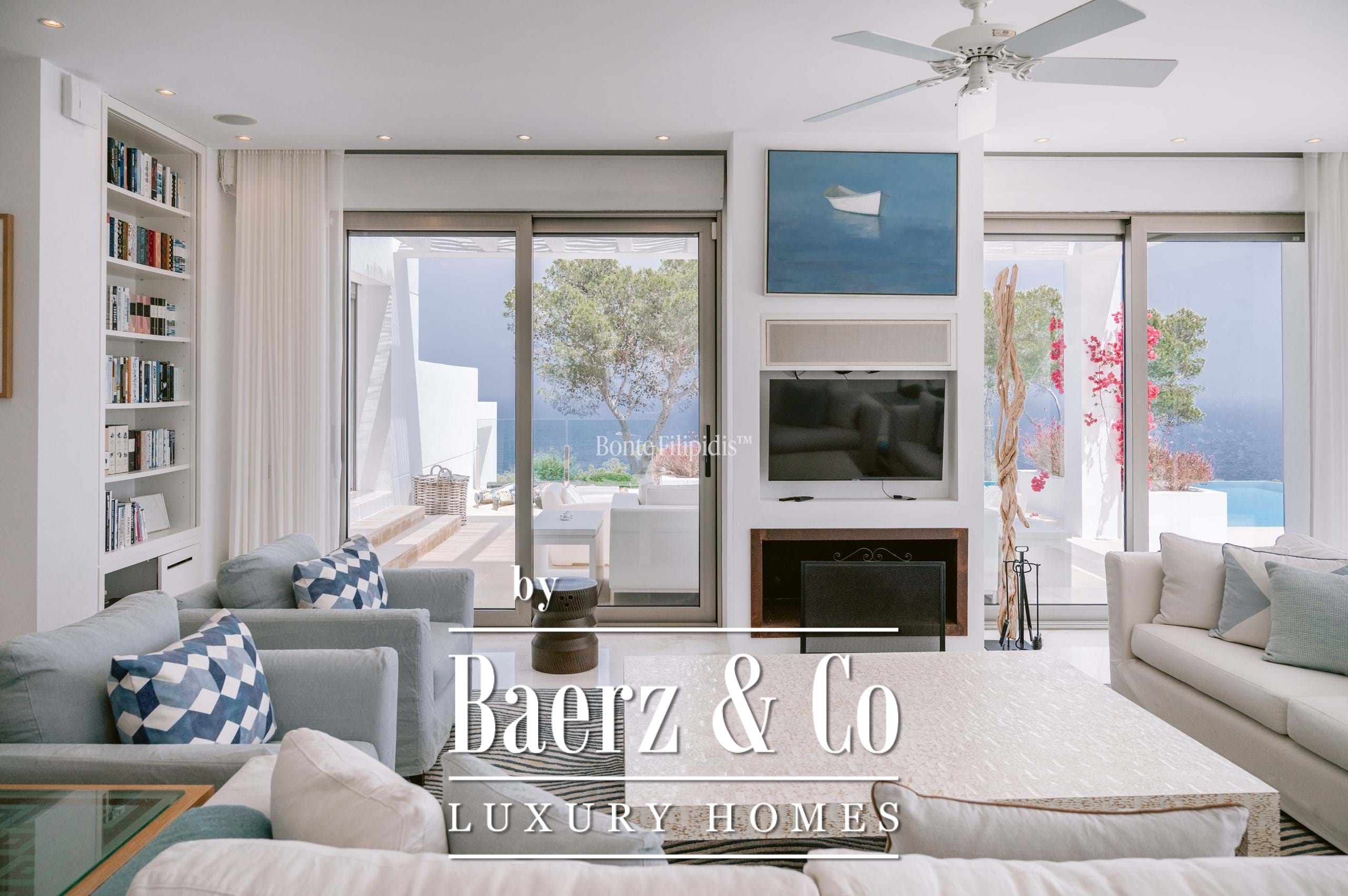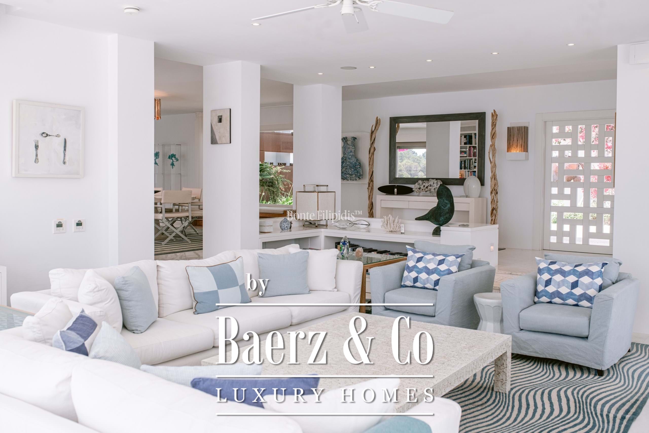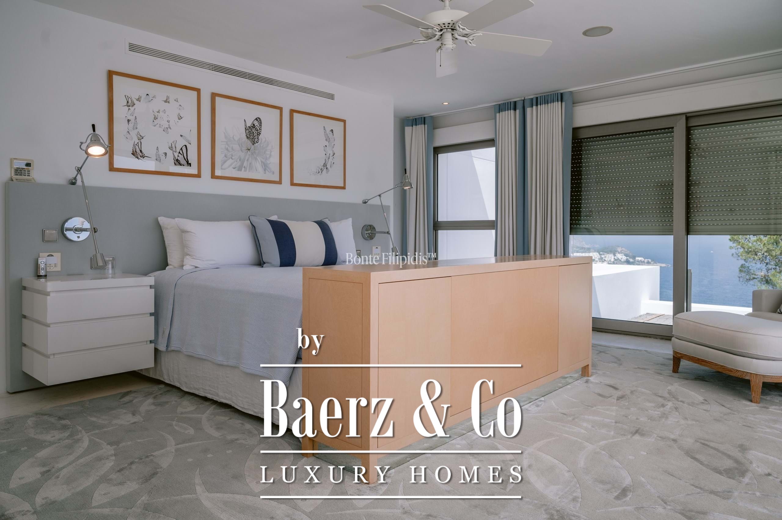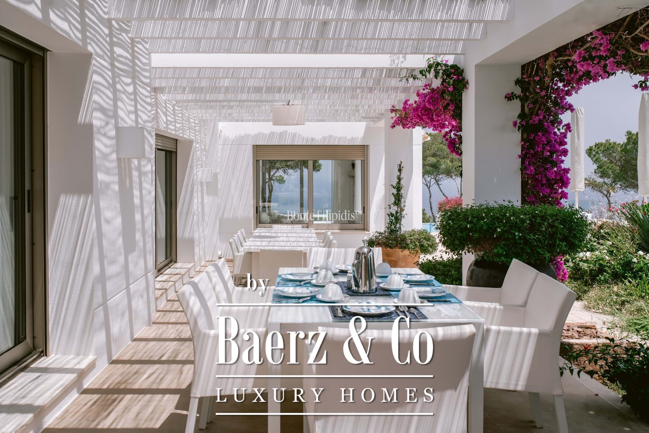 Zu den weiteren Annehmlichkeiten zählen Heimkino, Fitnessraum, Fußbodenheizung und ein umfassendes Sicherheitssystem. Mit schneller Anbindung an Ibiza-Stadt und den Yachthafen bietet diese mediterrane Villa in Área de Eivissa einen ruhigen Rückzugsort mit zeitloser Architektur, modernem Komfort und ikonischen Ausblicken auf die Insel – perfekt verbunden und doch abgeschieden.