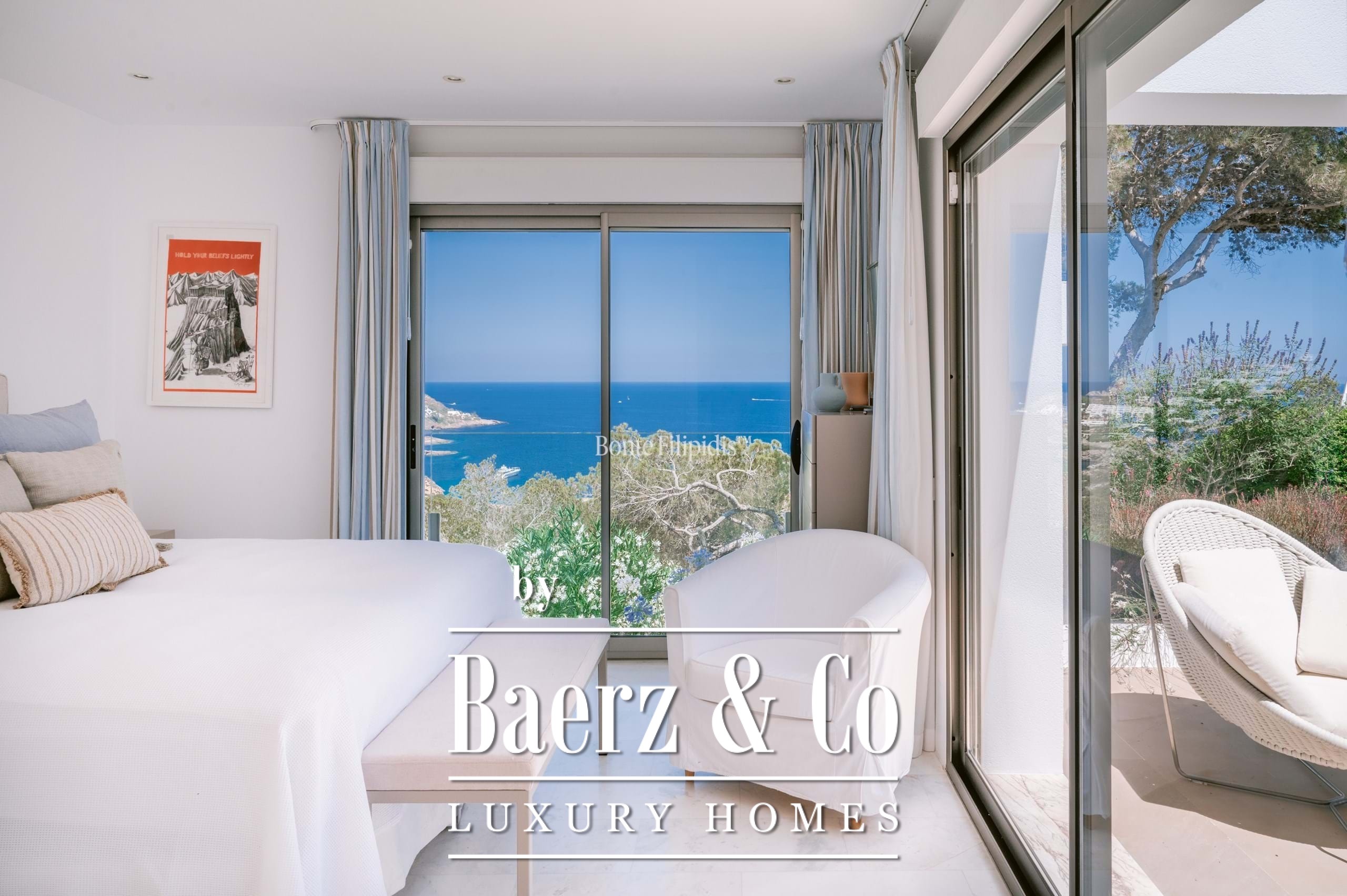 Im Haupthaus befindet sich eine anspruchsvolle Mastersuite im Obergeschoss mit begehbarem Kleiderschrank, von einem Spa inspiriertem Bad und einer abgeschiedenen Terrasse mit Meerblick. Fünf Gästeschlafzimmer öffnen sich zur Poolterrasse, bieten direkten Zugang ins Freie und garantieren Privatsphäre. Das separate Gästeapartment eignet sich ideal für längere Aufenthalte oder flexible Gäste-Unterhaltung. Das Outdoor-Leben ist geprägt von einem Salzwasserpool, einer Sommerküche sowie großzügigen Terrassen, die zu gesellschaftlichen und privaten Momenten einladen.