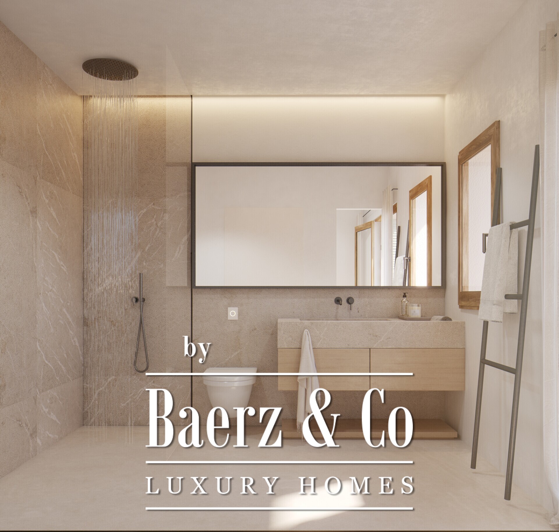 Im ersten Obergeschoss erwarten Sie zwei großzügige Schlafzimmer mit en Suite Bädern und Ankleidezimmern, die Rückzugsorte für Ruhe und Privatsphäre schaffen. Das gesamte Dachgeschoss ist als Masterbereich gestaltet und beherbergt ein luxuriöses Bad en Suite, einen großzügigen Ankleidebereich sowie einen direkten Zugang zur privaten Dachterrasse mit Panoramablick auf das Dorf – ideal für stille Morgenstunden oder stimmungsvolle Sonnenuntergänge.