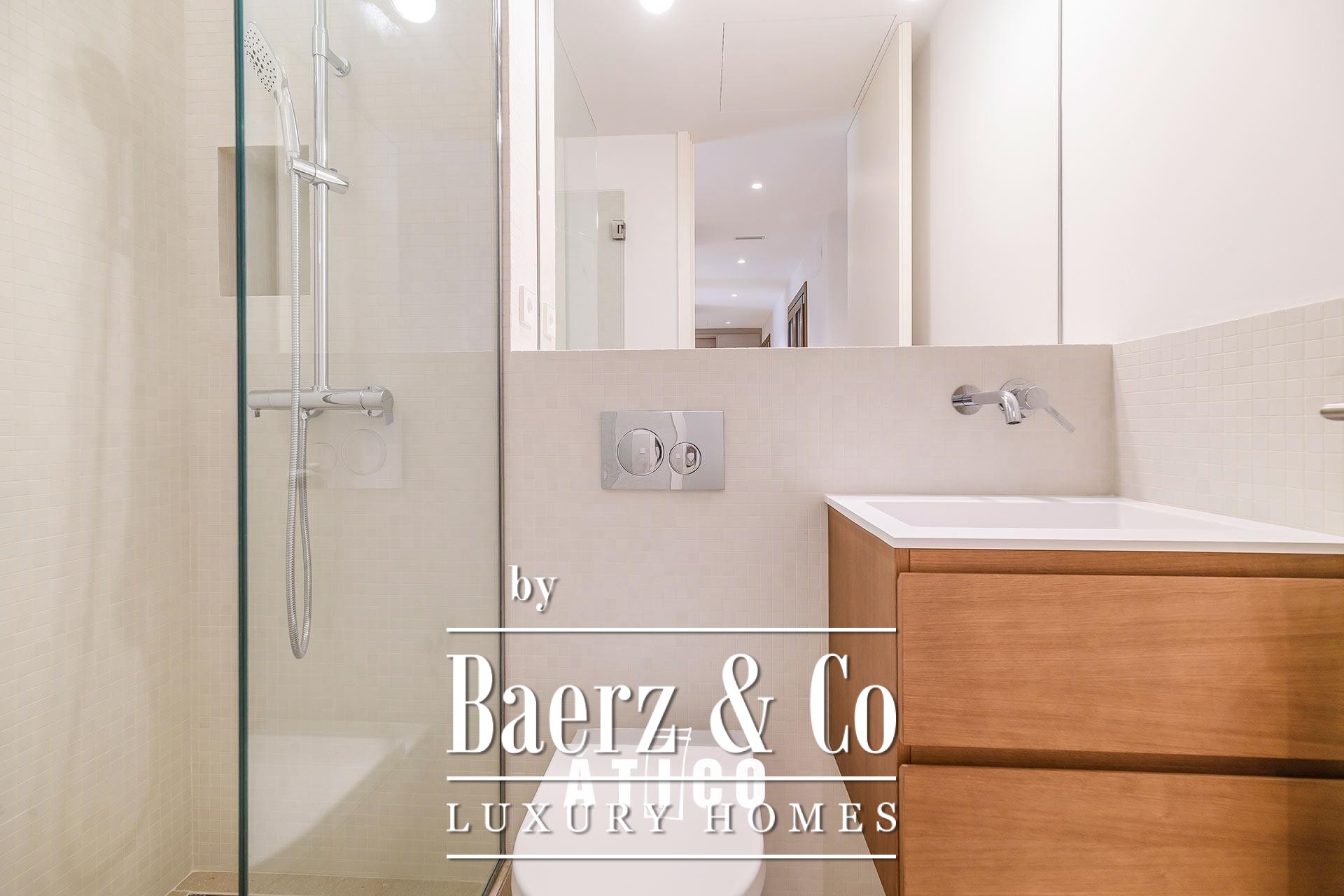 Das Penthouse Barcelona im Golden Square setzt Maßstäbe für ein anspruchsvolles urbanes Wohnerlebnis. Diese frisch renovierte Residenz erstreckt sich über 103,70 m² und besticht durch eine harmonische Aufteilung sowie ein großzügiges Raumgefühl, das beim Eintreten augenblicklich Ruhe vermittelt. Das Penthouse verfügt über zwei Schlafzimmer und zwei sorgfältig gestaltete Bäder, wobei jedes Detail – von der Auswahl des Bodens bis zur maßgefertigten Holzverarbeitung – höchste Aufmerksamkeit widerspiegelt. Die moderne Küche verbindet Funktionalität mit gestalterischem Anspruch und bietet viel Stauraum bei klaren architektonischen Linien.