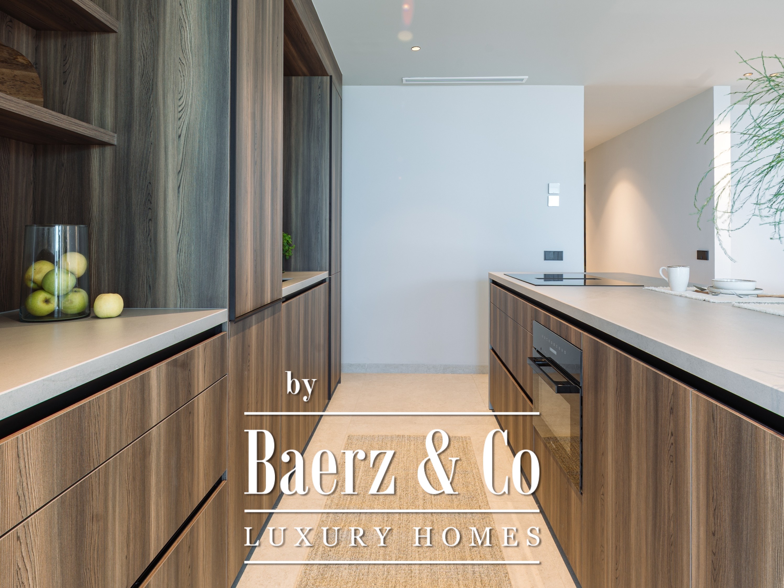Die ausgestattete Küche überzeugt mit hochwertigen Markengeräten, energieeffizienten Klimasystemen und nachhaltigen Ladestationen für Fahrzeuge und Fahrräder. Eine private Garage für zwei Autos sowie ein großzügiger Abstellraum sorgen für täglichen Komfort.