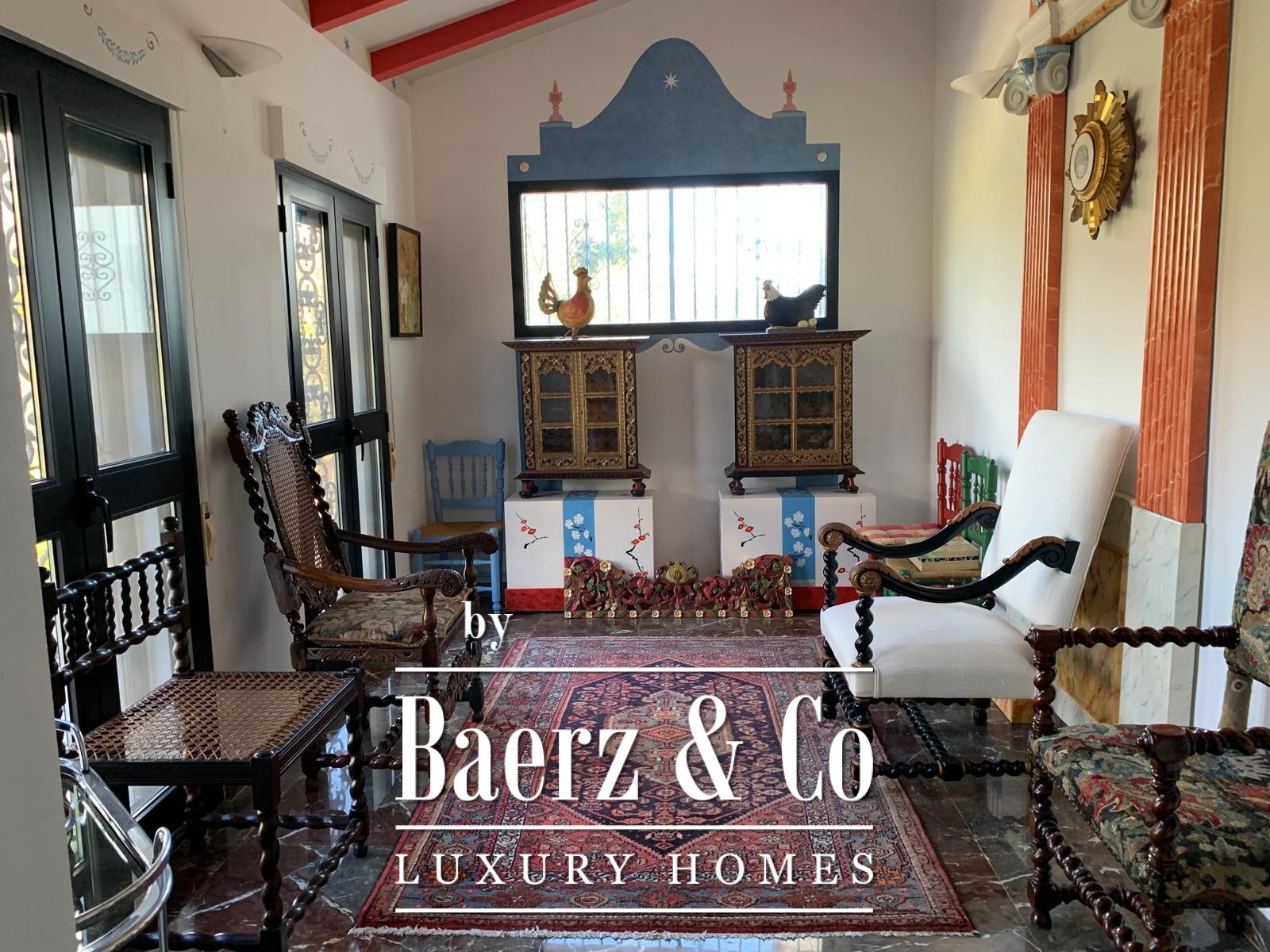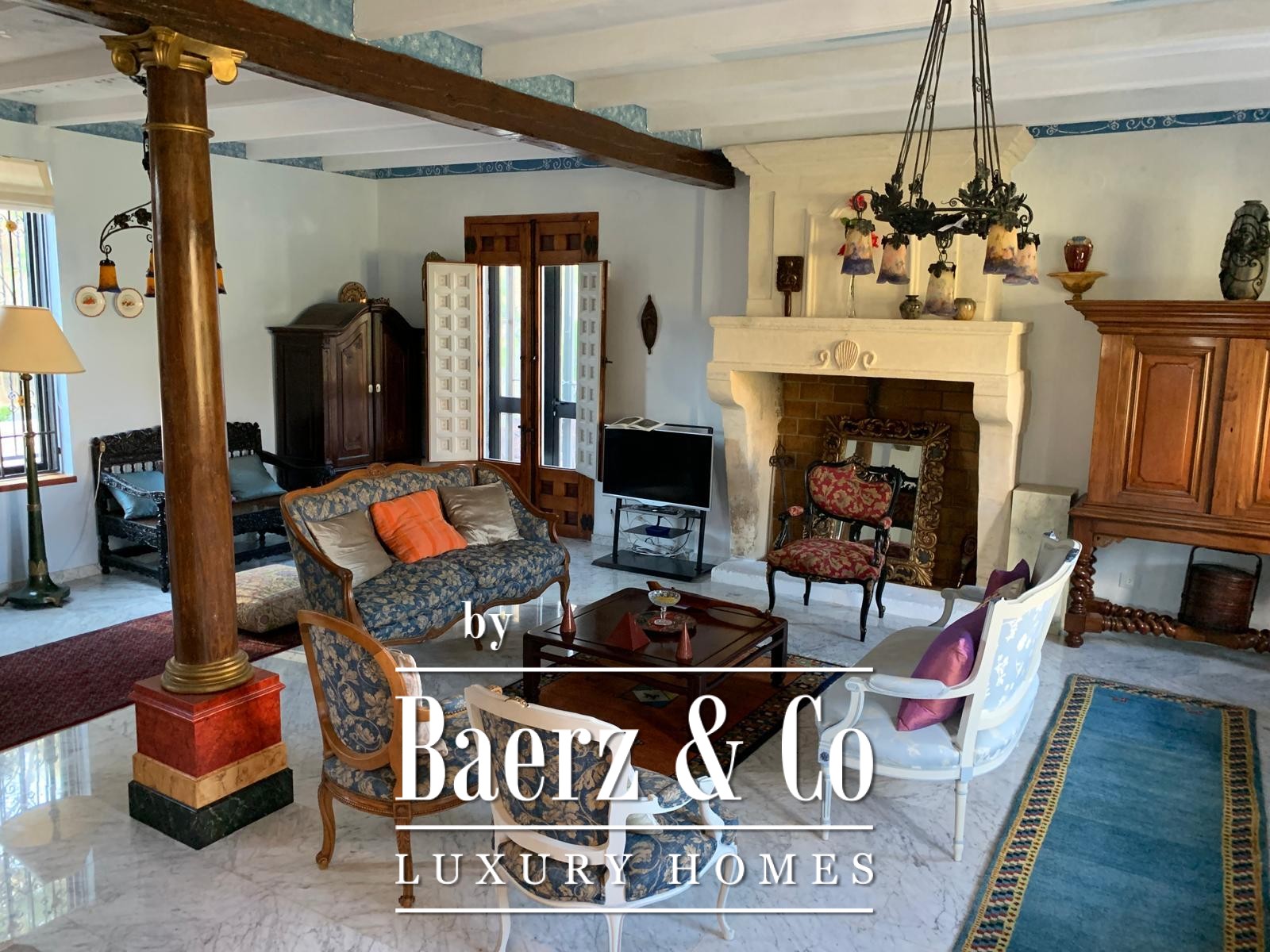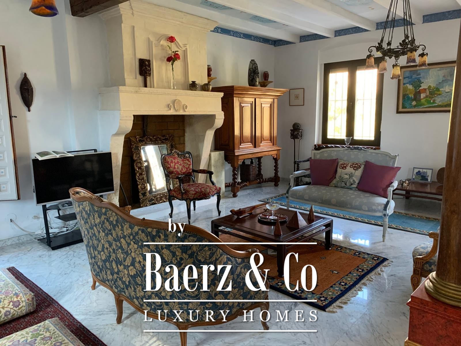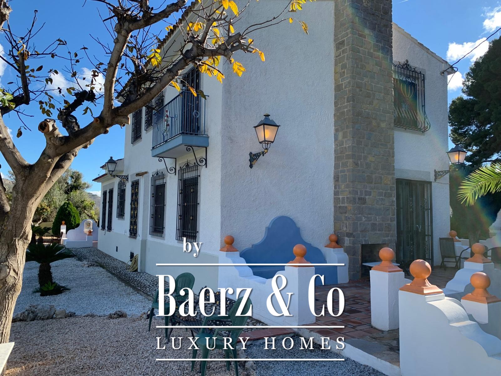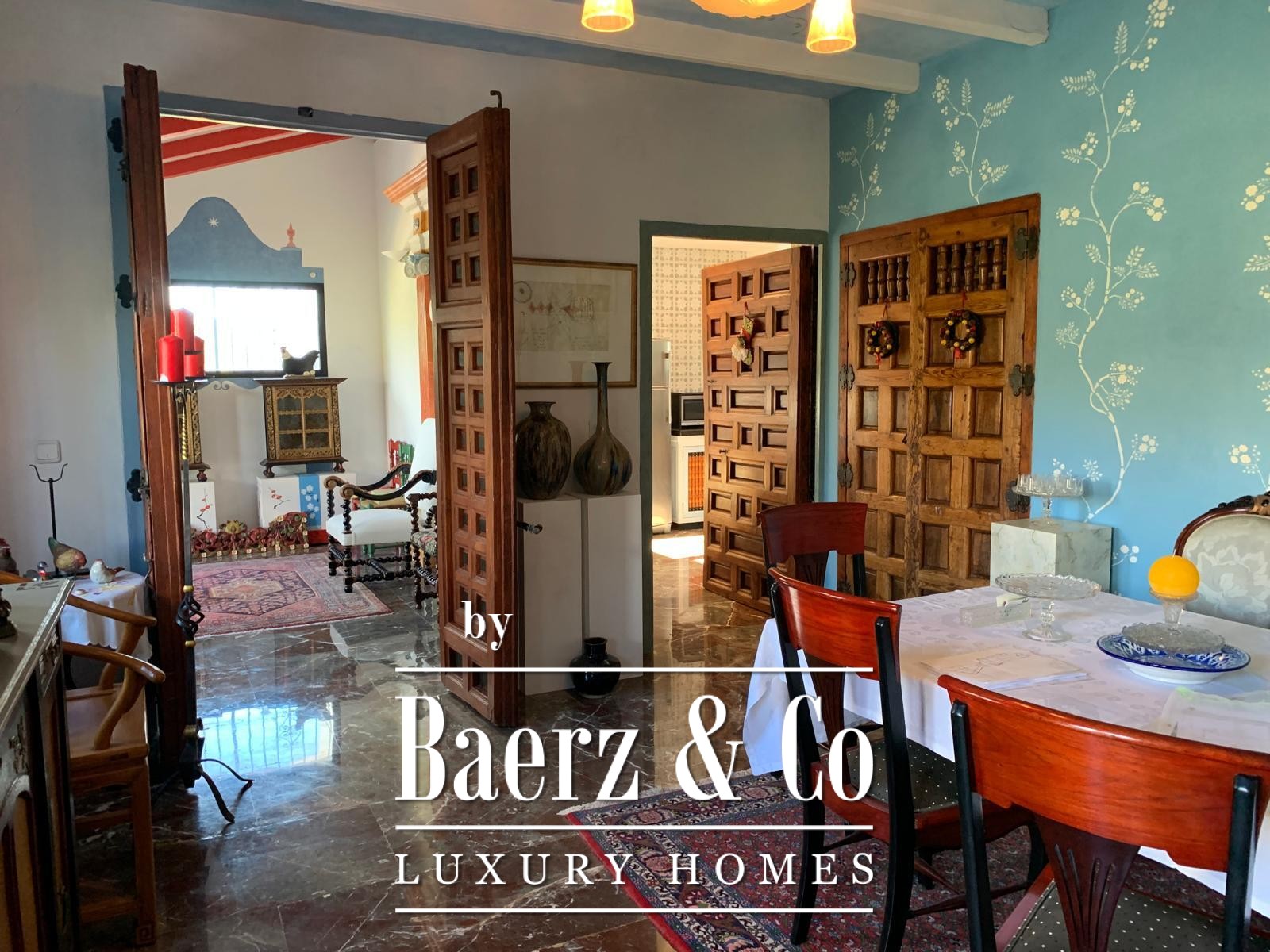 Diese rustikale Villa in Guadalest bietet einen ruhigen Rückzugsort, eingerahmt von der eindrucksvollen Silhouette der Burg von Guadalest. Diskret auf einem großzügigen Grundstück von 5.750 m² gelegen, verbindet die Immobilie klassische spanische Architektur mit einer immersiven Naturkulisse. Schon beim Betreten spürt man die Offenheit, die durch hohe Decken und reichlich Tageslicht hervorgehoben wird. Das Haupthaus erstreckt sich über zwei Ebenen mit rund 230 m² Wohnfläche, sechs Schlafzimmern und fünf Bädern, die Privatsphäre und Komfort gewährleisten.