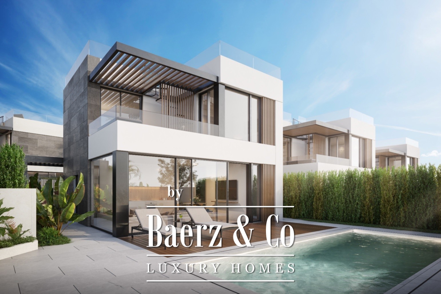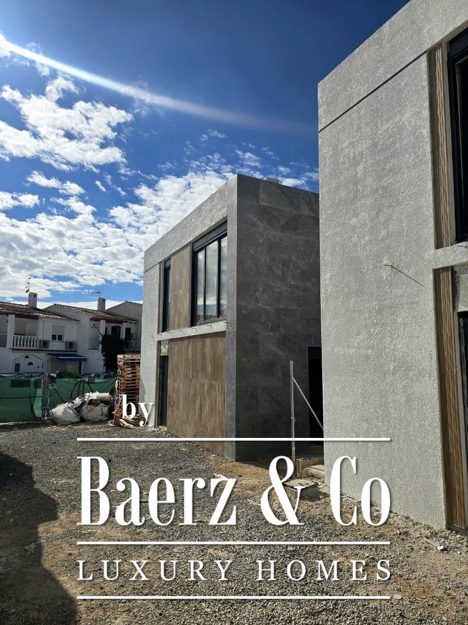 Nach dem Eintreten empfängt Sie ein ruhiger Garten sowie eine offene Terrasse, die den mediterranen Lebensstil widerspiegeln; eine Außenküche und ein Loungebereich laden zu langen Zusammenkünften unter der Sonne ein. Im Inneren entsteht durch das offene Wohn- und Esszimmer mit integrierter Küche ein fließender Raum, ideal für geselliges Beisammensein ebenso wie für die täglichen Familienrituale. Im Erdgeschoss befinden sich zudem ein Gästezimmer, ein Badezimmer und ein begehbarer Kleiderschrank, was das Wohnkonzept vielseitig und komfortabel macht.
