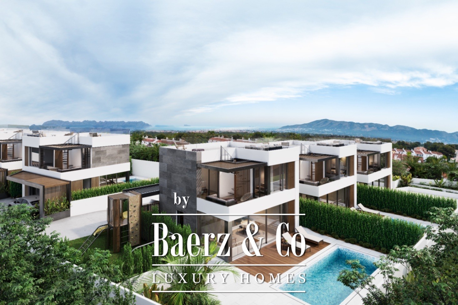 Im Obergeschoss öffnen sich zwei weitere Schlafzimmer zu einer Terrasse und einer Dachfläche mit ungehindertem Blick auf das Meer, Benidorm und Altea. Der private Pool, die Sicherheitstür, die Garage und die Doppelverglasung runden das Anwesen ab und verbinden praktische Aspekte mit diskretem Luxus. Die Fertigstellung der Villa La Nucía ist für November 2025 geplant und bietet damit eine seltene Gelegenheit für anspruchsvolle Käufer, die nach einer neuen Luxusvilla in La Nucía mit mediterranem Flair und Nähe zu allen wichtigen Annehmlichkeiten suchen.