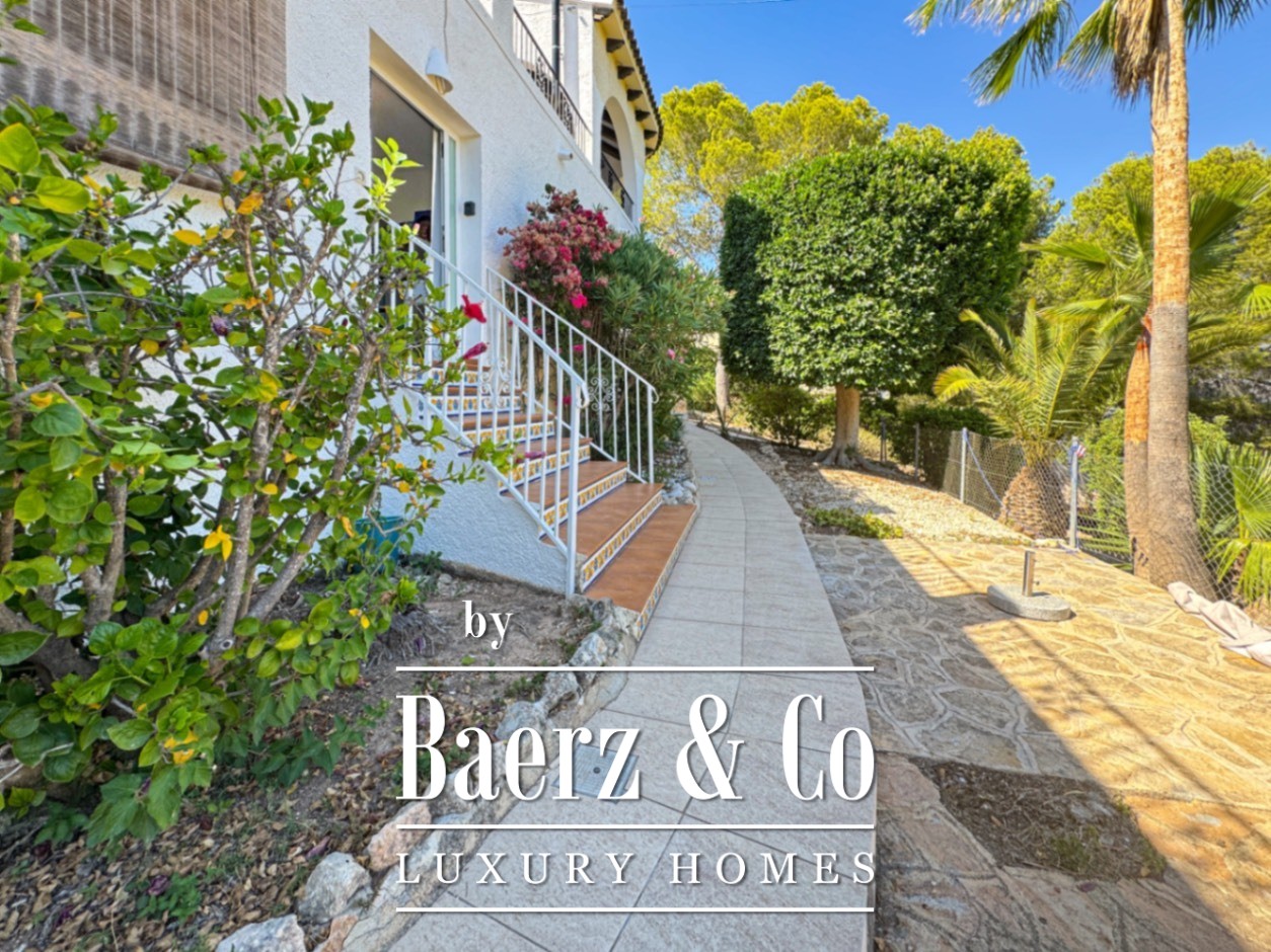 Die Villa La Nucía mit ihrem Panoramablick auf das Meer und die Berge lädt dazu ein, das mediterrane Leben mit Bedacht zu genießen. Auf 225 m² Wohnfläche, eingebettet in einen liebevoll angelegten Garten von 1.265 m², verbindet diese Villa Privatsphäre und Großzügigkeit – eine subtile Form von Luxus für jene, die Wert auf feine Details legen. Das Hauptgebäude beherbergt ein lichtdurchflutetes Wohnzimmer und eine voll ausgestattete Küche mit ungestörtem Ausblick. Hinzu kommen ein Schlafzimmer mit eigenem Bad sowie ein Gäste-WC. Für Komfort und Funktionalität konzipiert, öffnet sich der Wohnbereich nahtlos zu einer großzügigen Terrasse mit offenen und überdachten Bereichen – perfekt, um das Morgenlicht zu genießen und ruhige Abende zu verbringen.