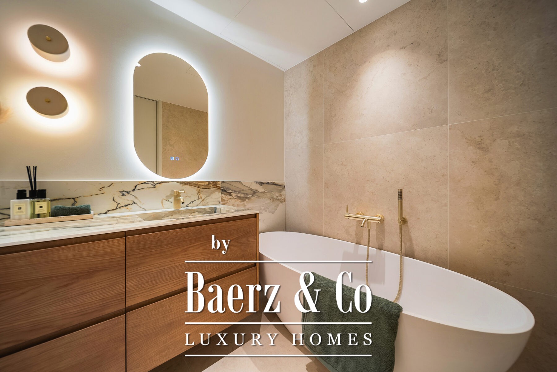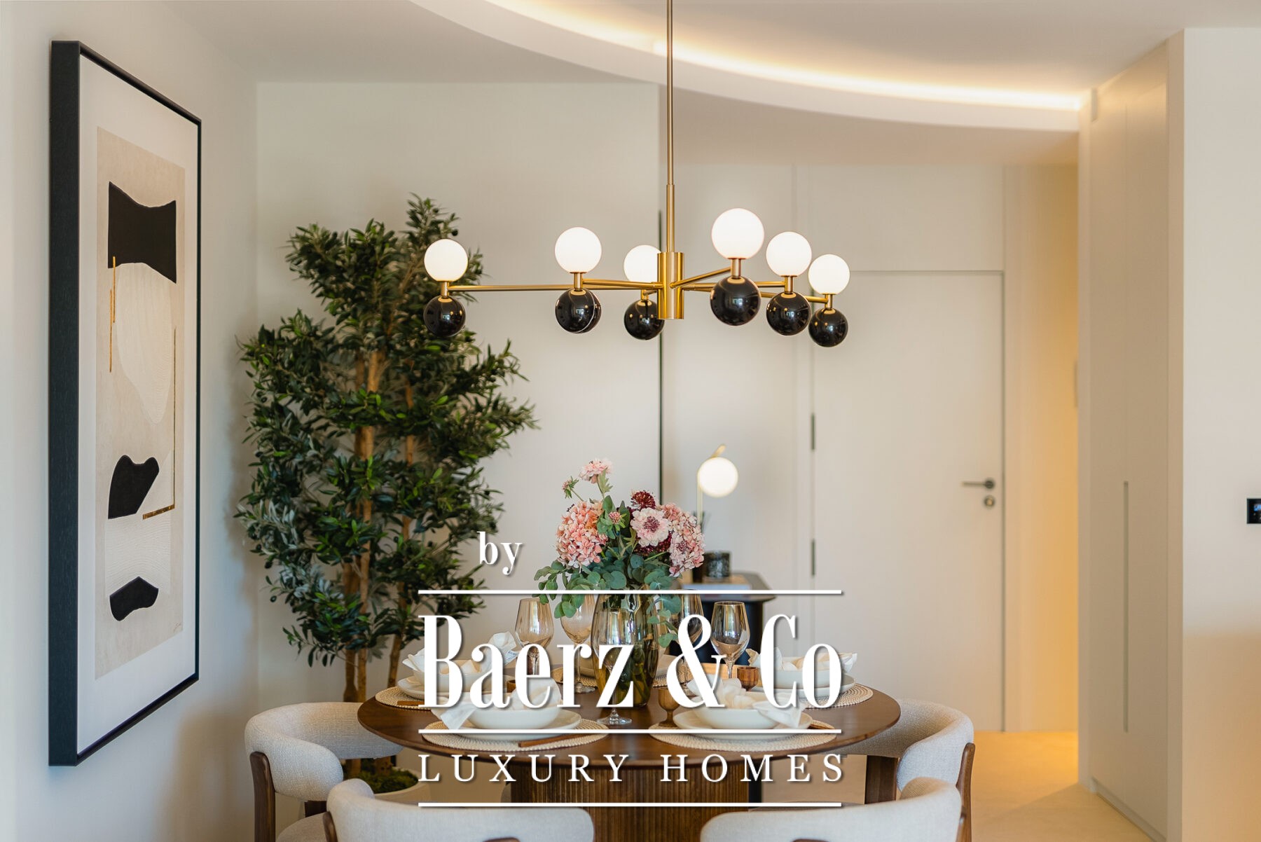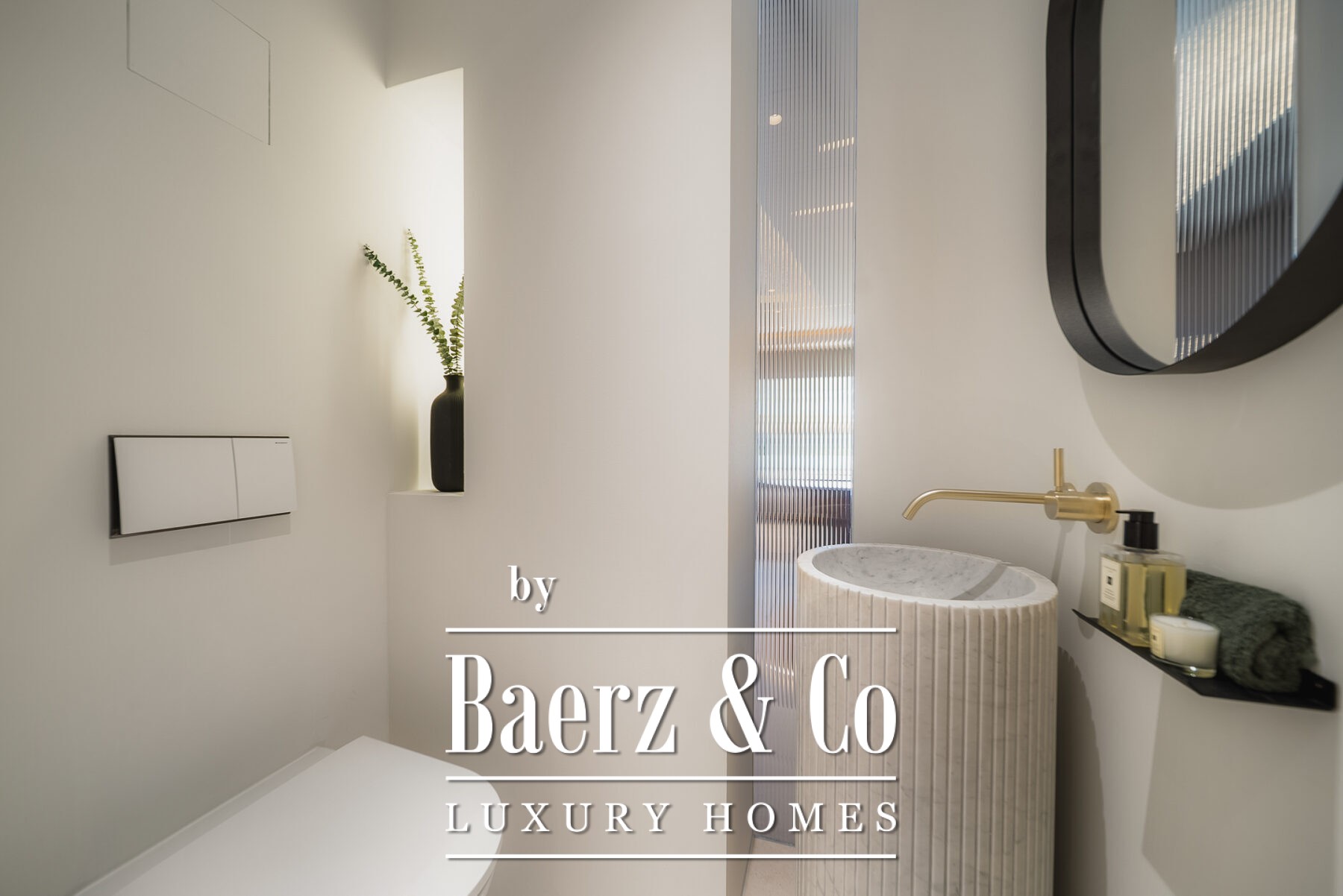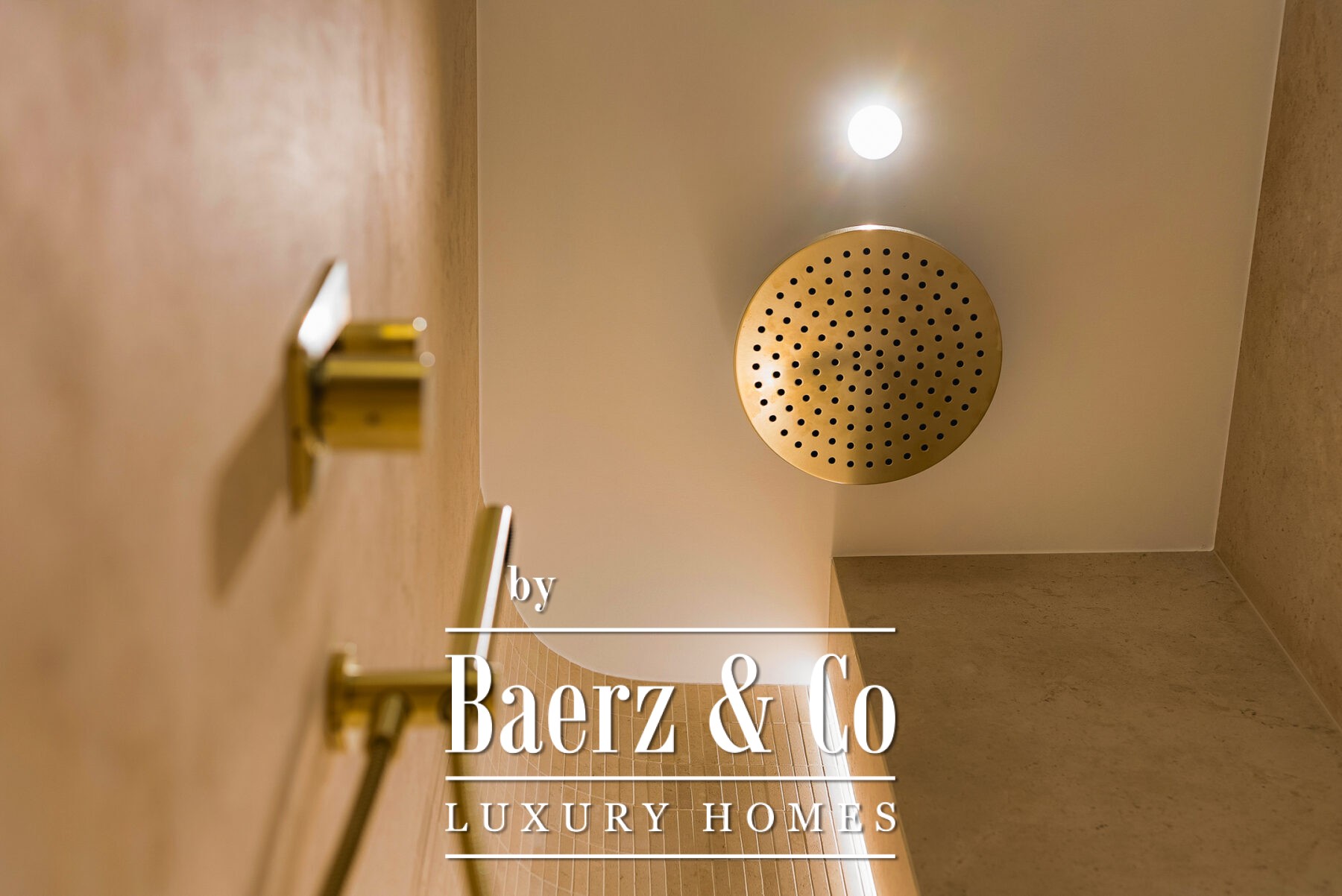 Der architektonische Rhythmus würdigt subtil die charakteristischen Rundformen des Gebäudes und balanciert mediterranes Flair mit klarer, zeitgemäßer Linienführung. Jedes Detail – von Fußbodenheizung bis zu maßgeschneiderter Beleuchtung – vermittelt eine Atmosphäre kultivierter Leichtigkeit.