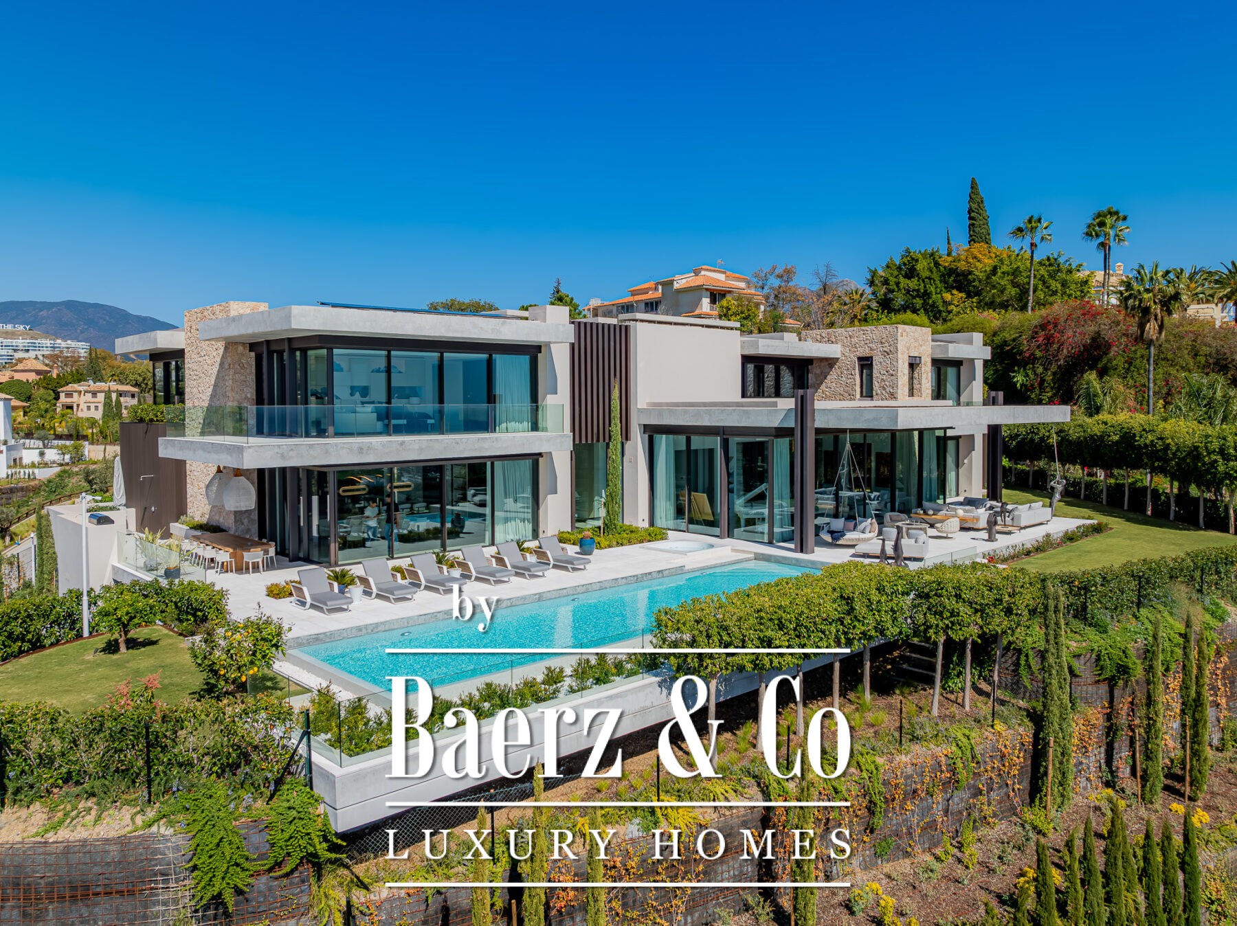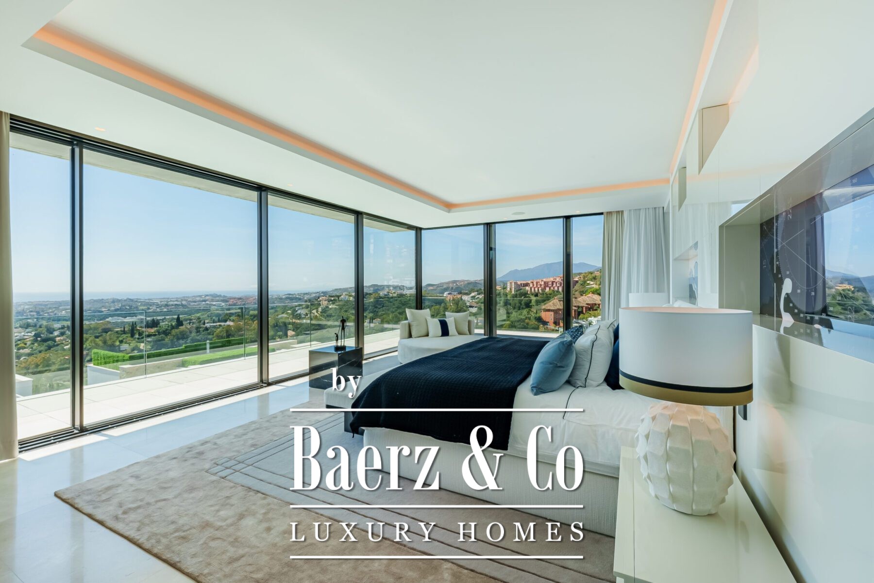 Die Villa Marbella mit Panoramablick auf Meer und Berge ist ein architektonisches Statement in der renommierten Enklave La Quinta. Diese Residenz bietet 1.451 m² Wohnfläche auf einem 2.650 m² großen Grundstück und ist sorgfältig für Privatsphäre, Verbindung und ein fließendes Wohngefühl zwischen Innen- und Außenbereich konzipiert. Die Villa umfasst acht Schlafzimmer und acht Badezimmer, darunter eine Mastersuite mit begehbarem Kleiderschrank und einem vom Spa inspirierten Bad. Jeder Raum ist so ausgerichtet, dass die spektakulären Ausblicke auf die Mittelmeerküste und die grünen Landschaften voll zur Geltung kommen, wodurch ein stetiger Dialog mit der Umgebung entsteht.