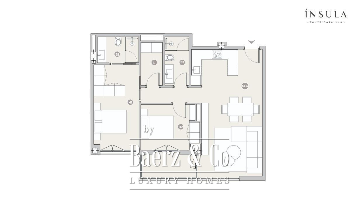 Das Apartment Palma in Santa Catalina bietet eine dezente Rückzugsmöglichkeit in einem der begehrtesten Viertel der Stadt. Diese 2025 fertiggestellte, neu errichtete Residenz strahlt eine stille Souveränität aus und verbindet hochwertige Materialien mit architektonischer Präzision. Auf 111 m² erstrecken sich zwei elegante Schlafzimmer und zwei Bäder, die für maximale Privatsphäre und Komfort gestaltet wurden. Der Wohnbereich öffnet sich zur Terrasse, die Küche und Wohnzimmer verbindet – ein idealer Platz, um das mediterrane Licht zu genießen, das den Tagesrhythmus des Viertels prägt.