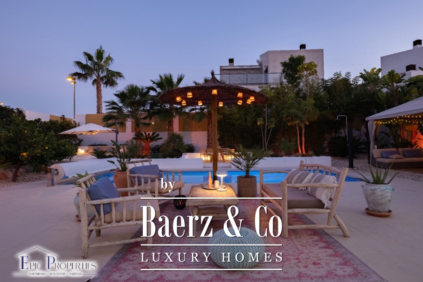 Im Außenbereich zeigt sich das mediterrane Lichtspiel im beheizten Privatpool und dem pflegeleichten Garten. Verschiedene Terrassen bieten individuelle Plätze zur Entspannung, mit Loungebereichen und schattigen Rückzugsorten. Der Parkplatz befindet sich innerhalb des umzäunten Grundstücks. Nachhaltigkeit ist dezent durch Solarpanels, Einzelheizung, Doppelverglasung und Klimaanlage integriert. Die Villa Polop bietet einen dezenten Rückzugsort für all jene, die Wert auf ein komfortables und durchdachtes Zuhause in Spanien legen.