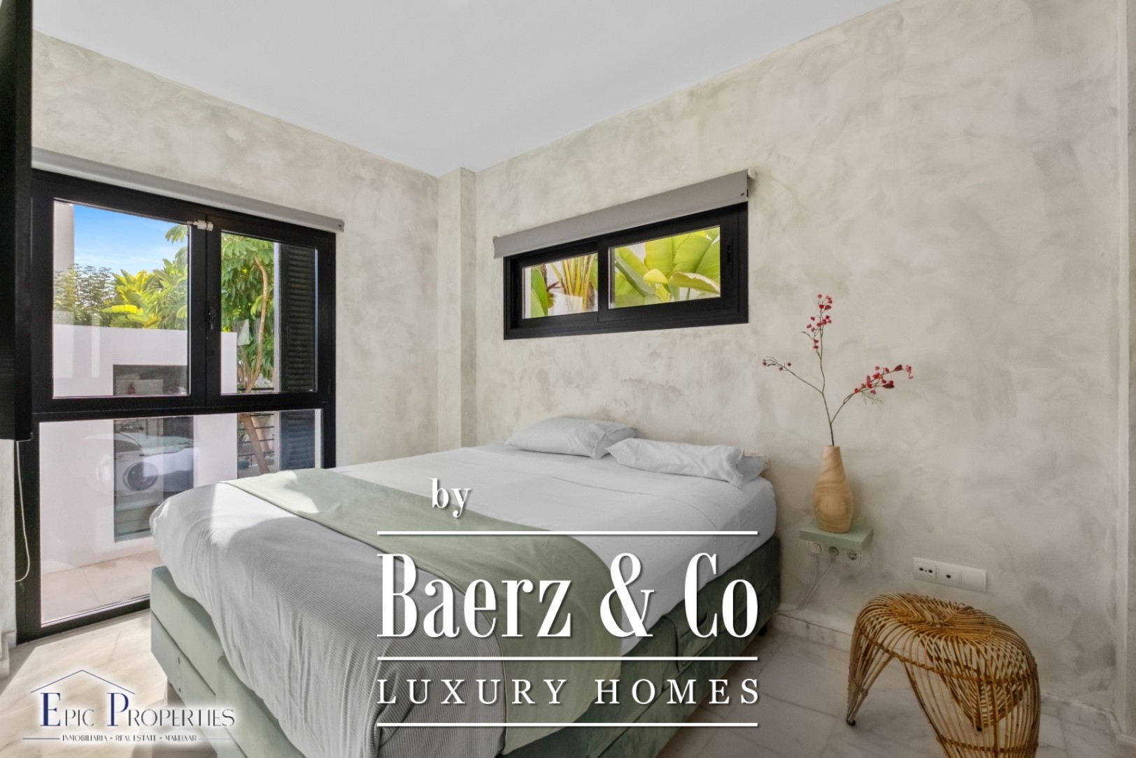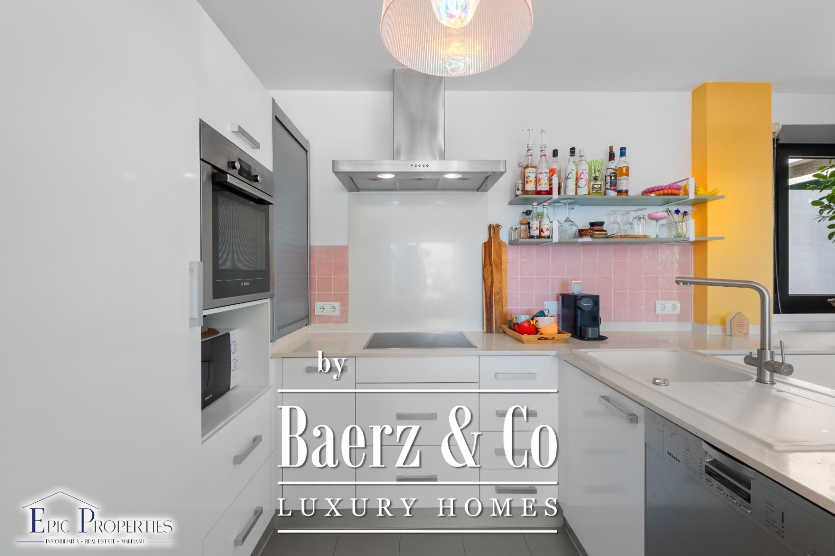 Der zentrale Wohnbereich geht fließend in die offene, vollständig ausgestattete Küche über und schafft unter den großen Fenstern einen geselligen Rahmen, in dem Sonnenlicht den Raum belebt. Drei Schlafzimmer sind klar und komfortabel gestaltet; die Master-Suite bietet ein eigenes Bad sowie eine begehbare Ankleide. Die weiteren Schlafzimmer verfügen über Einbauschränke für sorgfältige Aufbewahrung.