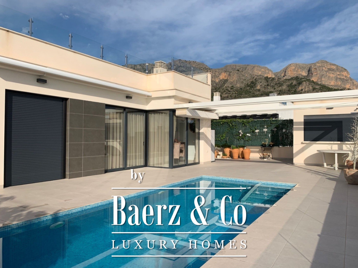 Im Außenbereich lädt ein privater Pool zu ruhigen Nachmittagen ein, ergänzt durch ein Solarium, einen Grillbereich mit Bar, eine Außenküche sowie offene und überdachte Terrassen. Privater Parkplatz, Abstellraum und Waschküche garantieren zusätzliche Alltagstauglichkeit. Diese Immobilie entspricht den diskreten Erwartungen von Familien, die großzügig wohnen möchten, oder denjenigen, die eine komfortable „Lock-and-Leave“-Lösung in Spanien suchen. Eine luxuriöse Villa zum Verkauf in Polop, in der offene Grundrisse und durchdachte Ausstattungen Privatsphäre und langanhaltende Lebensqualität vereinen.
