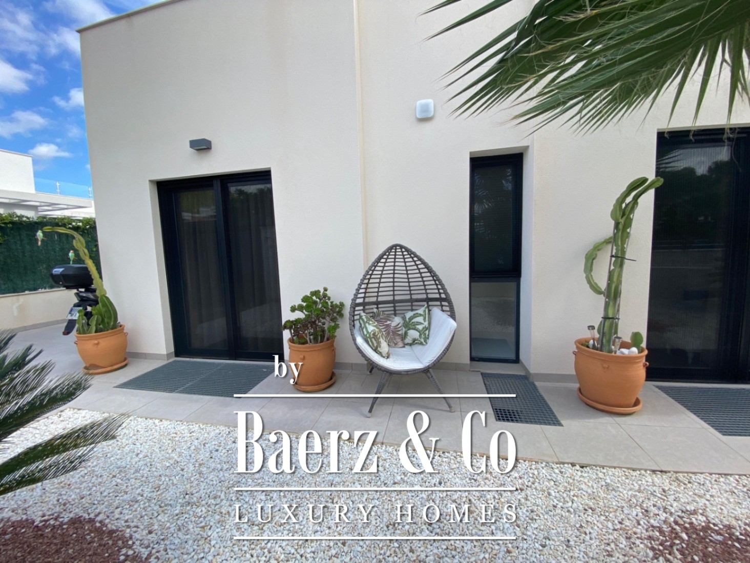 Die moderne Villa Polop verankert sich in einer ruhigen Umgebung, erbaut im Jahr 2021 und gestaltet für ein entspanntes mediterranes Lebensgefühl. Diese moderne Villa Polop steht auf einem 408 m² großen, umzäunten Grundstück und erstreckt sich ebenerdig über 110 m², wo Licht den Wohn- und Essbereich durchflutet, der sich harmonisch zur integrierten Küche öffnet. Auf der Hauptetage befinden sich drei Schlafzimmer sowie zwei voll ausgestattete Bäder mit Duschen, jeder Raum geprägt von Klarheit und Komfort.