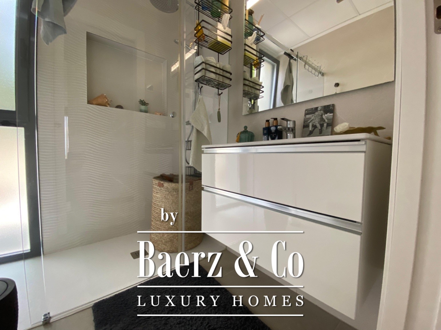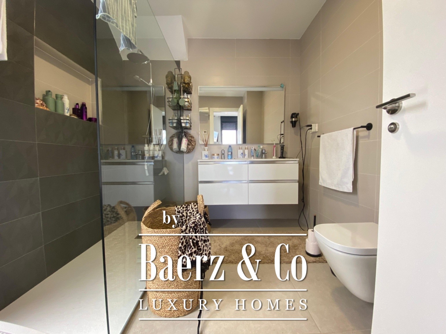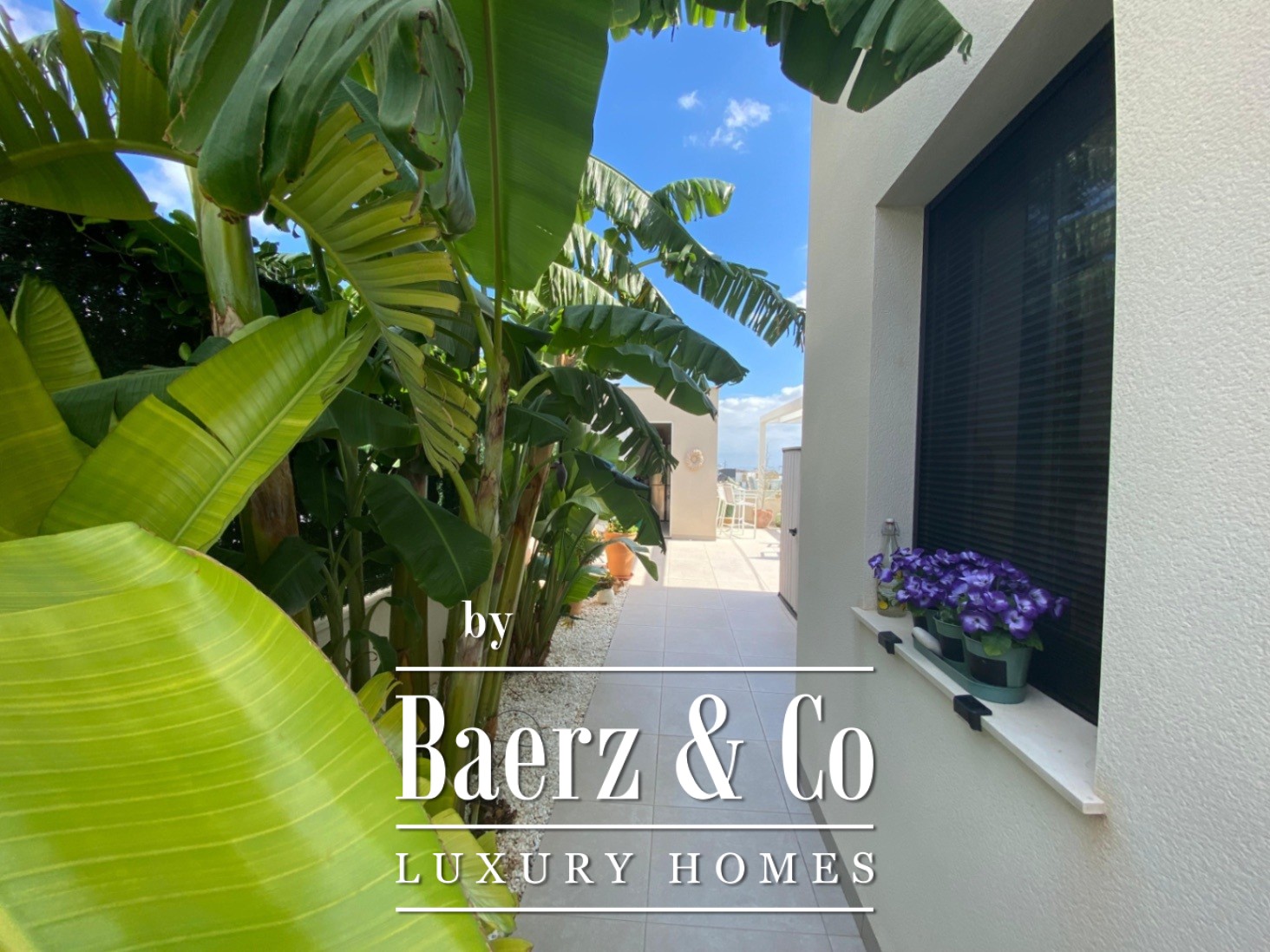 Im Untergeschoss befindet sich ein diskretes Gästeapartment mit zwei Schlafzimmern, einem Bad und eigenem Wohnbereich – ideal, um Gästen Privatsphäre zu bieten. Im gesamten Haus sorgen Klimaanlage, zentrale Elektroheizung und isolierverglaste Fenster mit Insektenschutz für ein behagliches Klima zu jeder Jahreszeit.