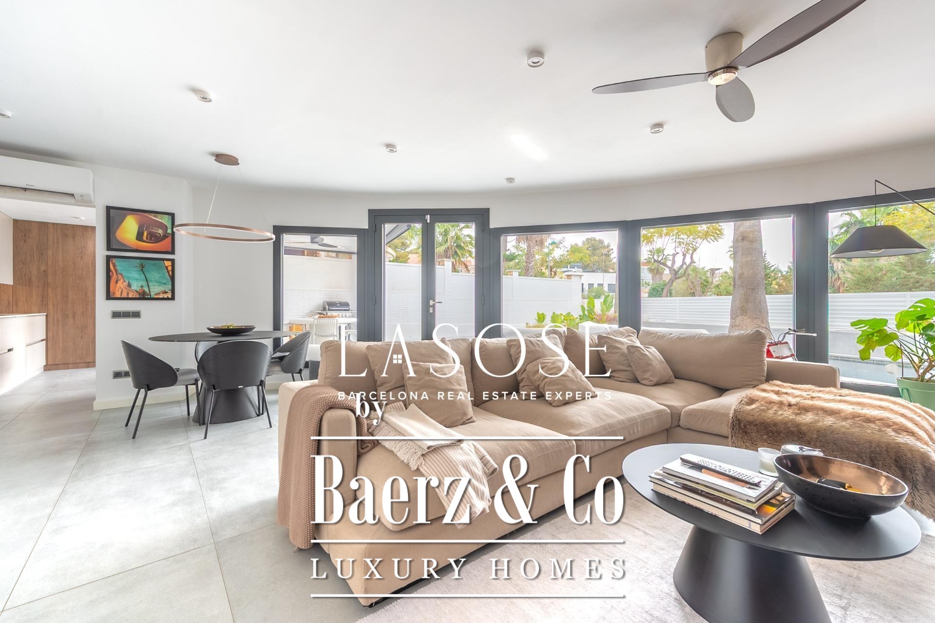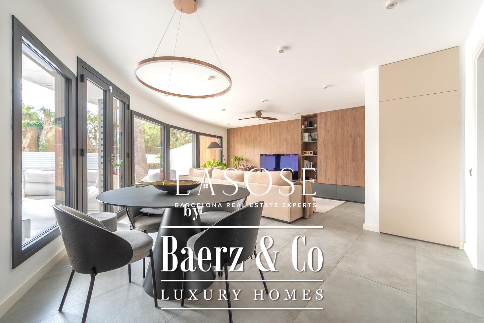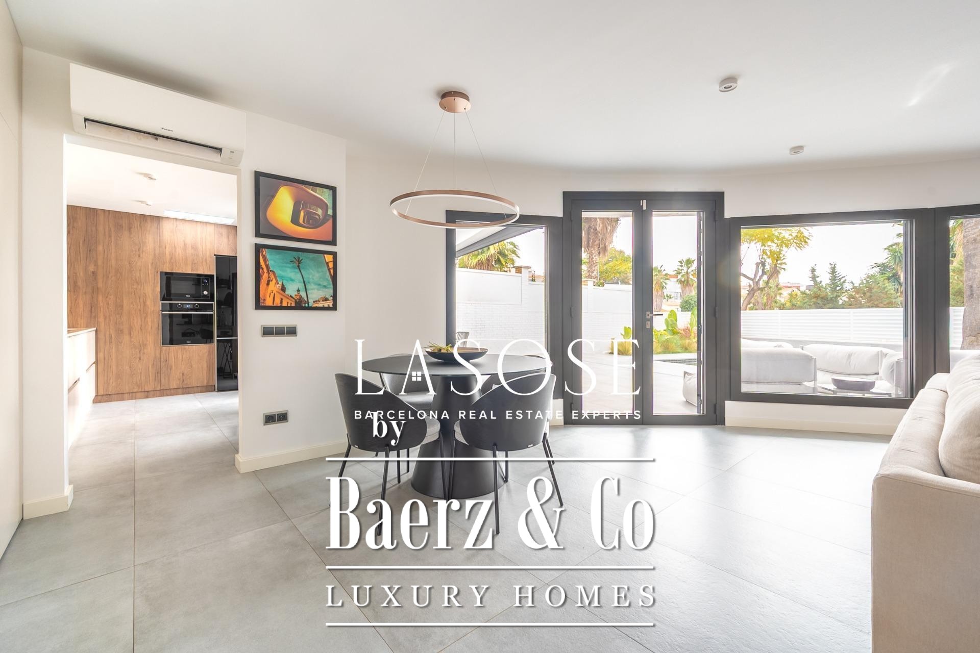 Eine geräumige Garage im angrenzenden Gebäude deckt alle Bedürfnisse rund um Fahrzeug und Lagerung ab. Das Leben in Vallpineda bietet Zugang zu exklusiven Clubeinrichtungen, darunter Schwimmbad, Tennis und Fitnessstudio, sowie eine schnelle Anbindung an die Strände, das kulturelle Angebot von Sitges und die C-32 Richtung Barcelona oder Flughafen. Diese Villa in Sitges Vallpineda ist eine seltene Gelegenheit, modernes Design mit mediterraner Leichtigkeit zu vereinen.