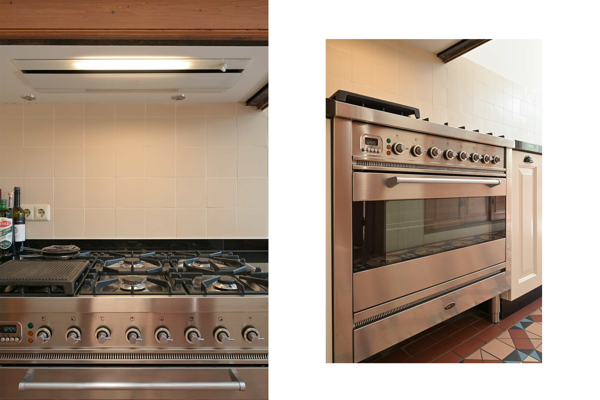 The 2nd floor (surface area ca. 88 m2, ceiling height 2.97 meters) has wooden flooring throughout and a landing that is bathed in sunlight from a large skylight, plus a separate wc. There is an especially bright, good-sized front room with a dormer and high ceiling, as well as a big back bedroom - both with built-in wardrobes. Two smaller rooms, of which one houses the laundry, offer the possibility of creating a second bathroom, see artist impresion (cost circa €16.000 - €18.000; quotation available). The back rooms have partially unobstructed views over the iconic Haganum building.