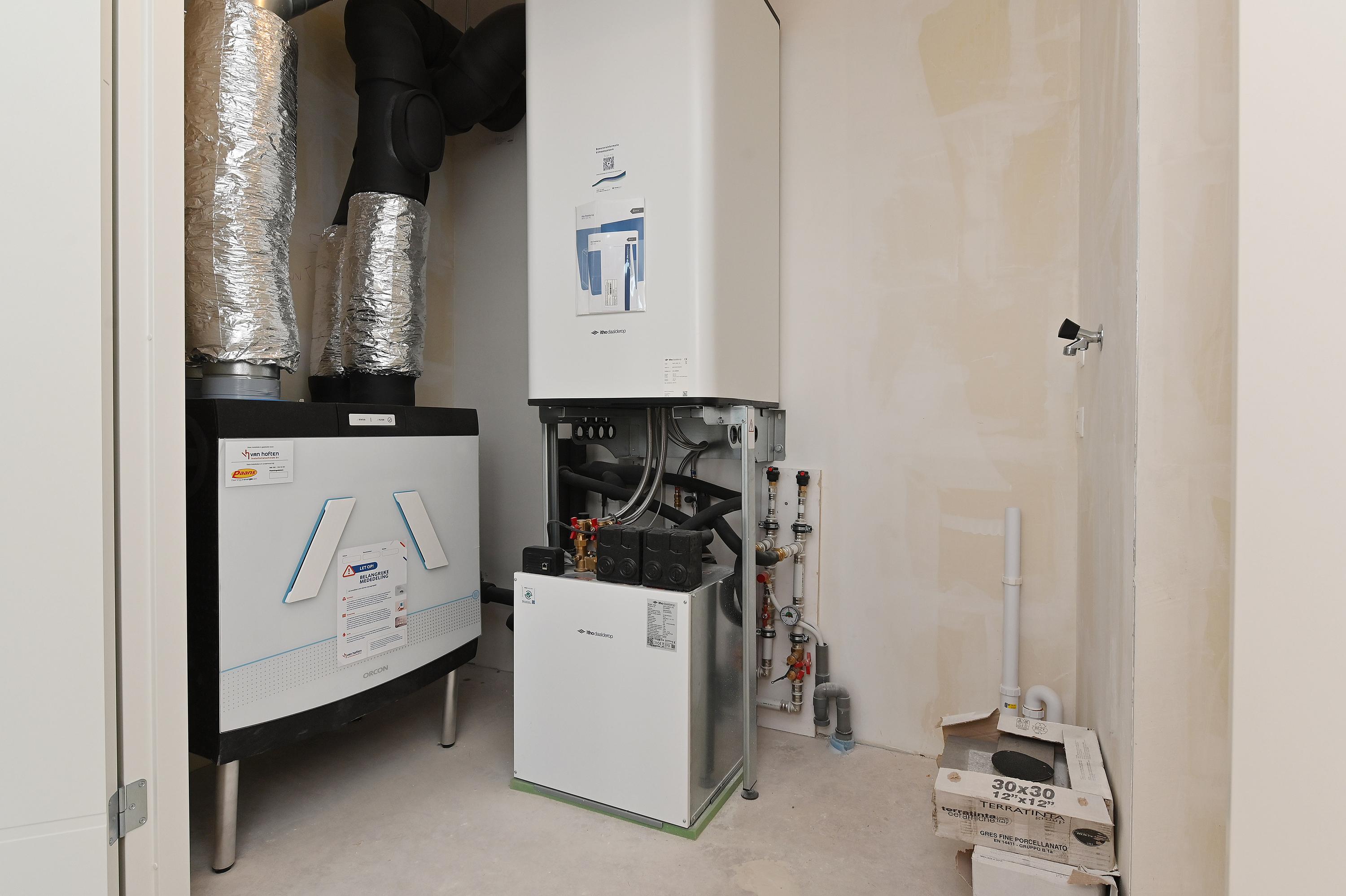 The apartment is equipped with underfloor heating and cooling in all rooms, except for the technical room/storage.