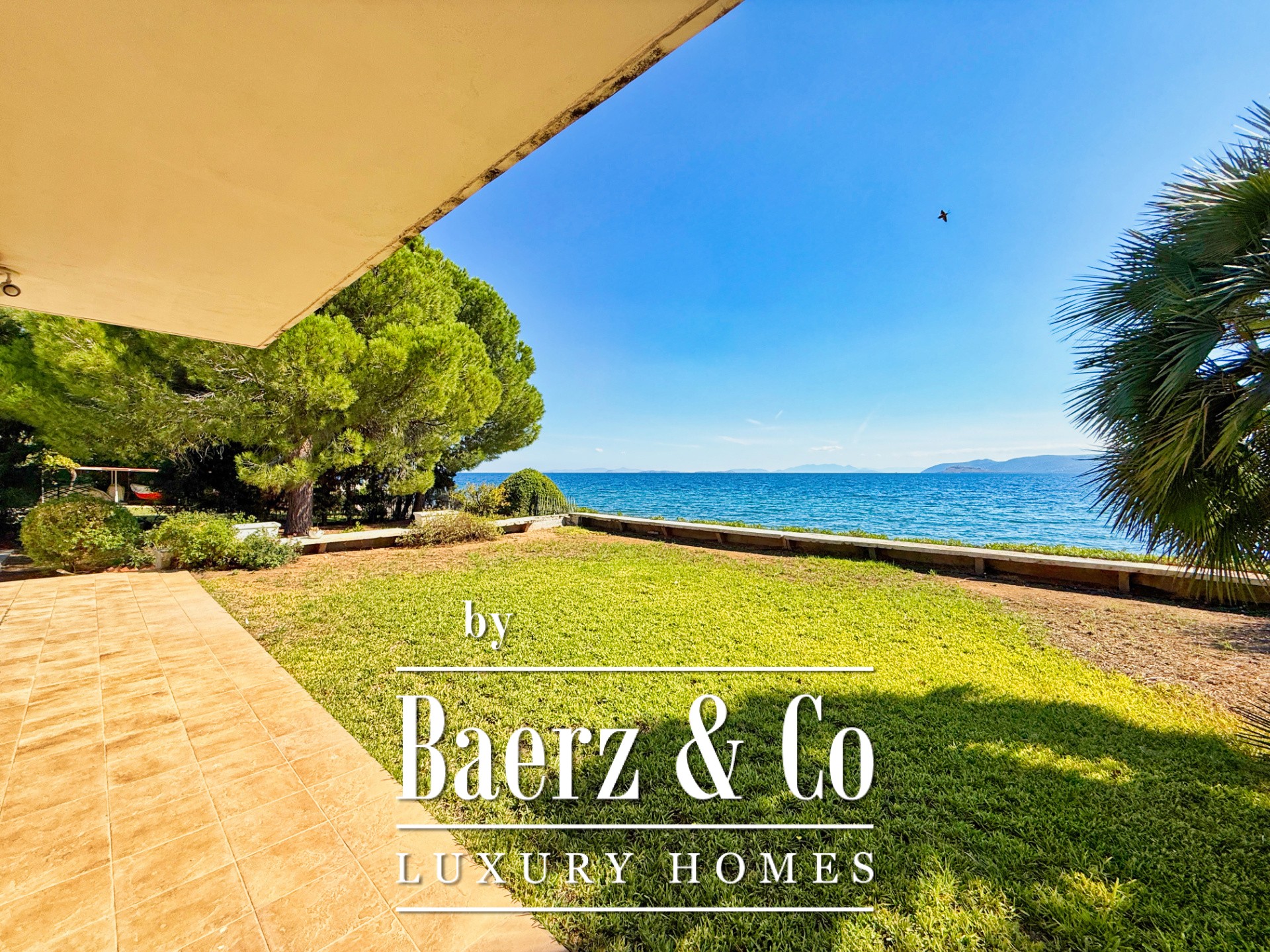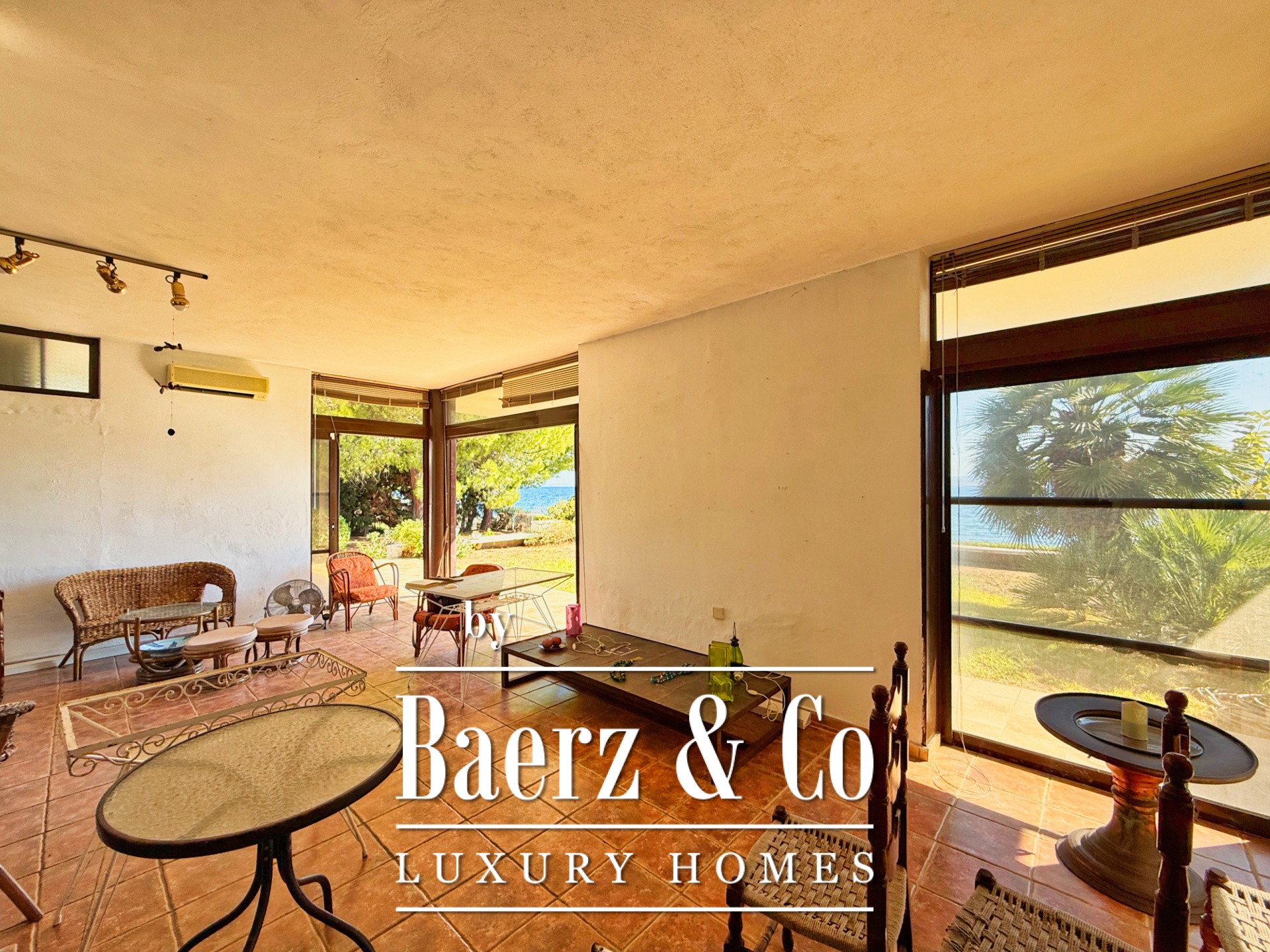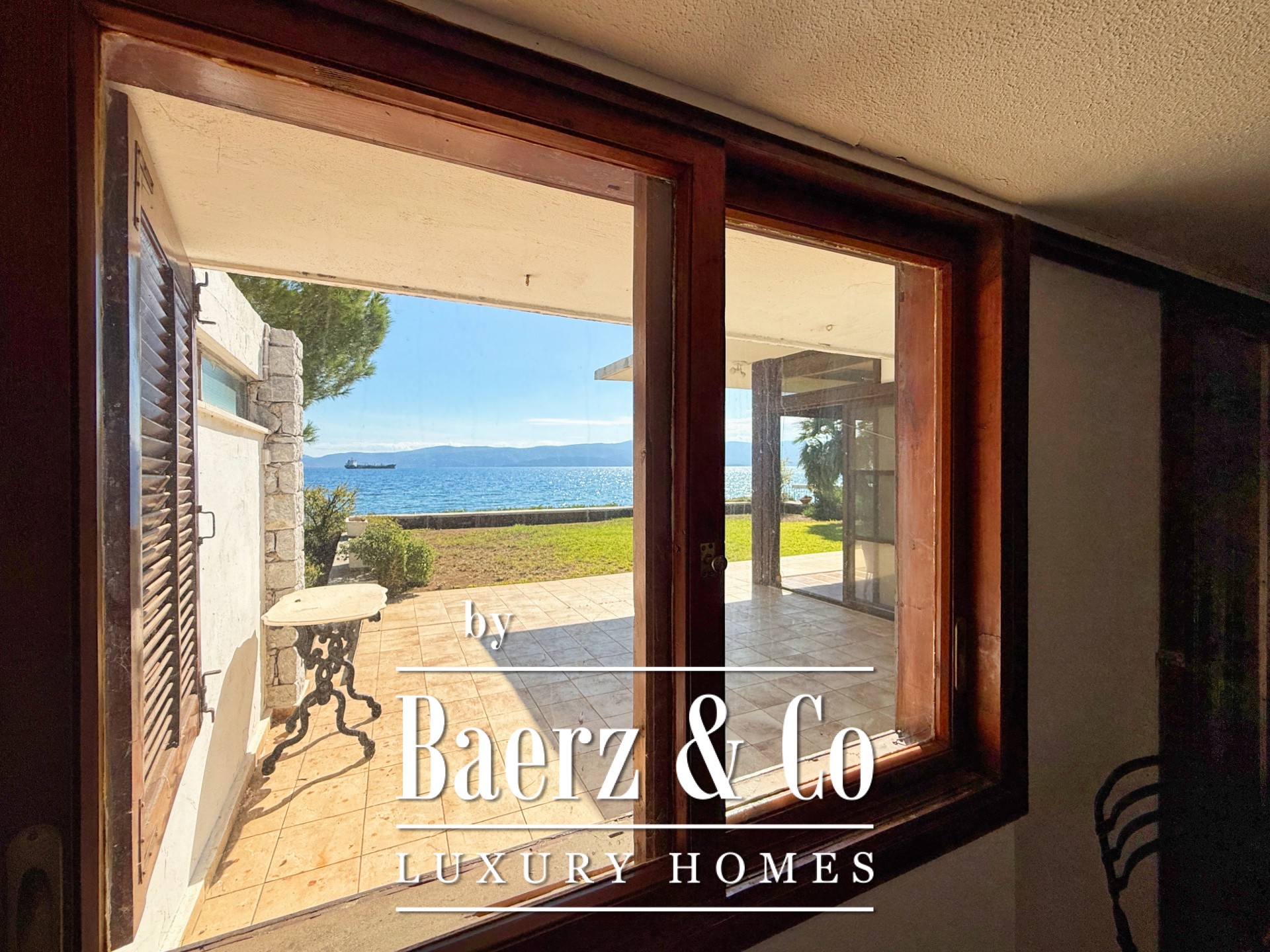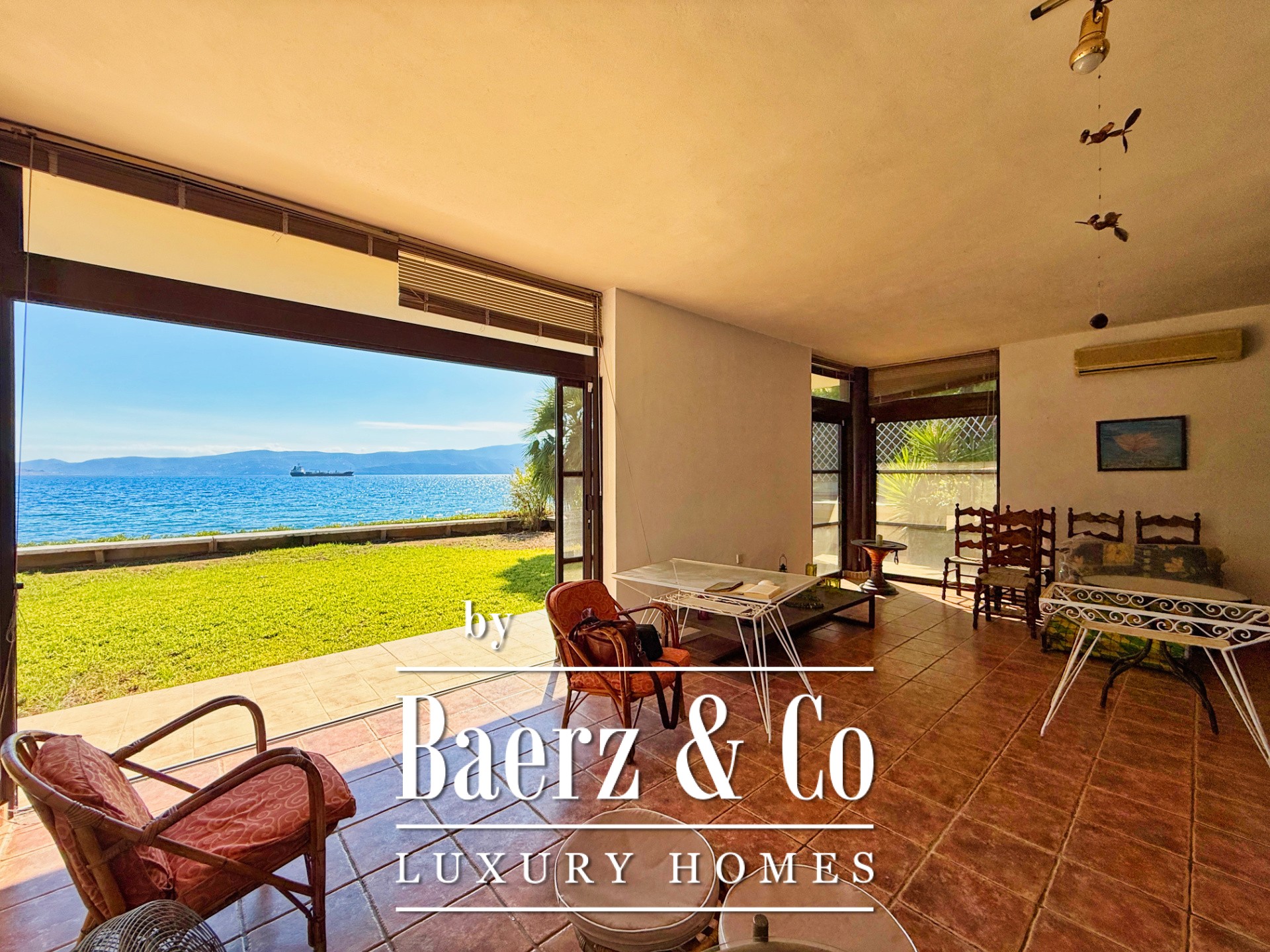 This detached house Agioi Theodoroi occupies a privileged seafront location in Corinthia, set on a 1,400 m² plot with panoramic and unobstructed views of the water. Built in 1967, the 140 m² residence comprises five bedrooms, two bathrooms, a kitchen, a living room, and a light-filled sitting area framed by expansive openings. The connection between interior and landscape is immediate, with the main living space inviting natural light and anchoring every moment to the sea just beyond.