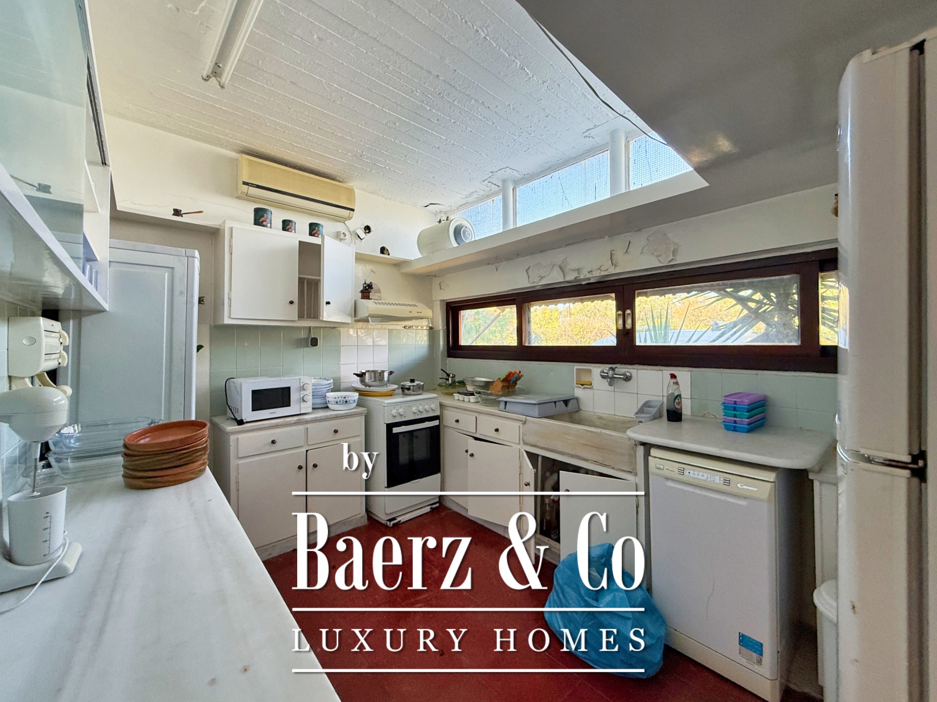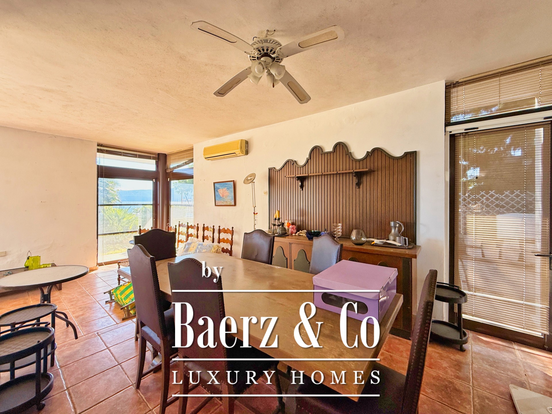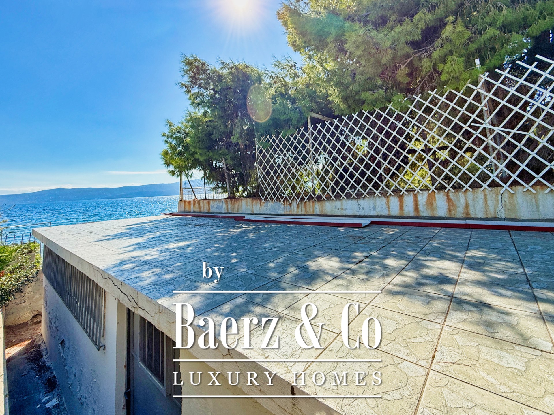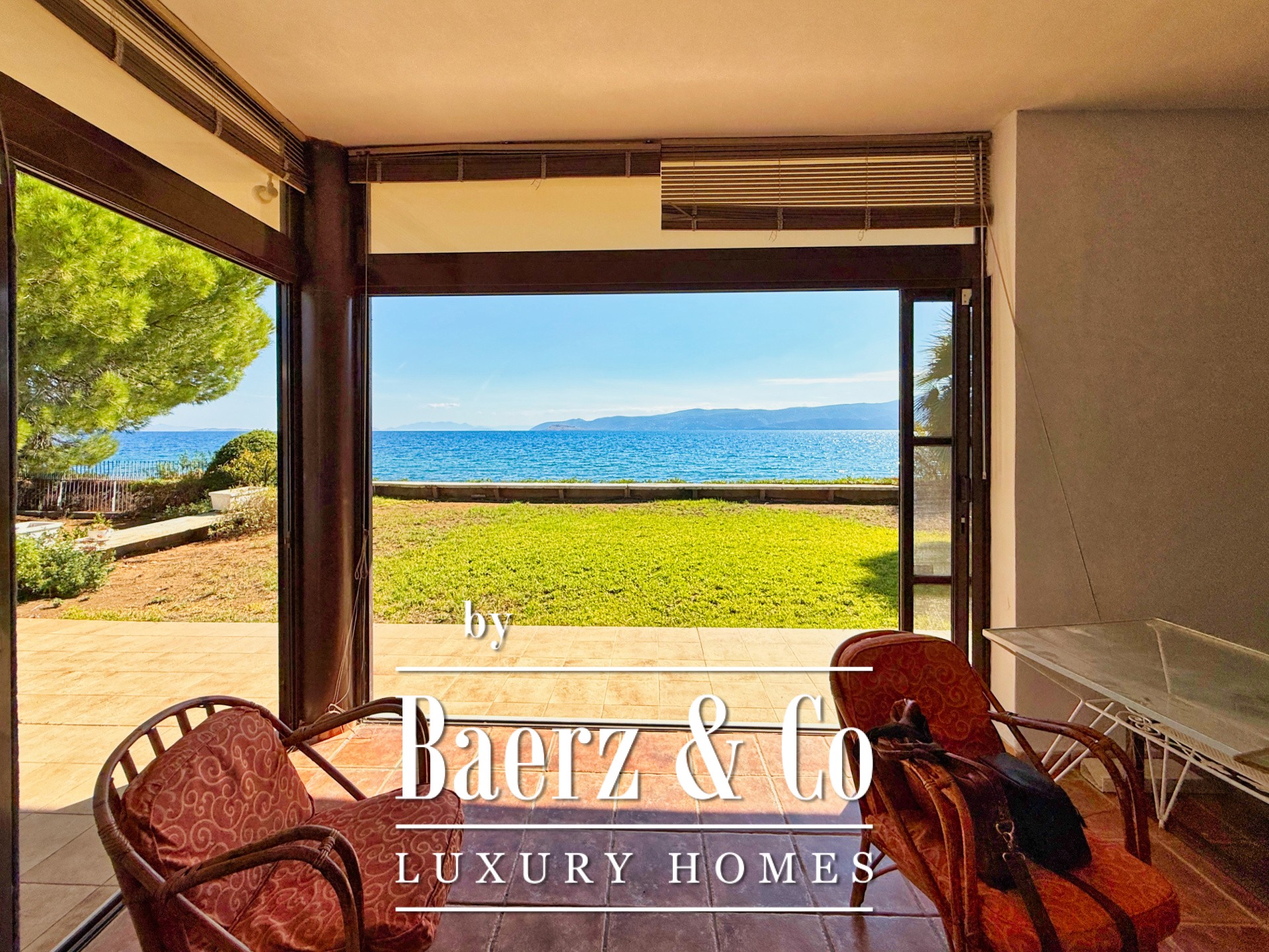 This detached house Agioi Theodoroi occupies a privileged seafront location in Corinthia, set on a 1,400 m² plot with panoramic and unobstructed views of the water. Built in 1967, the 140 m² residence comprises five bedrooms, two bathrooms, a kitchen, a living room, and a light-filled sitting area framed by expansive openings. The connection between interior and landscape is immediate, with the main living space inviting natural light and anchoring every moment to the sea just beyond.