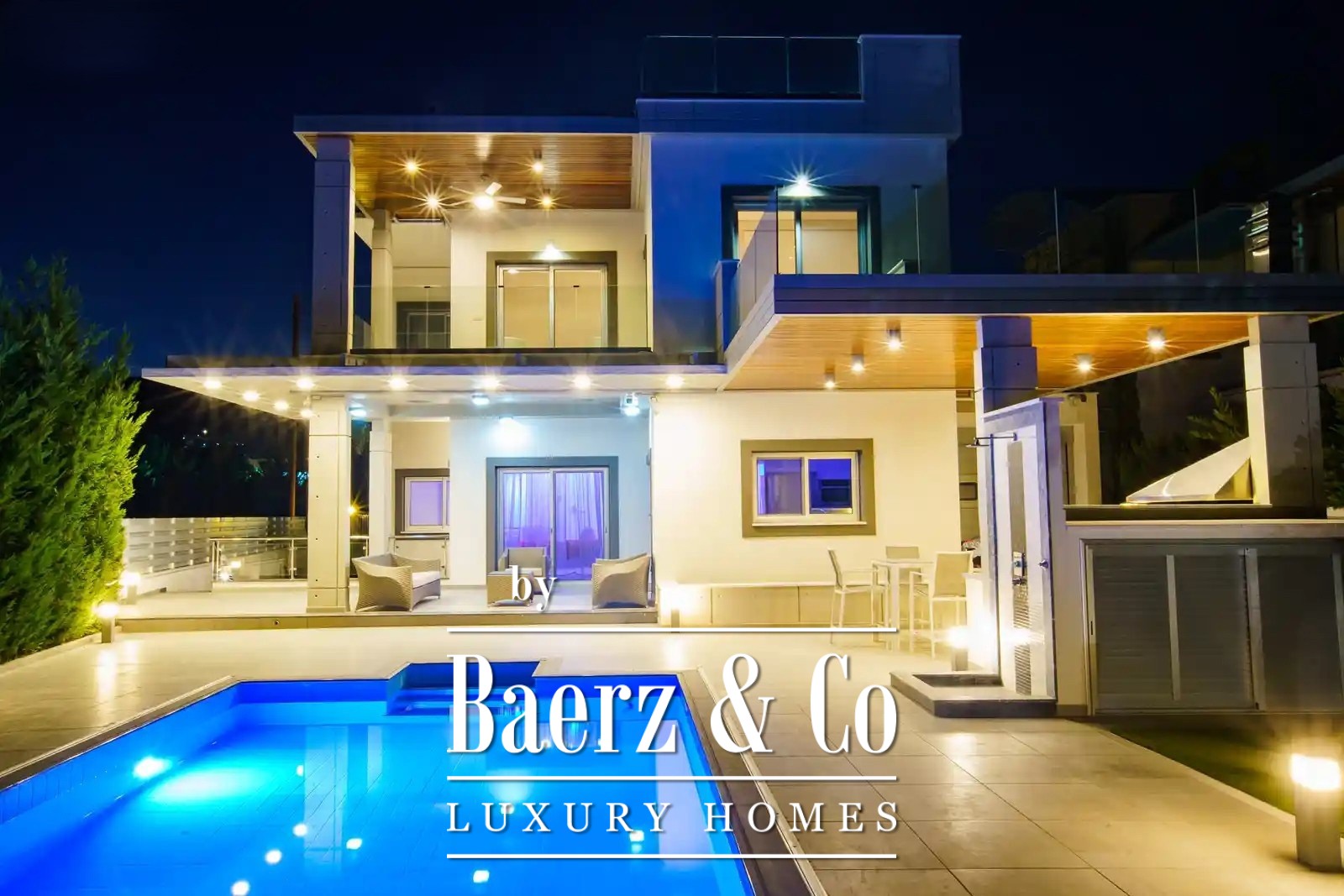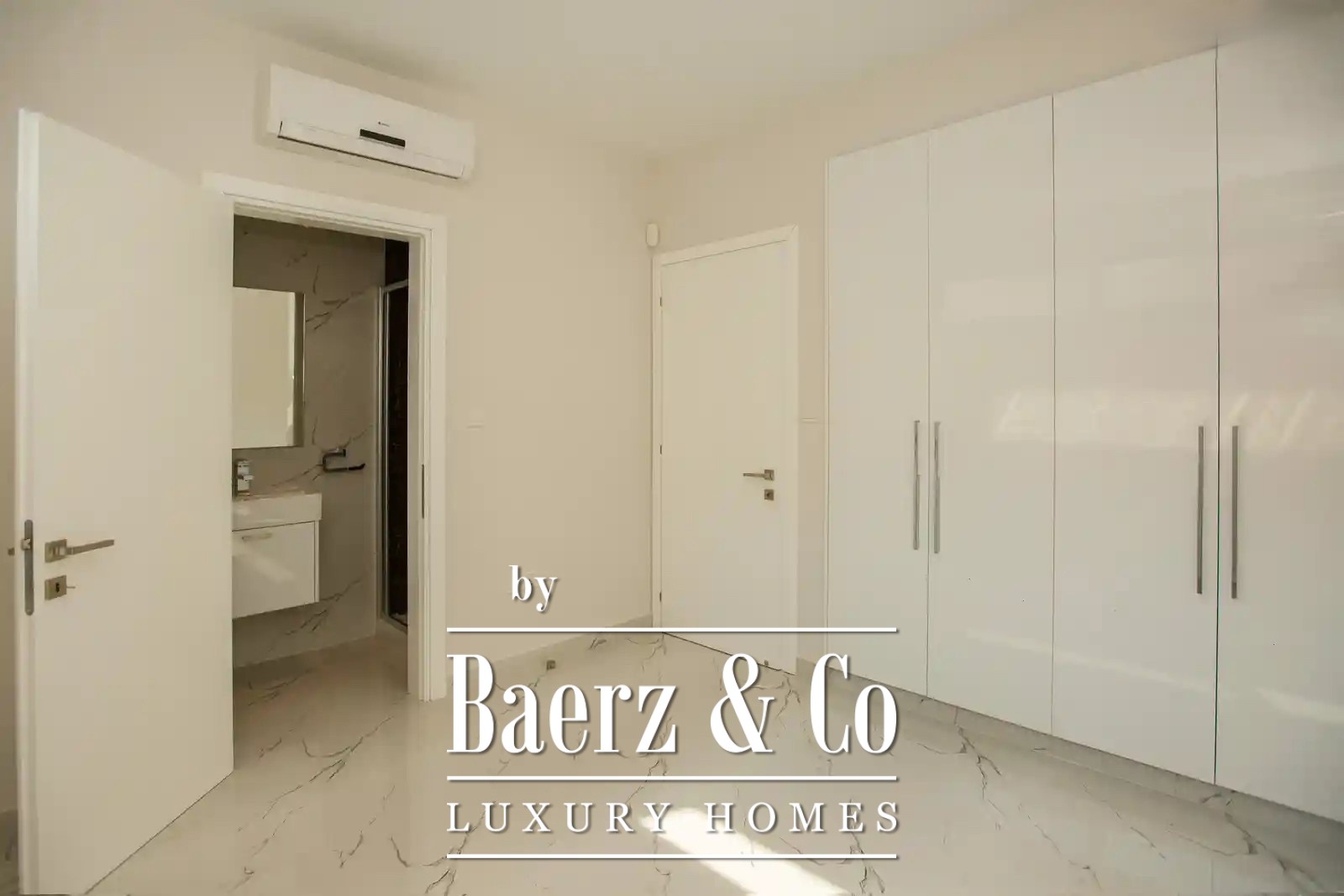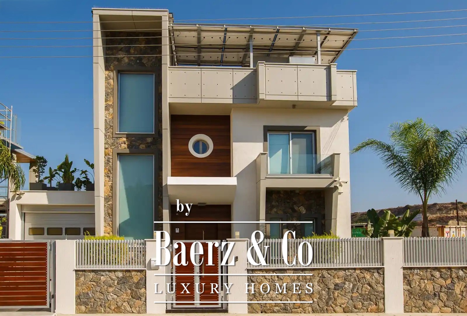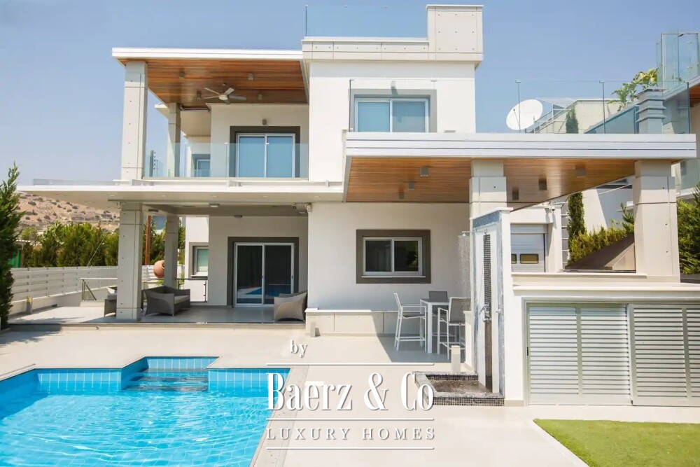 Villa Agios Tychonas stands in a prime Limassol location blending contemporary architecture with privacy and luminous interiors. Designed across three levels, this villa offers 275 sq.m. of internal living space on a 600 sq.m. plot, with bright volumes and a seamless connection between kitchen, dining, and open-plan living areas. Four bedrooms, including a terrace-access master, and a flexible guest or maid’s suite on the lower level provide luxurious accommodation.