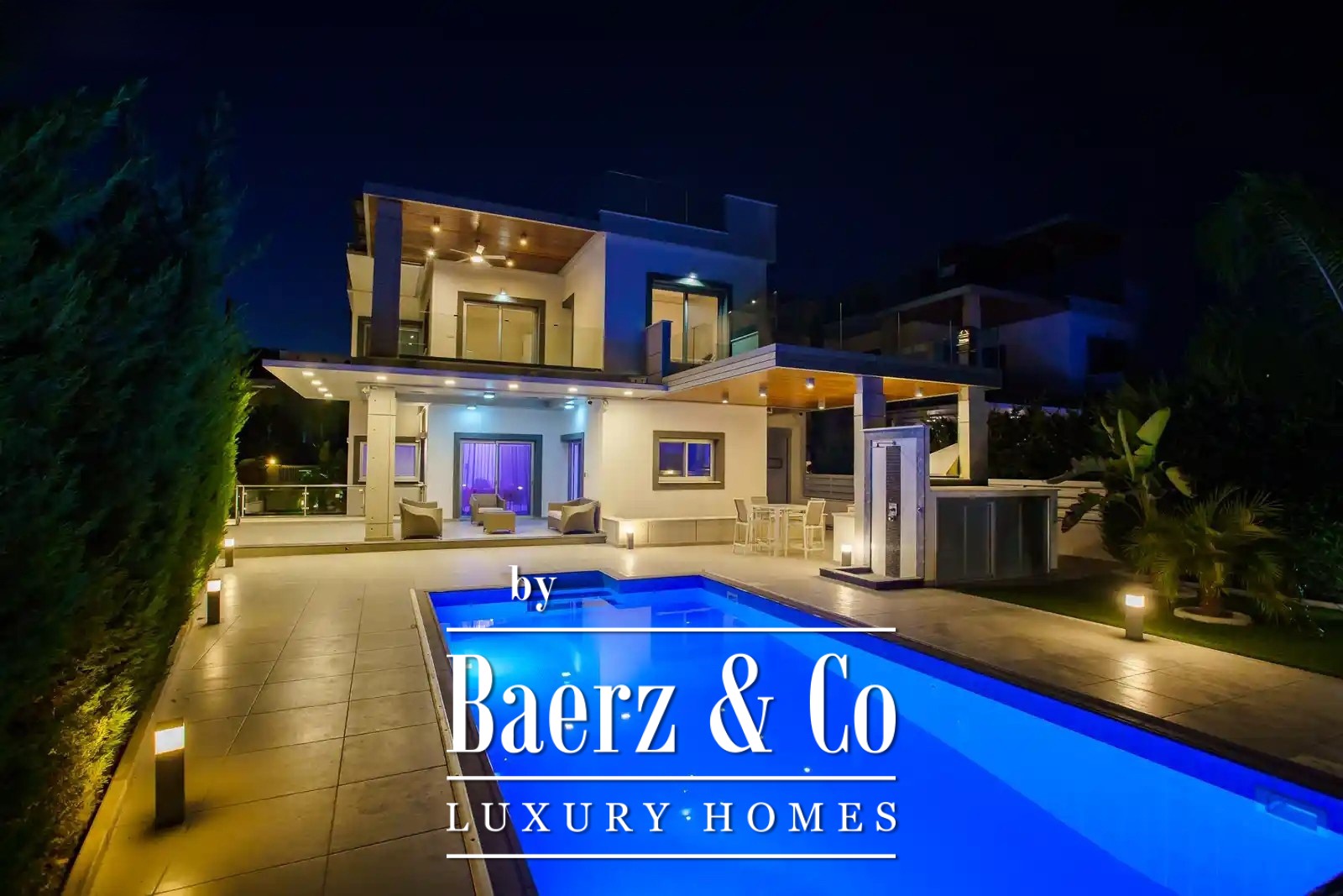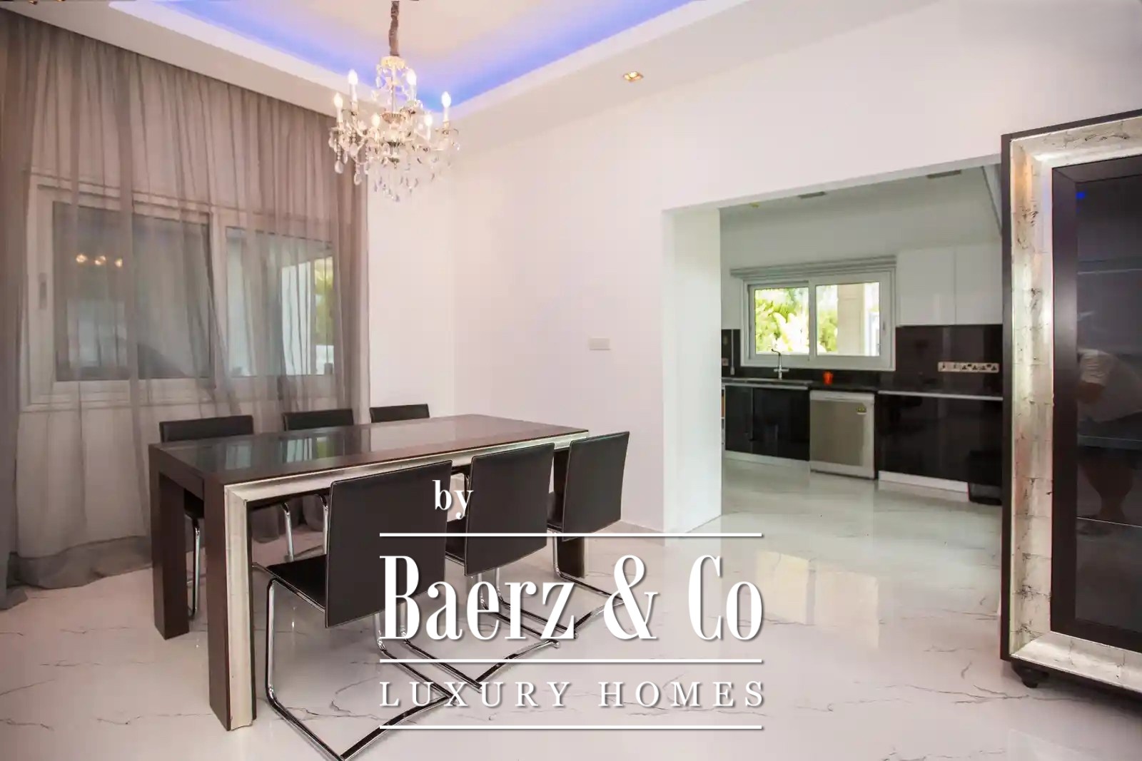 Villa Agios Tychonas includes an alarm system, CCTV, security door, laundry and storage areas, and covered parking. Fully furnished and equipped, the villa is only 1,000 meters from the sea and set in one of Limassol’s most desirable neighborhoods, balancing high-end amenities and discreet luxury.