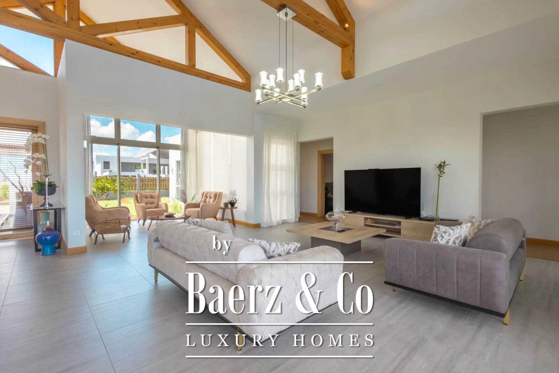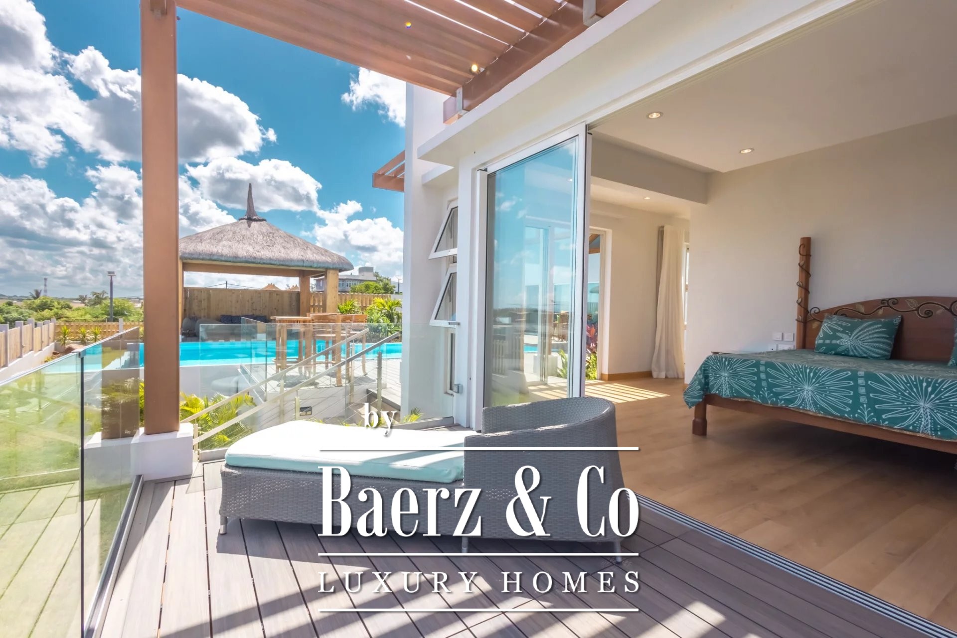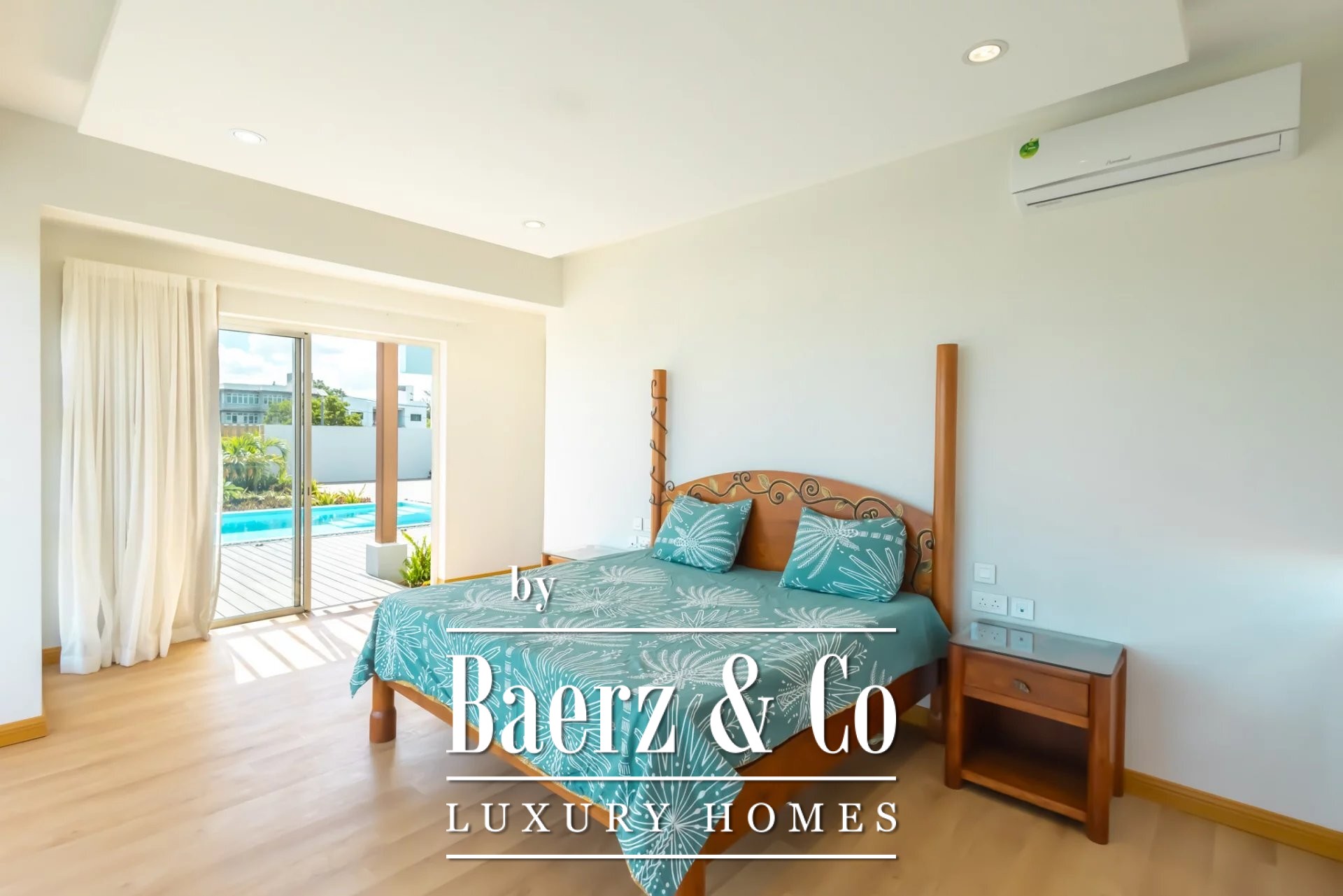 Luxury villa Albion Mauritius presents a rare blend of modern architecture and generous proportions on the west coast of Mauritius. This 552 m² residence is situated in a newly established residential enclave in the heart of Albion, where privacy and security form the backdrop for elegant daily living.
