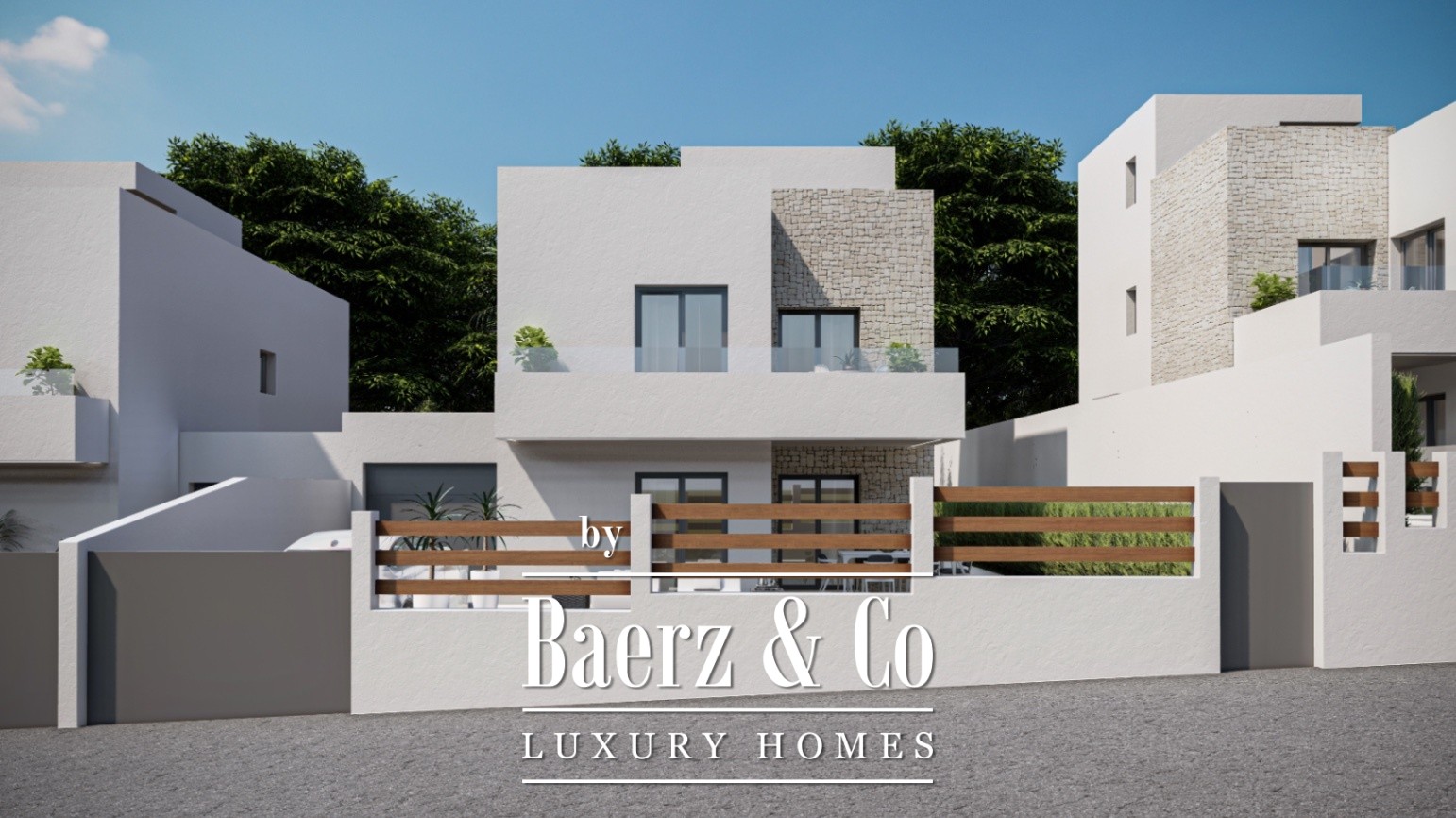 Positioned on a 400 m² plot, the villa frames outdoor life with a private pool, garden, and a rooftop terrace commanding panoramic views. Every room is shaped by the abundant natural light afforded by excellent orientation, while sustainable construction methods grant this home an energy class A rating. Built-in wardrobes, double glazing, secure entry, air conditioning, and centralised heating shape an environment of comfort and efficiency. A storage room and garage add refined convenience to daily living.