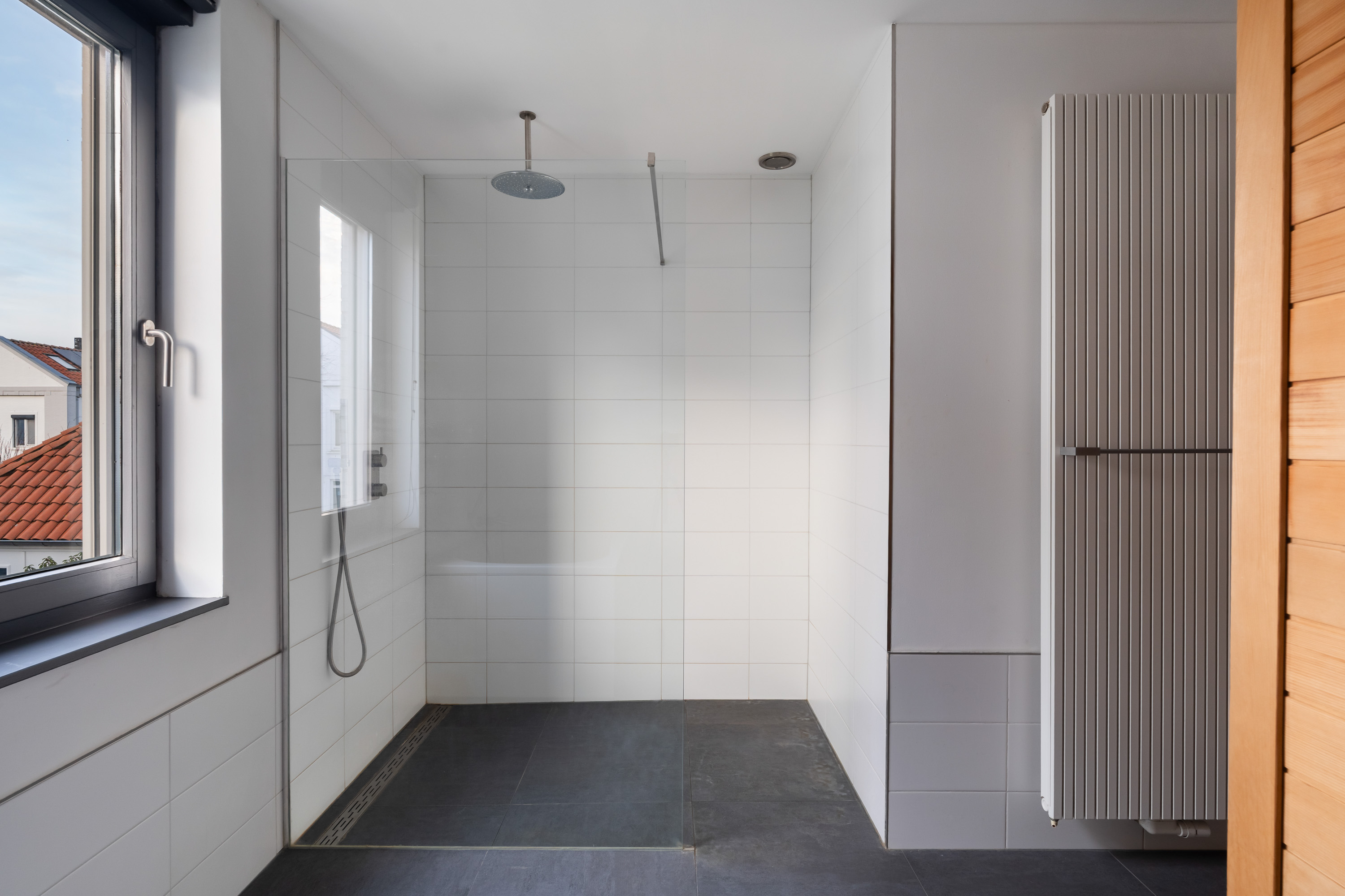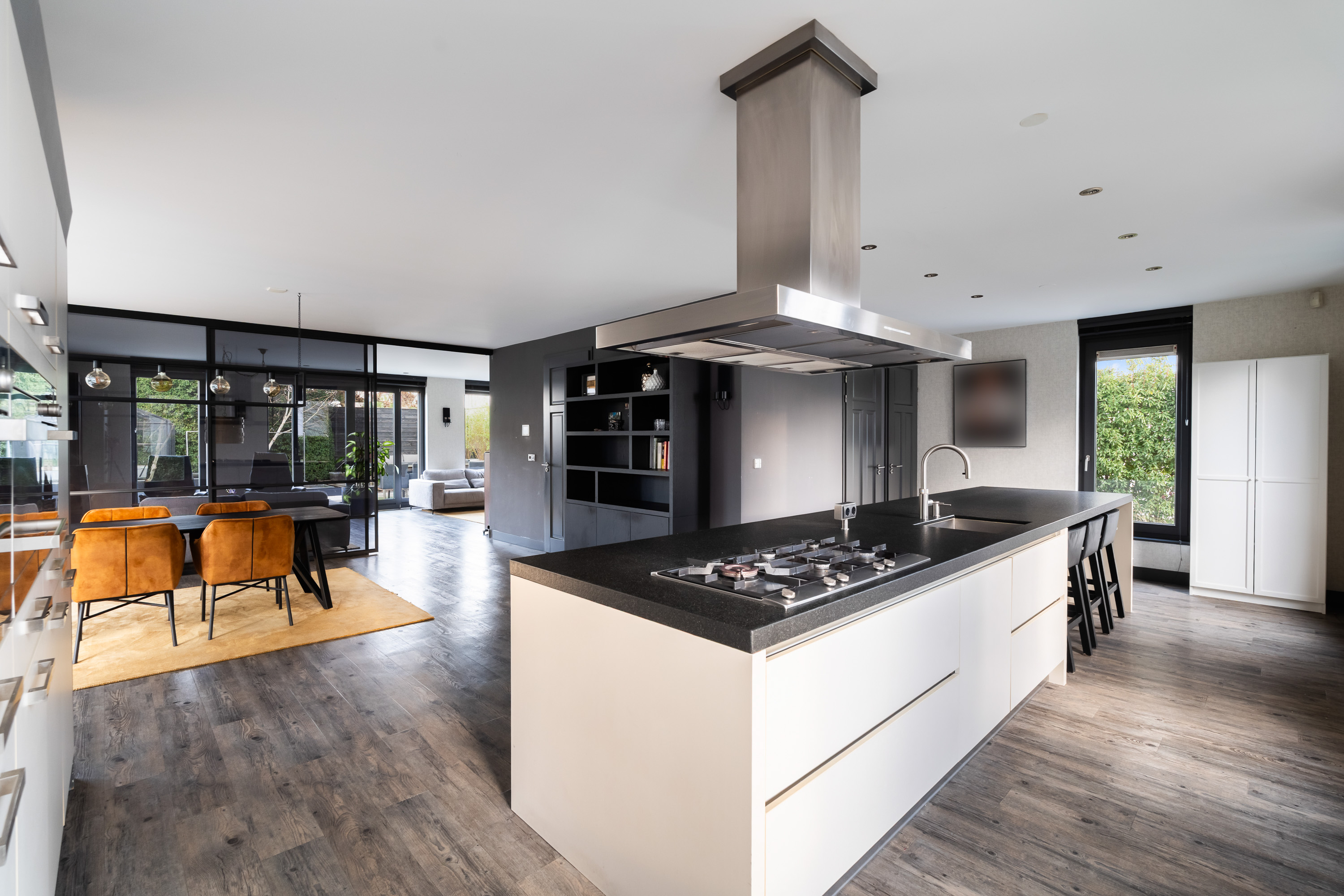 The generous driveway leads you to the entrance of this detached villa. Upon entering the hall, you immediately experience the sense of space, natural light and high-quality finish that characterise the property. The staircase to the first floor is also located here. From the hall, you have access to the various living areas on the ground floor.