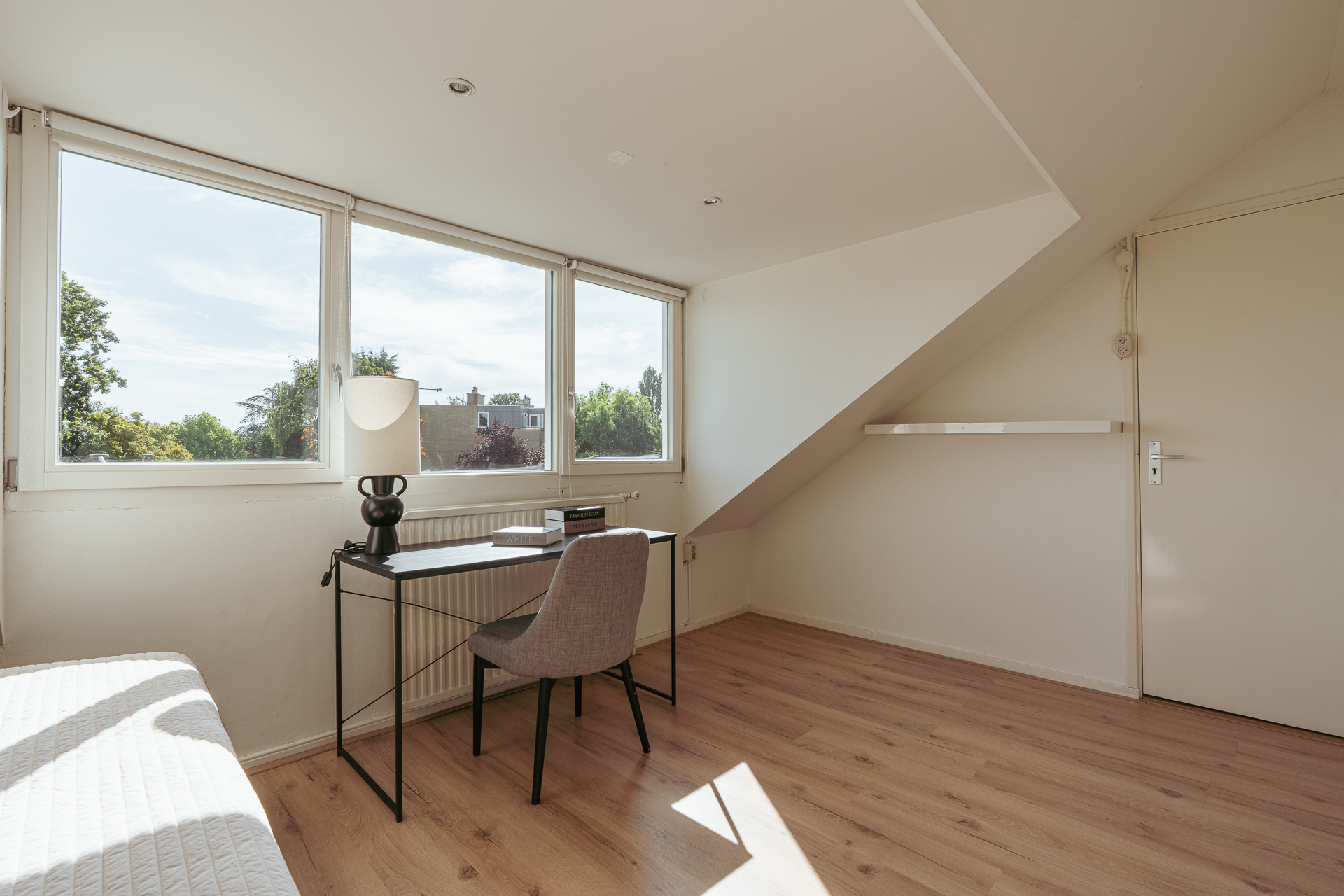Situated in a central position in Elsrijk, this semi-detached house comes with a very sunny west-facing garden, a driveway and an integral garage. If not used for a car, the garage provides convenient storage for bicycles or other vehicles. The spacious, light-filled living room features wooden flooring and French doors opening onto the garden at the rear. Upstairs are five bedrooms, two bathrooms and a loft space — an ideal family home.
