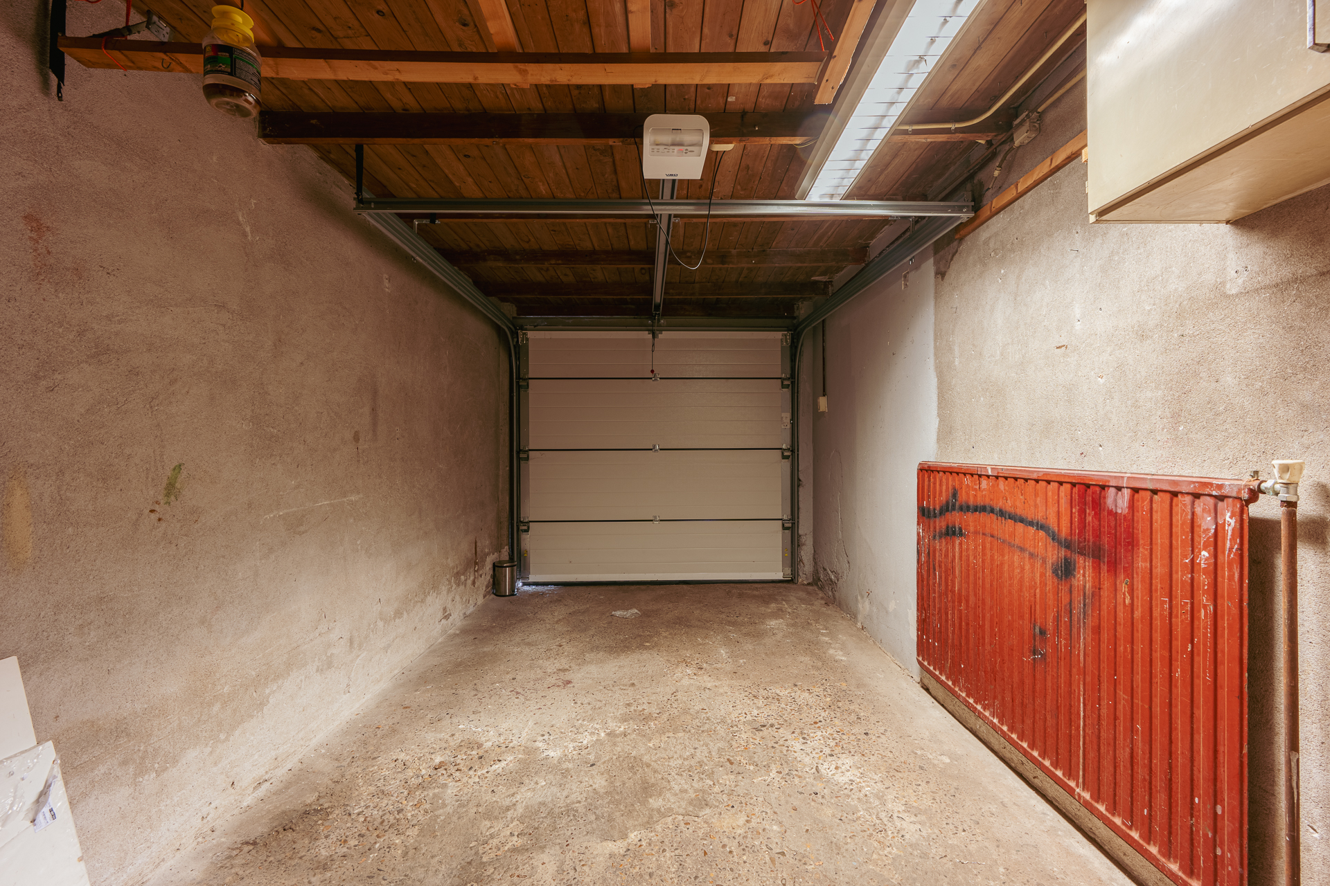 Entrance hall with meter cupboard, hallway, separate WC with hand basin and cloakroom. Generous, light L-shaped living room with a bay window to the front and French doors to the west-facing rear garden. Semi-open kitchen fitted with a five-burner hob, extractor hood, built-in oven, fridge and dishwasher. Wooden flooring to the hall and living room; tiled floor in the kitchen. Attached garage accessible from the kitchen and equipped with an electric door.