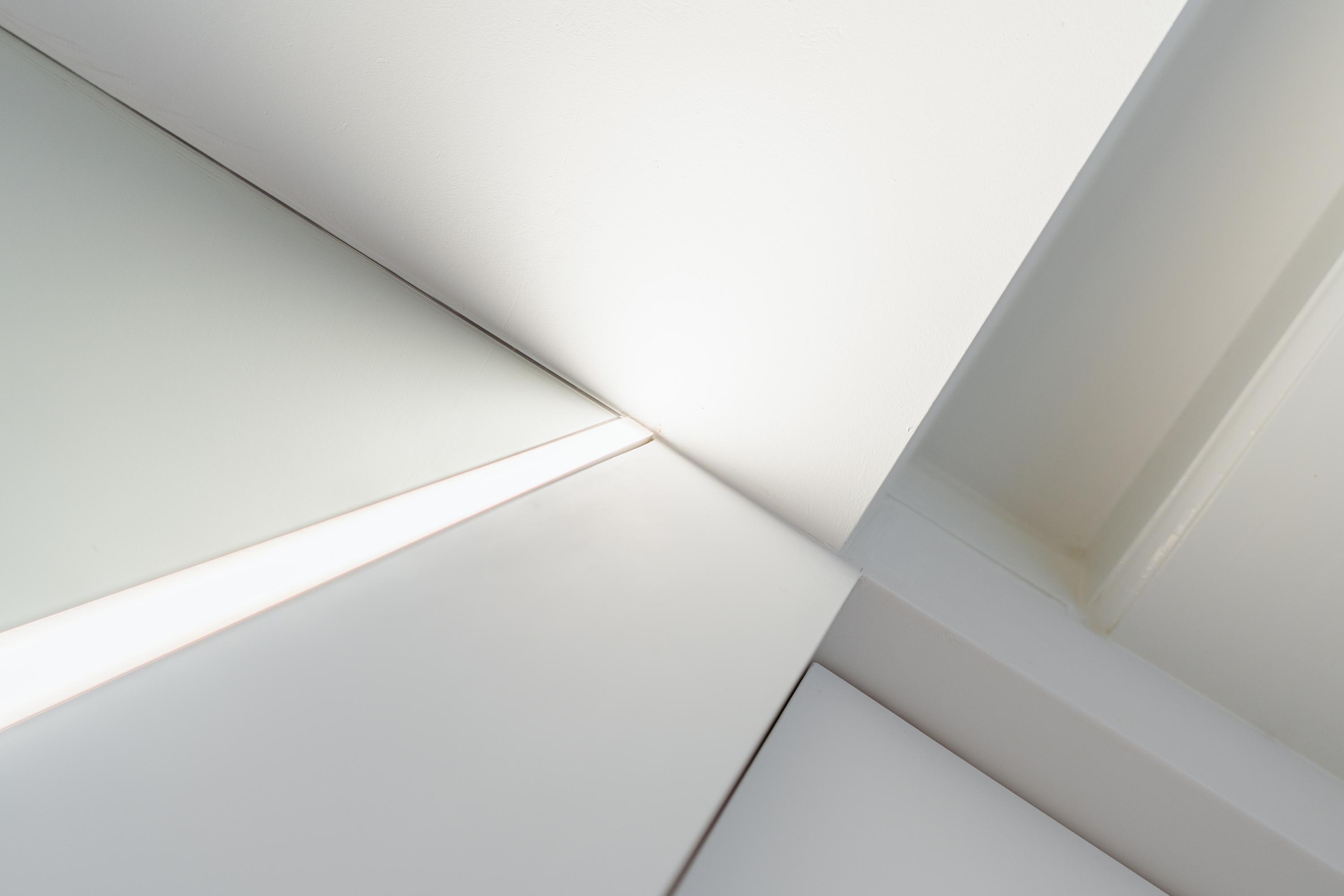 A tidy landing with built-in storage leads to two bedrooms. This floor features a beautiful wooden floor and premium finishes. At the front is a spacious bedroom with a custom-made built-in wardrobe that seamlessly integrates into the design. Large windows flood the space with natural light and offer a stunning view of the canal and historic facades. The second bedroom at the rear also includes built-in wardrobes. Centrally located on this floor is the modern bathroom, complete with a walk-in shower, sleek vanity, and stylish toilet — all finished to a high and timeless standard. Elegant steel-framed doors close off the bedrooms, combining functionality and design in harmony with the home’s aesthetic.