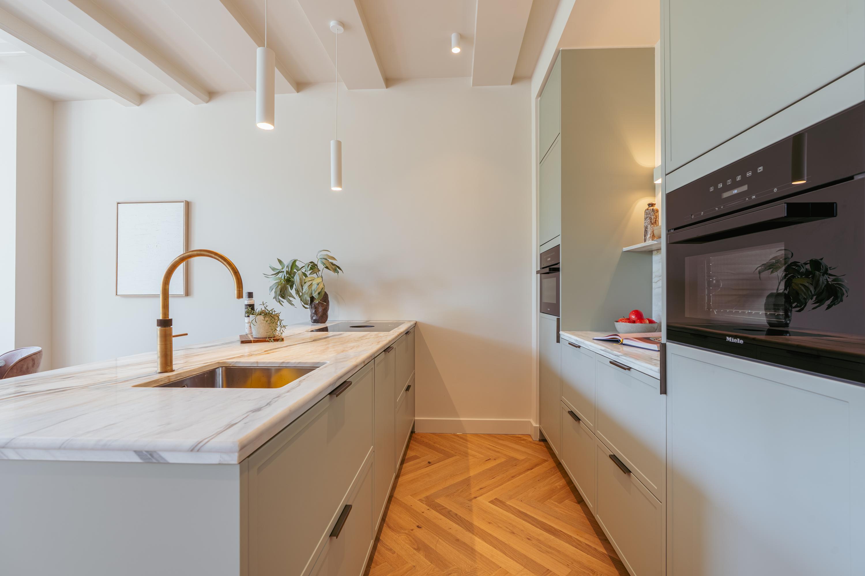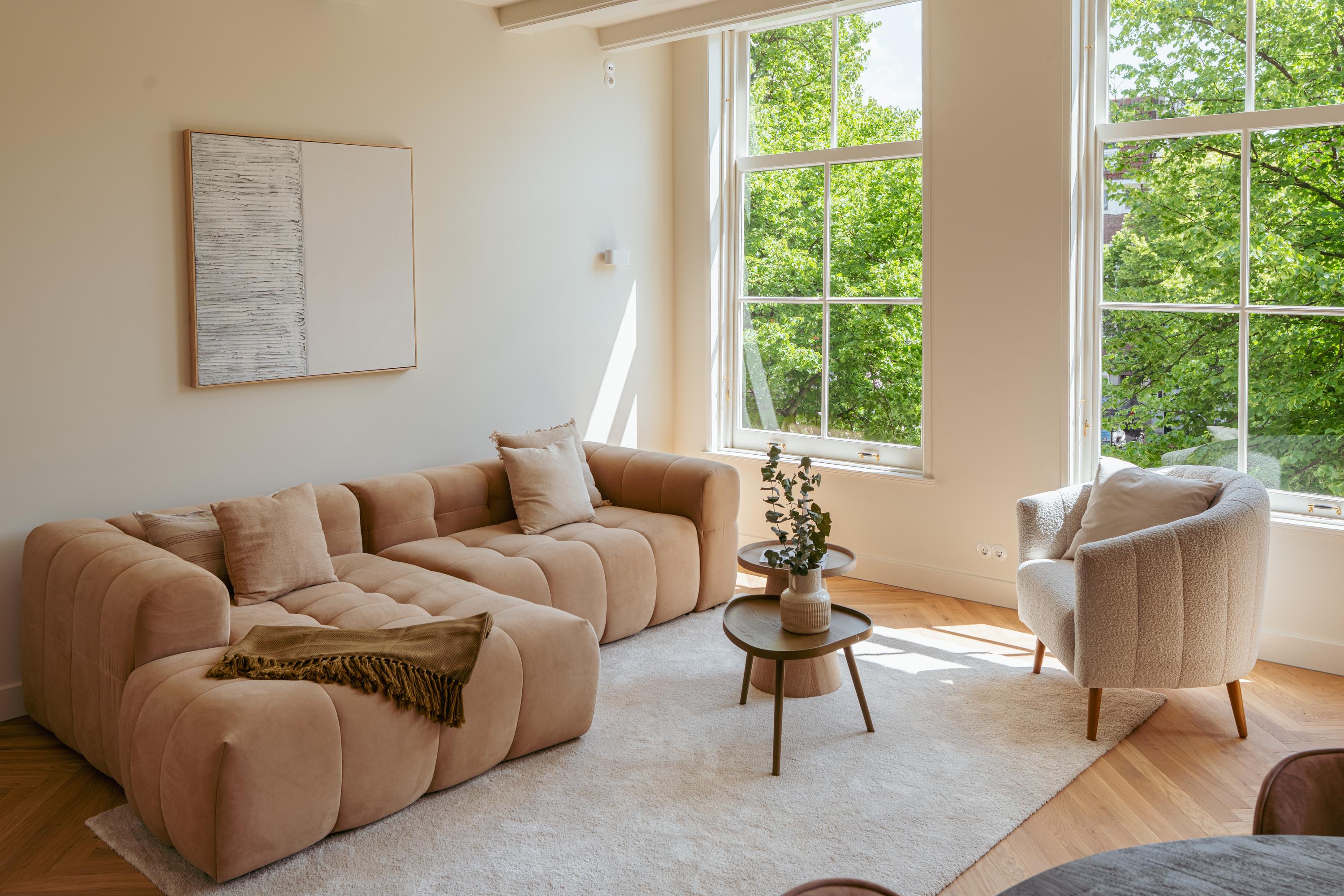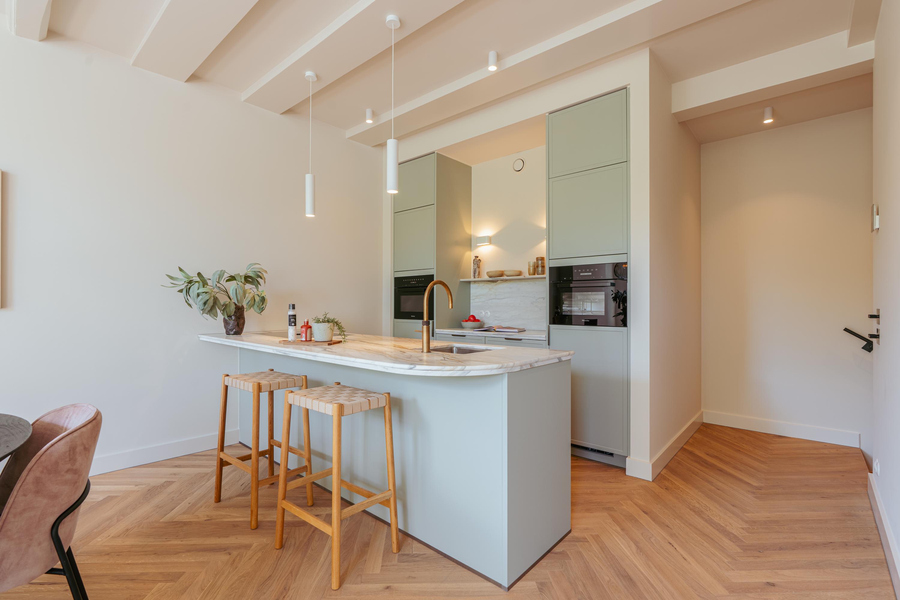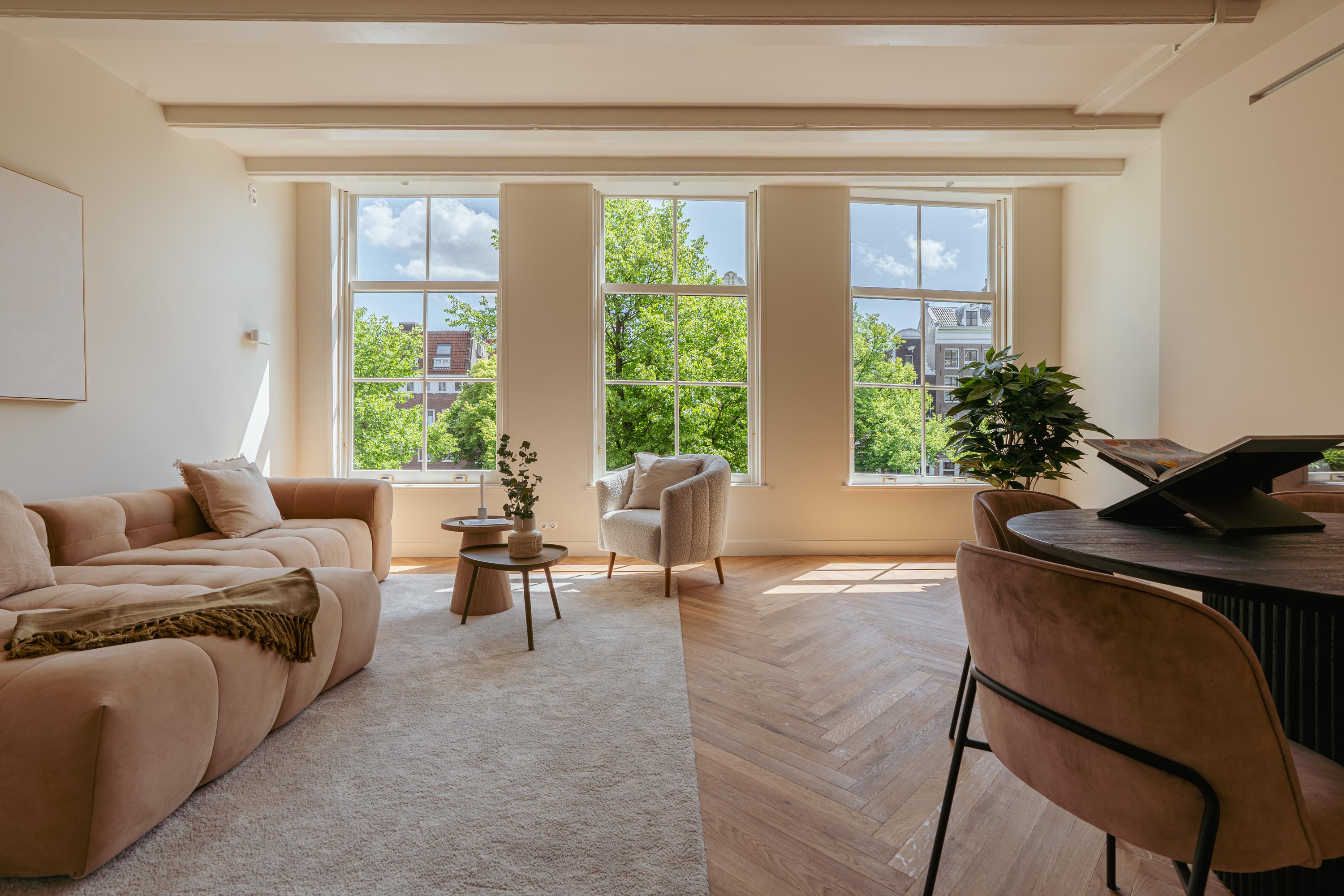 Apartment Keizersgracht Amsterdam invites you into a 104 m² residence, set within a distinguished listed building on one of the city’s storied canals. This apartment’s design reveals understated sophistication, from the oak herringbone flooring with underfloor heating to the three soaring windows framing timeless Keizersgracht views.