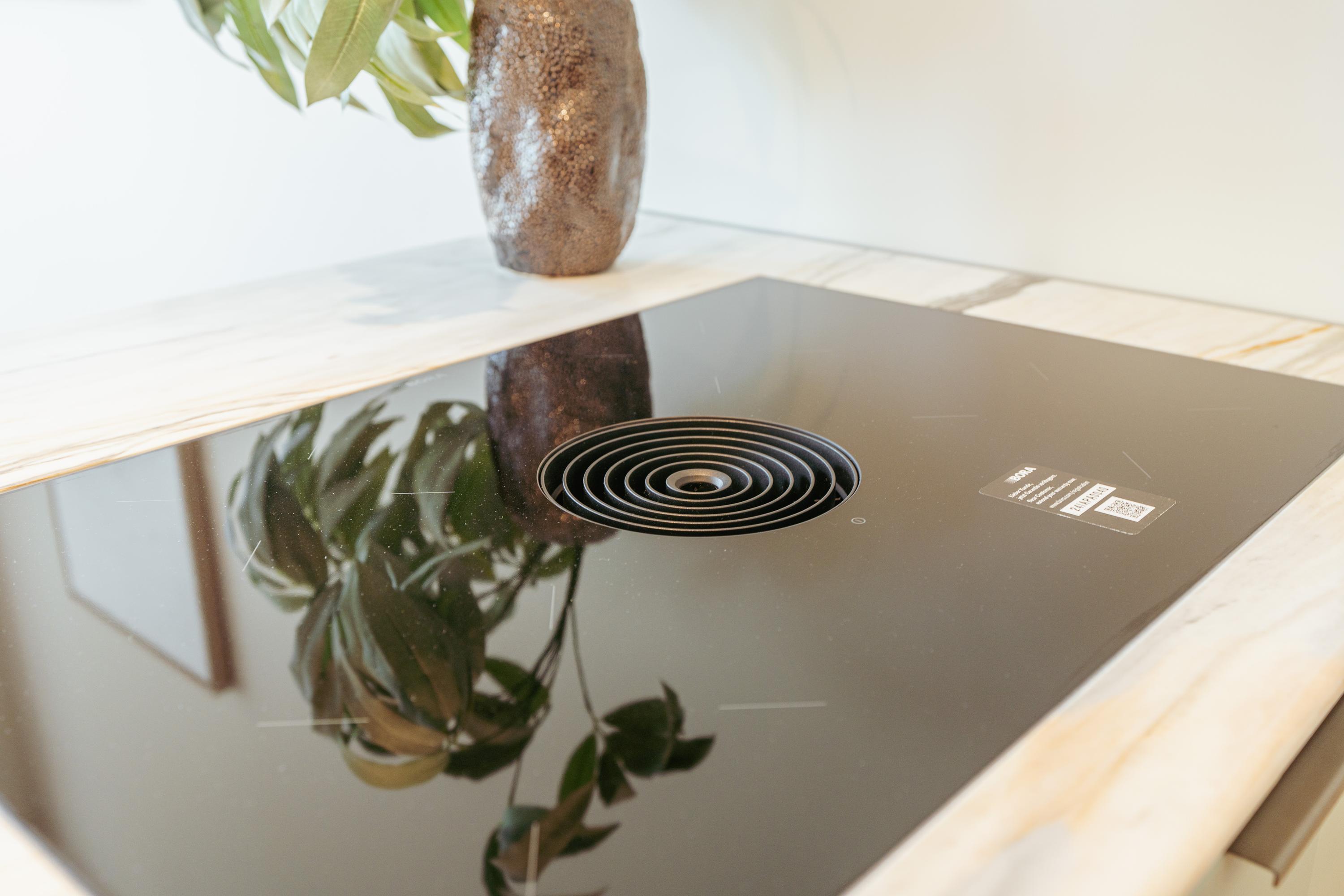 Entering via the stately communal hall, a split-level layout encourages a graceful flow between living and dining. The kitchen, equipped with a marble countertop, brass accents, and select appliances including Siemens Studioline ovens and a Bora induction cooktop, fosters both culinary excellence and convivial gatherings. A central island and marble-topped bar invite unhurried mornings and elegant evenings alike.