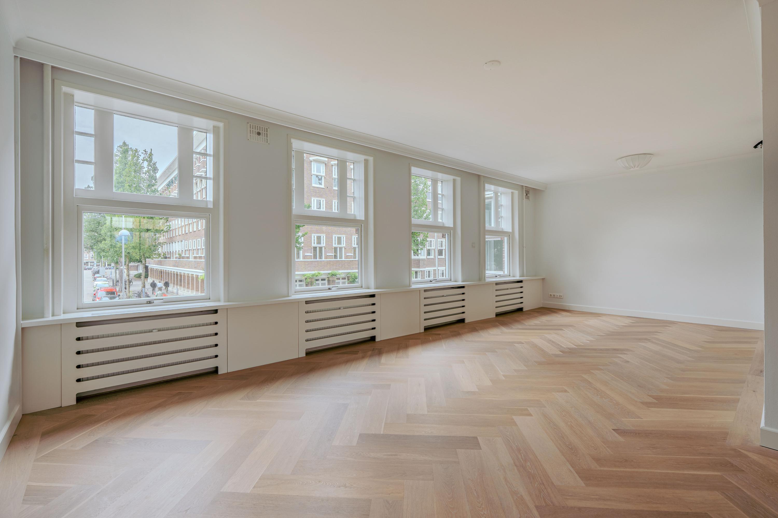 Beautifully bright and luxuriously renovated 3-room apartment of approx. 123 m² with sauna, lift, balcony and private storage, located in a prime location in Amsterdam South, just around the corner from Beethovenstraat. The property features two spacious bedrooms with en-suite bathrooms, but is large enough to easily create an additional bedroom.