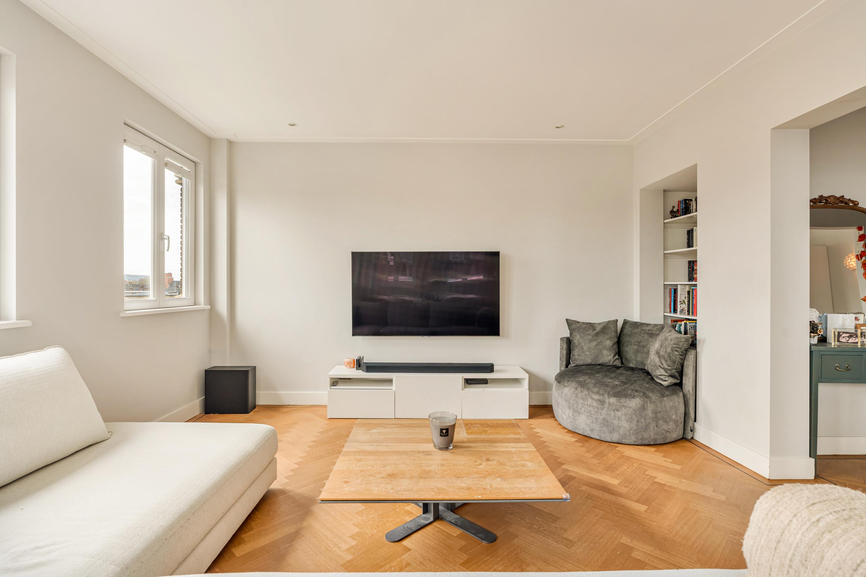 The apartment is finished with a beautiful wooden herringbone floor. All window frames have been renewed in hardwood with HR++ double glazing, while preserving and modernizing the characteristic sliding window system.