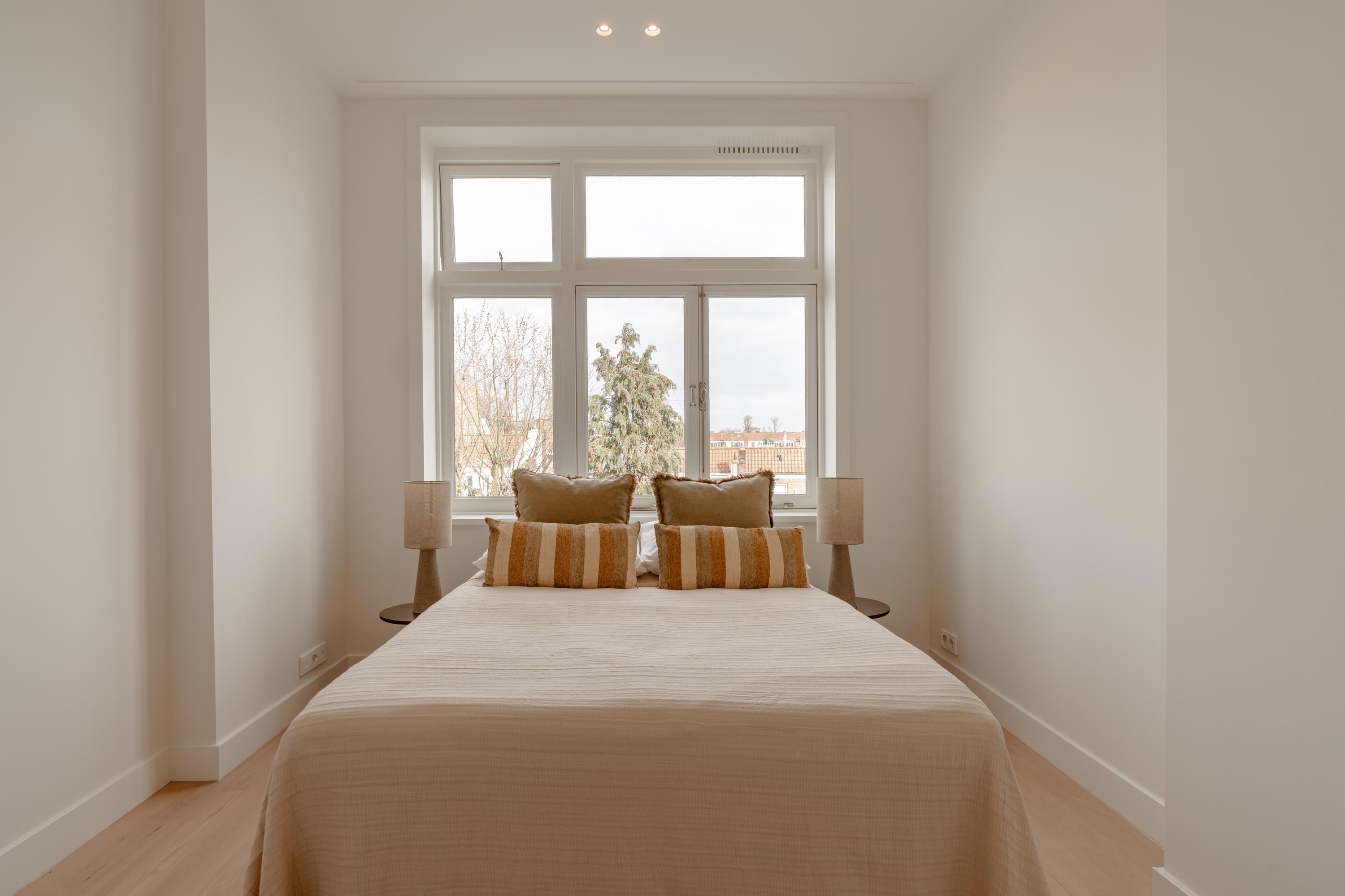 At Olympiaplein we proudly present this spacious and fully renovated double upper-floor apartment of approx. 142 m². The property has recently been refurbished to a high standard under the supervision of an architect and is spread across two floors. It offers a generous living room with open-plan kitchen, three bedrooms and two balconies. The apartment is located in a sought-after area of Amsterdam-Zuid: peaceful, yet with all amenities and city life within easy reach.