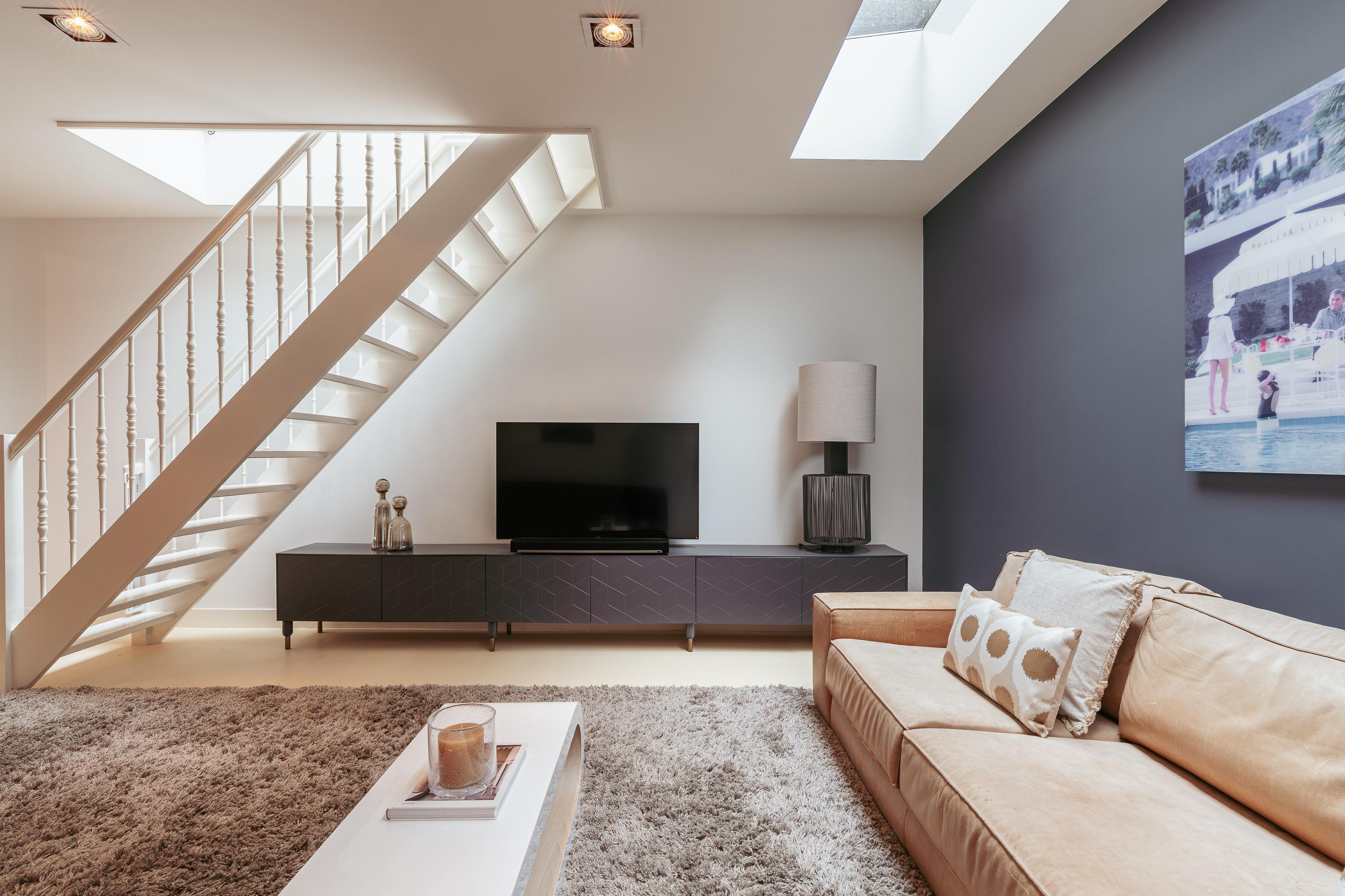 The wonderful roof terrace of approx. 37 m² is a unique feature of this home. It can be accessed from the rear bedroom as well as via the staircase in the kitchen-diner. Its peaceful position makes it an exceptional outdoor space in the middle of the city—a private place to unwind and enjoy the tranquillity.