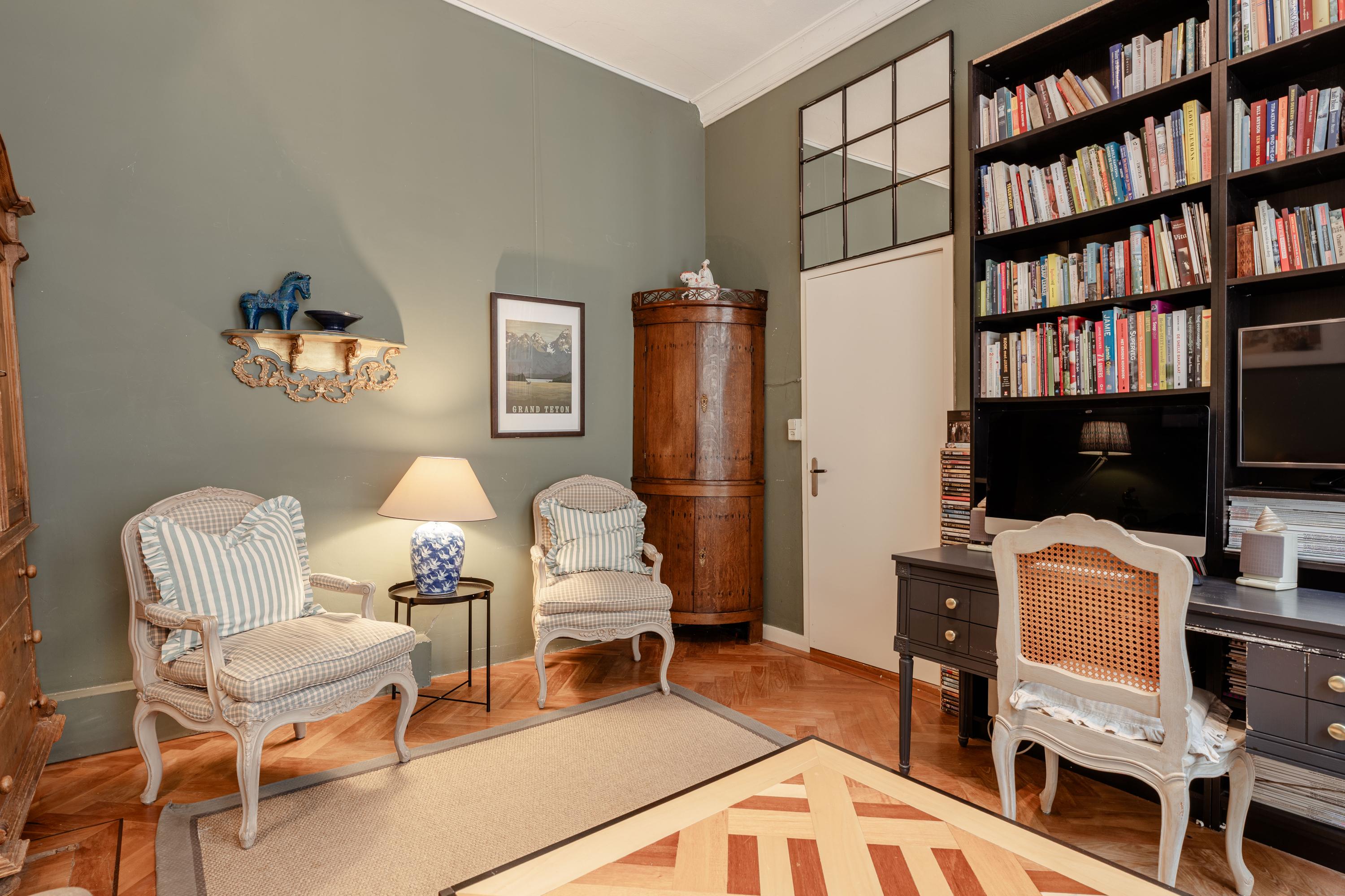 Adjacent to the living room is a room indicated on the floor plan as a bedroom, but currently used as an additional sitting and study room. Thanks to its quiet location and large windows, this is a pleasant and versatile space.