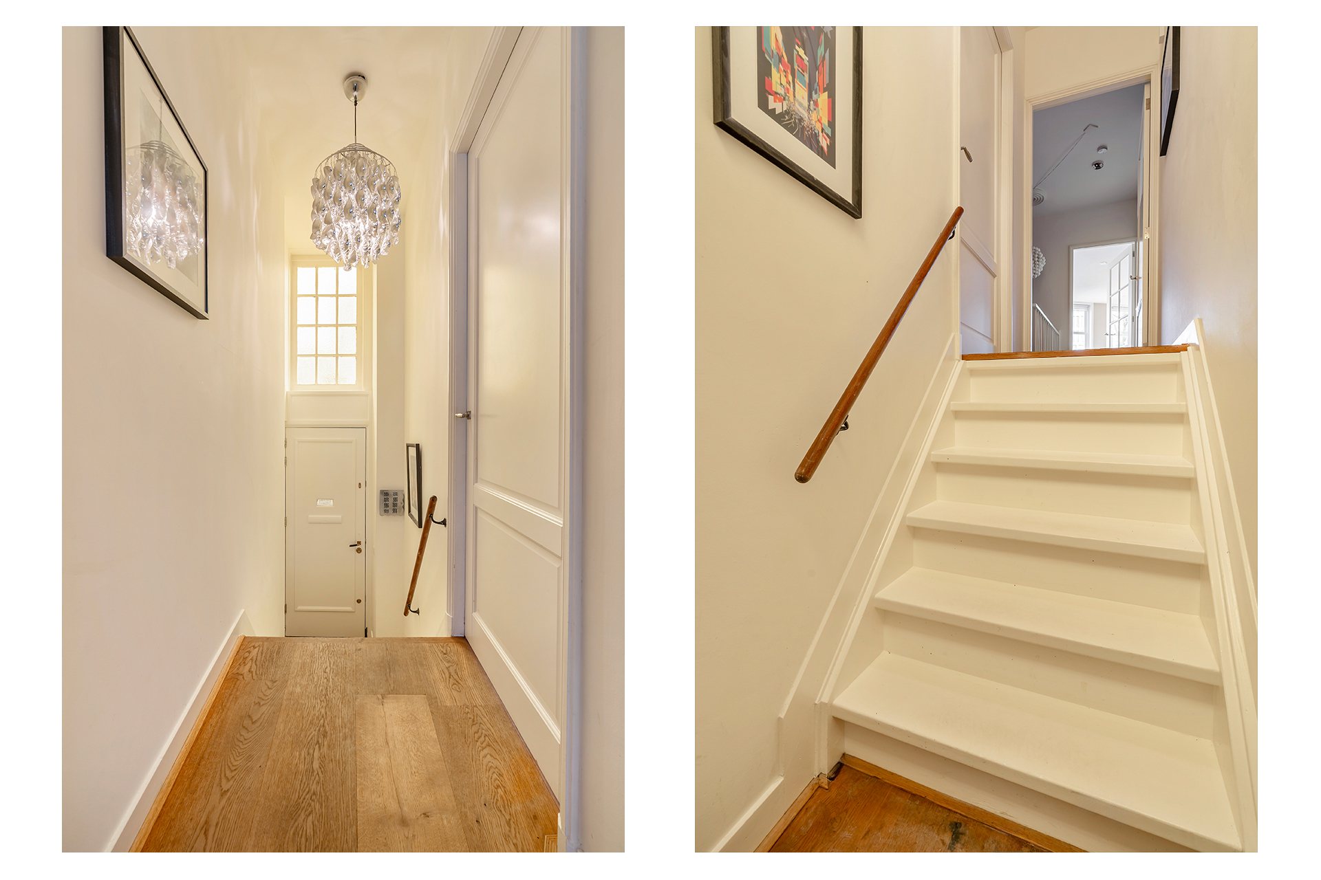 The property is further distinguished by its private entrance, high ceilings and unobstructed views over the Singelgracht. The high-quality finishes, including a stunning castle oak floor laid throughout the entire home, add warmth and character. The basement level is remarkably light due to its large windows and offers a level of comfort rarely found in lower-ground spaces.