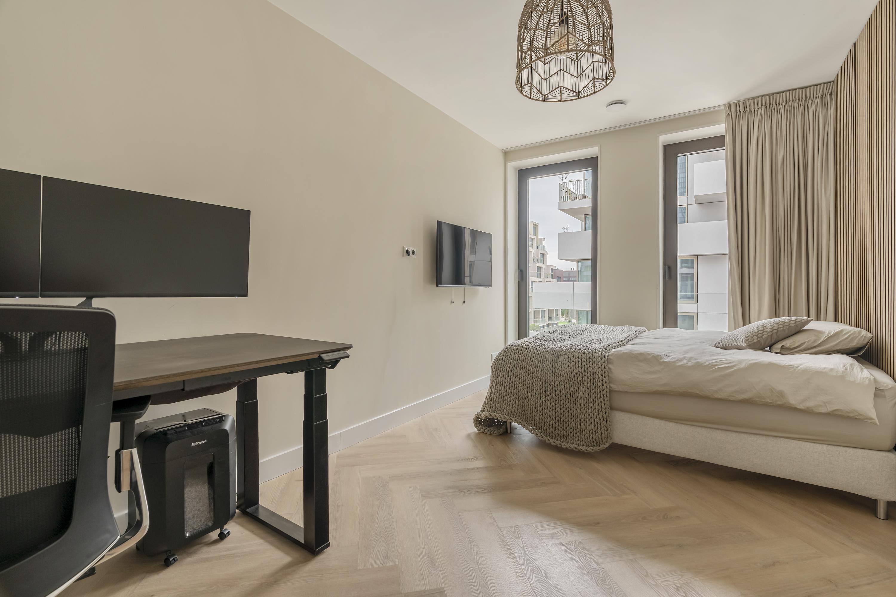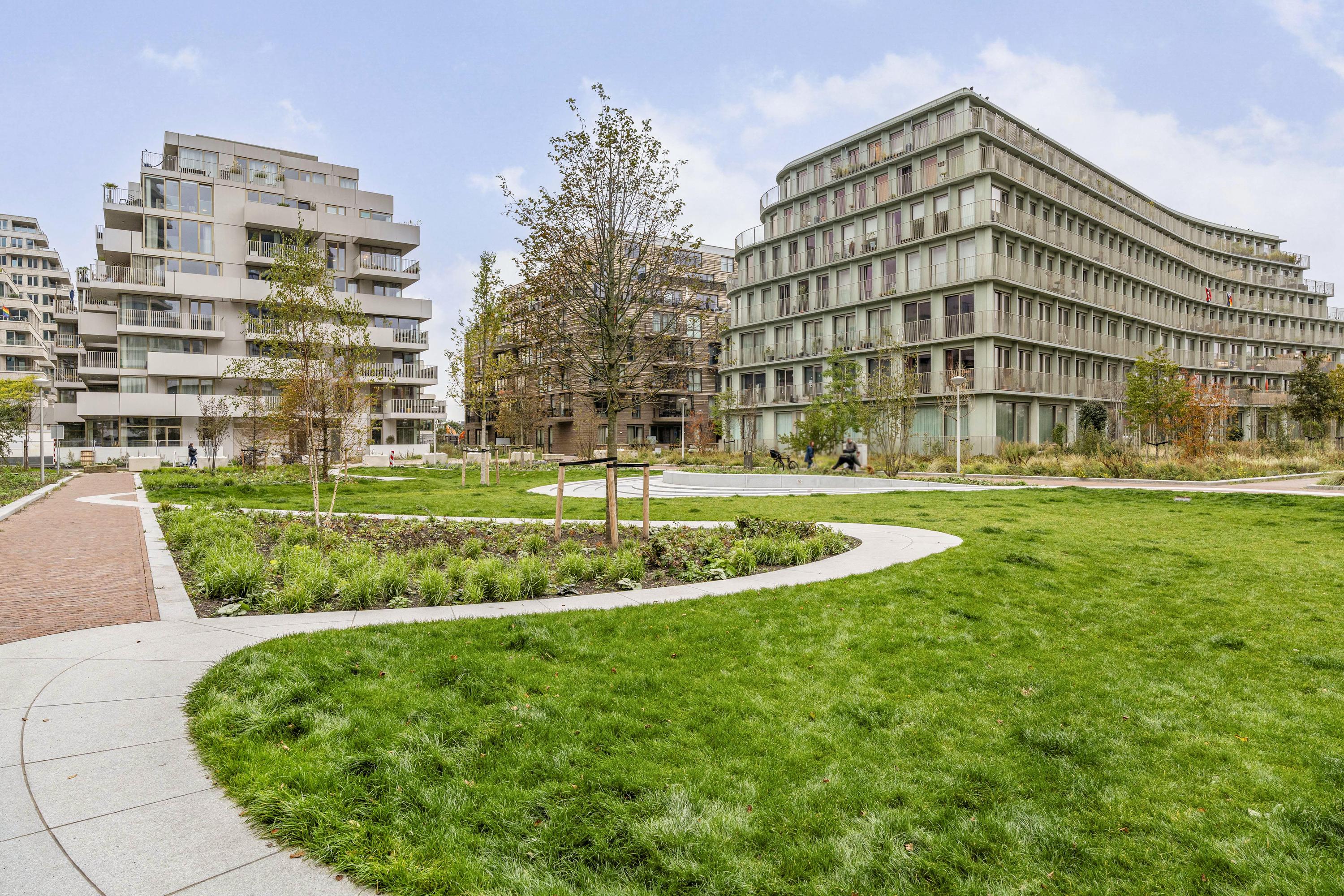 The neighbourhood has been designed with a thoughtful urban vision, where modern buildings and generous green spaces complement one another. Car-free streets, courtyards, and squares create a sense of calm and openness, while the city centre of Amsterdam is just a short ferry ride away. In the immediate vicinity, you will find several supermarkets, the Van der Pekstraat market, and numerous restaurants and cafés such as The Coffee Virus, The Butcher Social Club, the EYE Film Museum, and the Tolhuistuin. There is always something to do here, yet it remains easy to retreat to the tranquillity of the green surroundings.