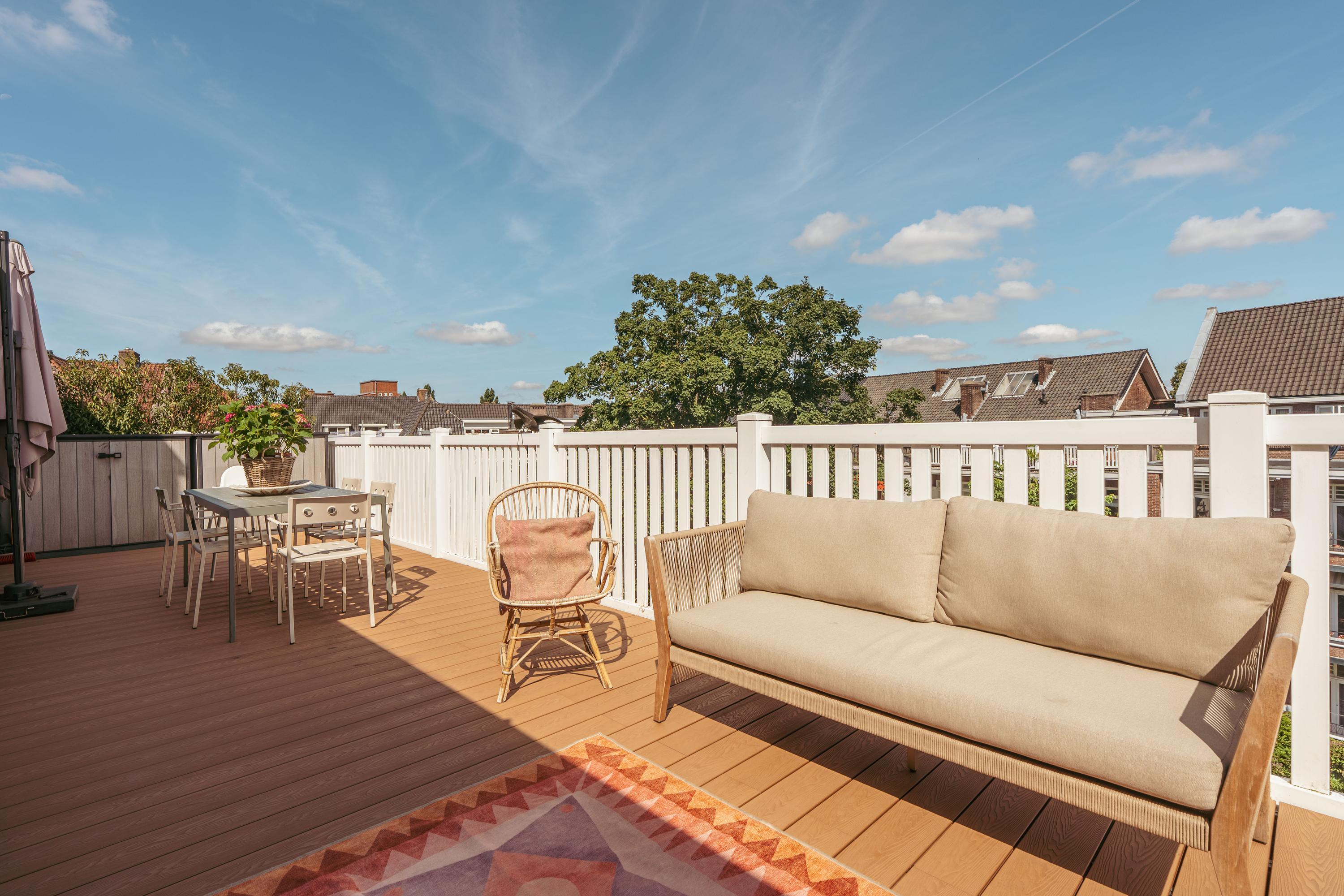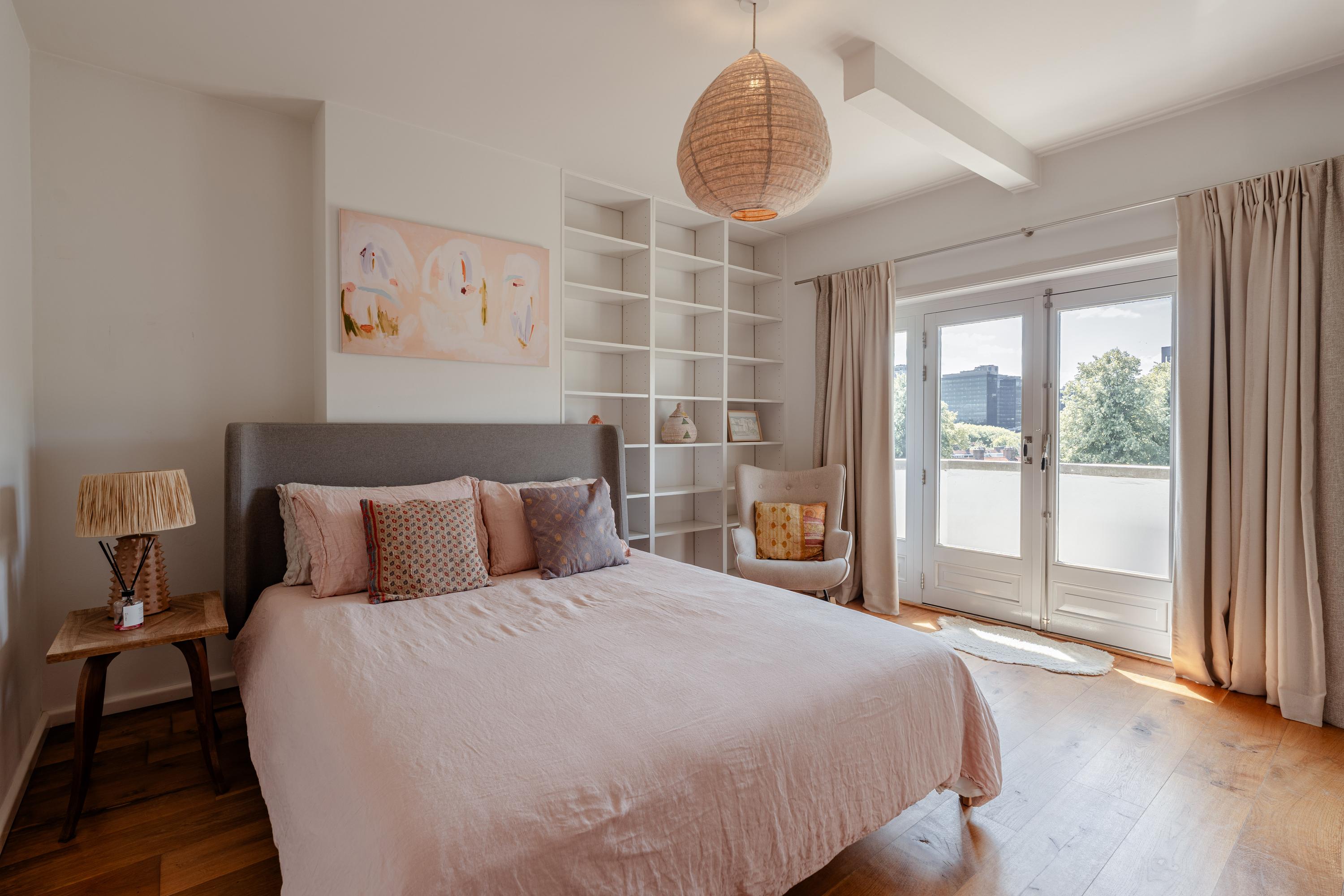 In a prime location in Amsterdam South, boasting beautiful views over the water, we proudly present this high-quality renovated upper-level apartment of approximately 194 m². The property features six bedrooms, a spacious through-living room, and a sunny rooftop terrace. Its location is excellent, just moments away from the Zuidas business district, Beethovenstraat, and Zuid/WTC station.